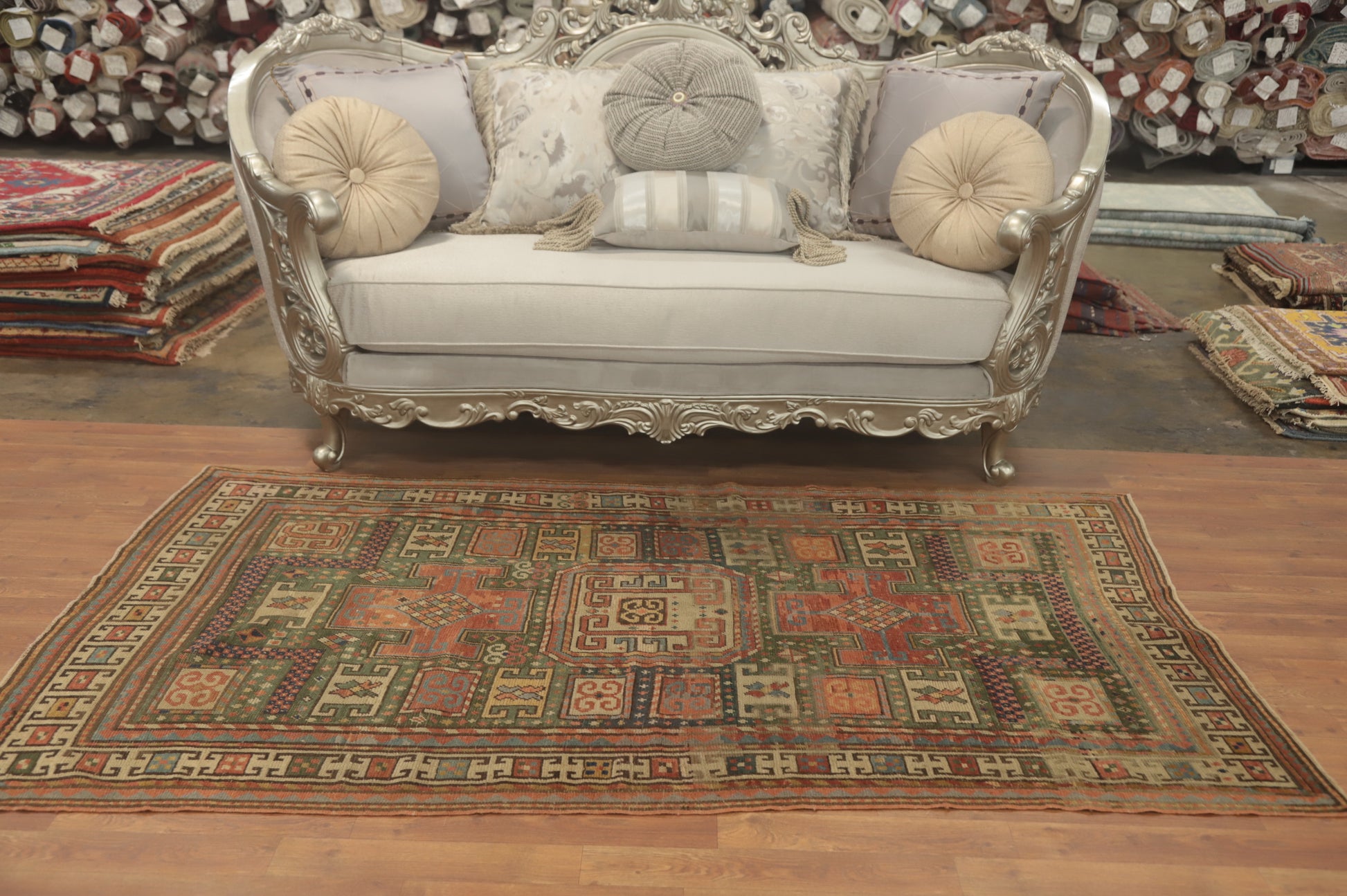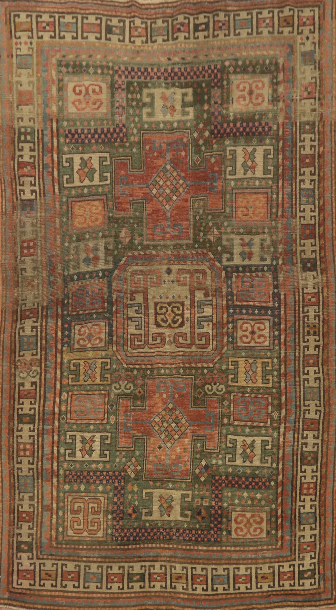 Pre-1900 Antique Kazak Vegetable Dye Rug 4x7