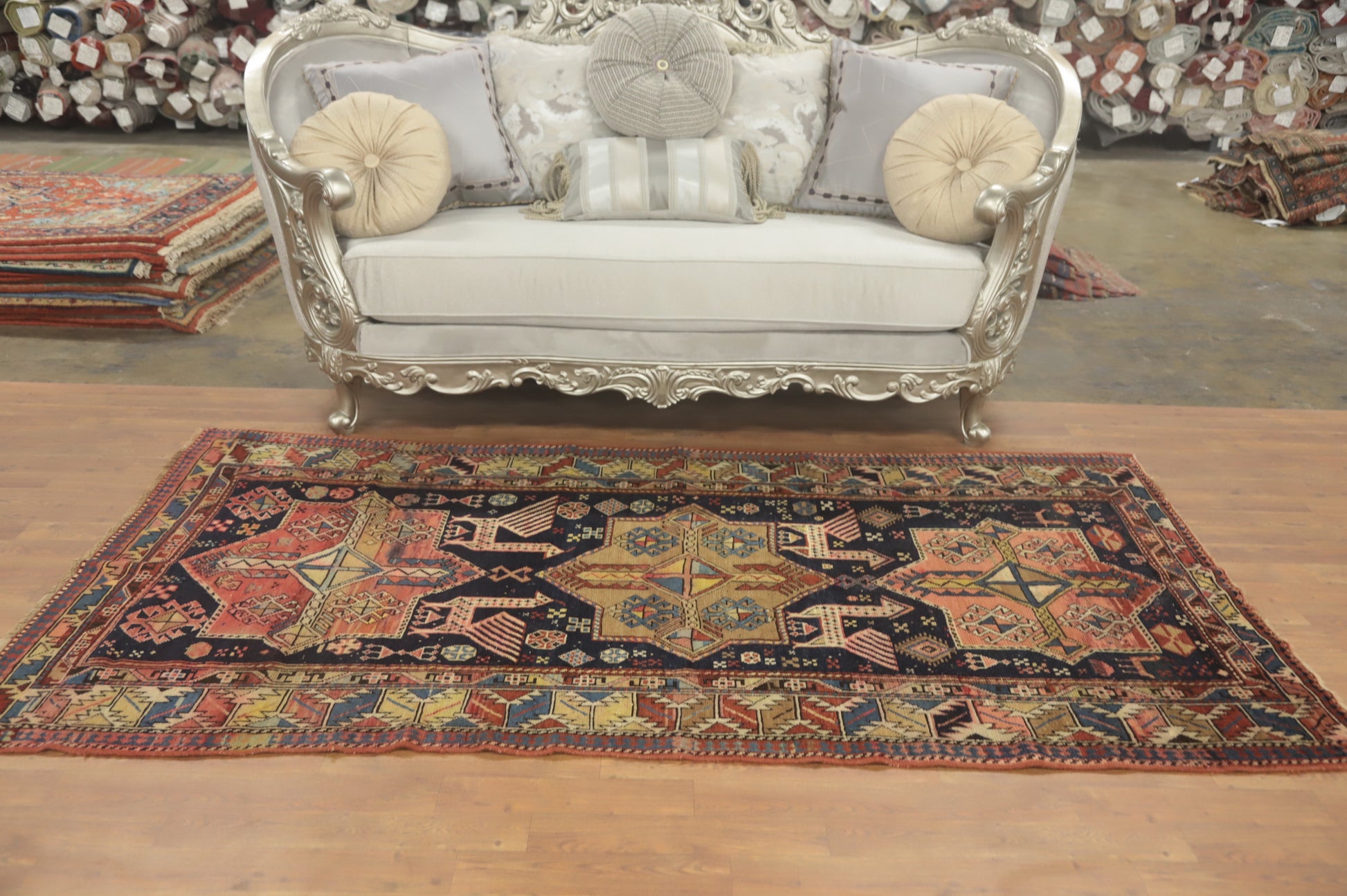 Pre-1900 Antique Kazak Vegetable Dye Rug 4x8