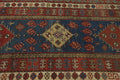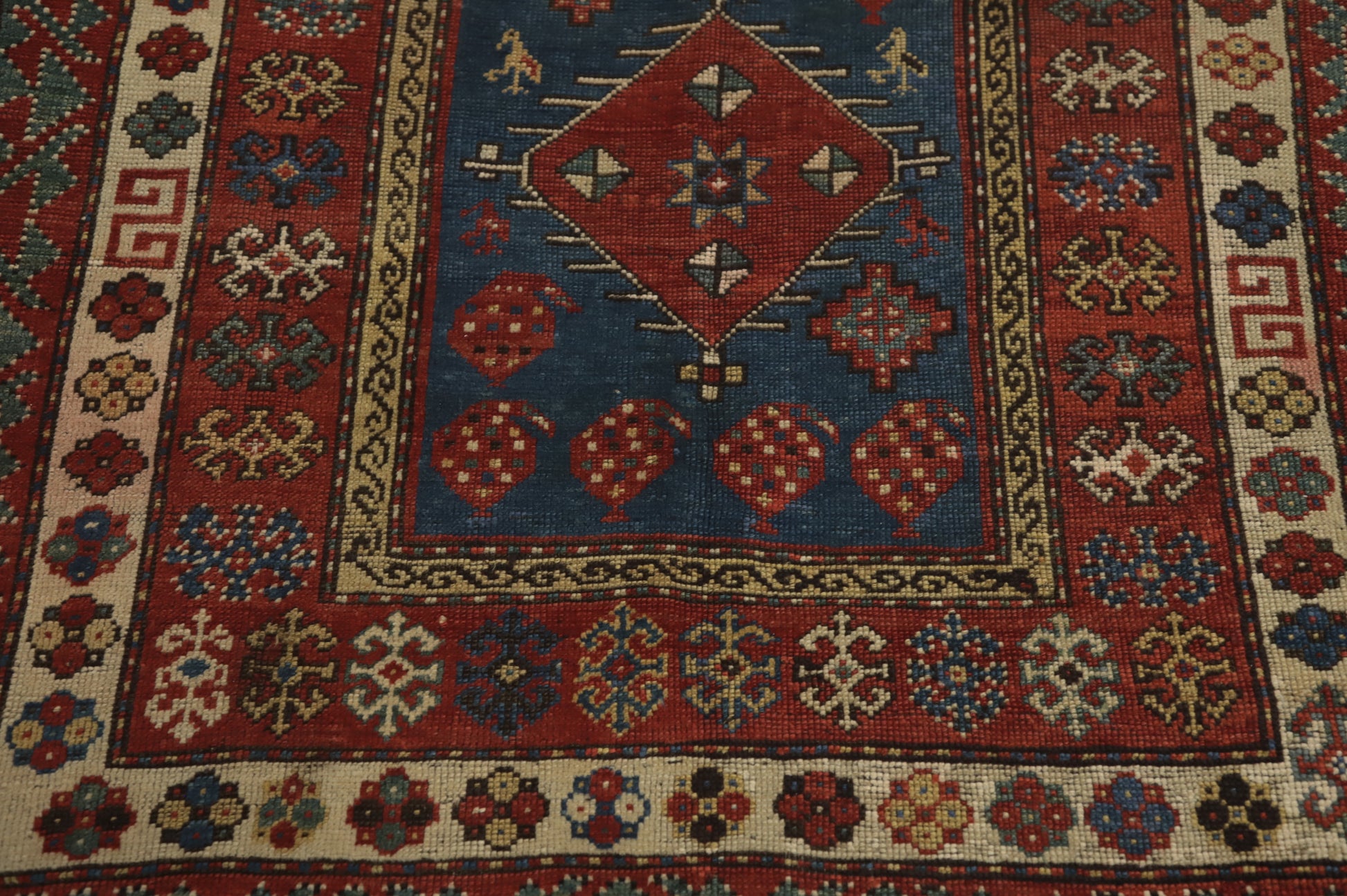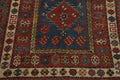 A Beautiful Genuine Russia Kazak rug is Hand Knotted by skillful weavers in Russia with 100% Wool Material. This rug is in Very Good (Evenly Low Pile) condition. dimensions are 7' 6'' X 3' 6'' in foot and 229 X 107 in centimeter. the primary color is Navy Blue & Blues.