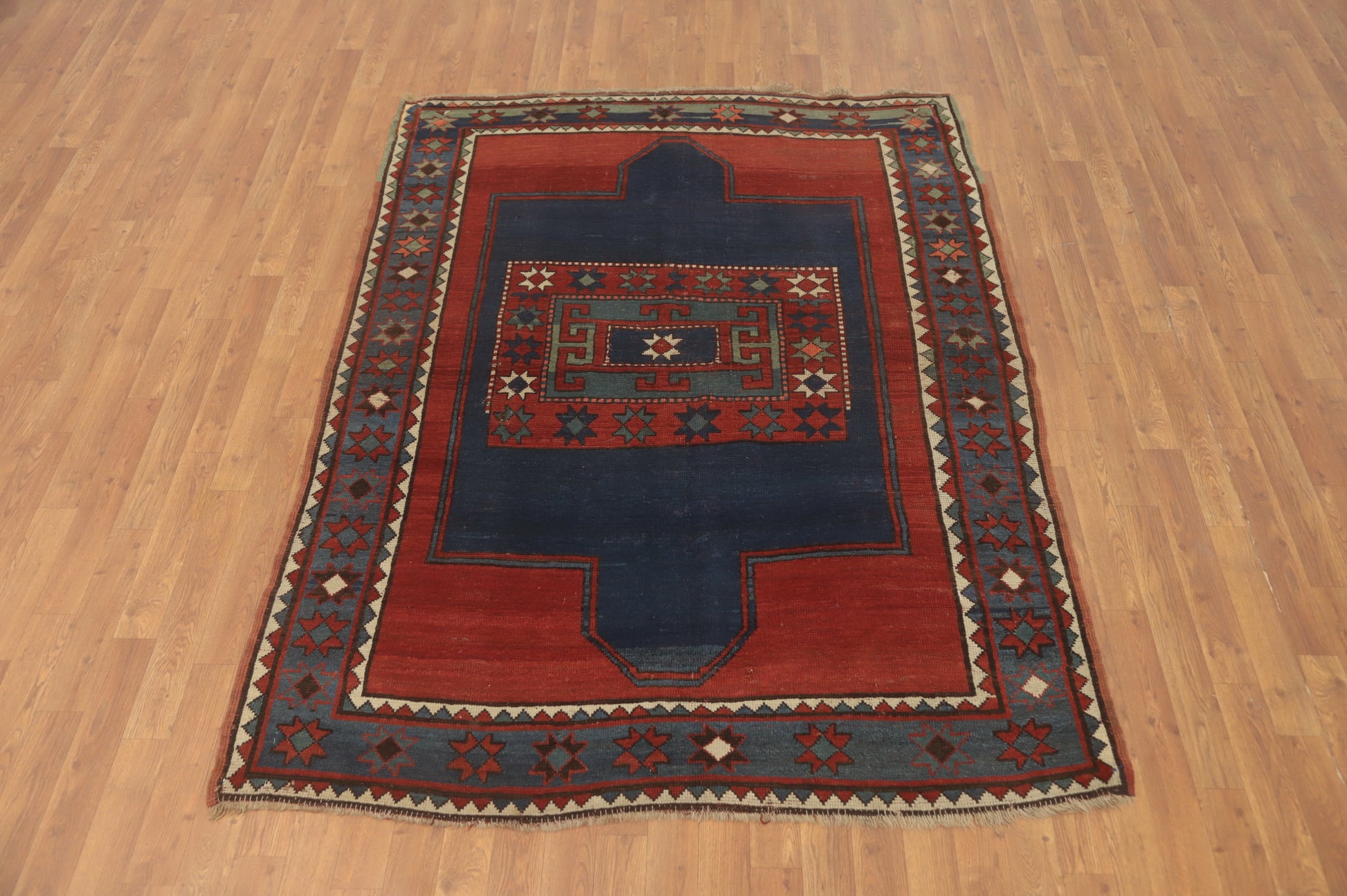 Pre-1900 Antique Kazak Vegetable Dye Rug 5x7