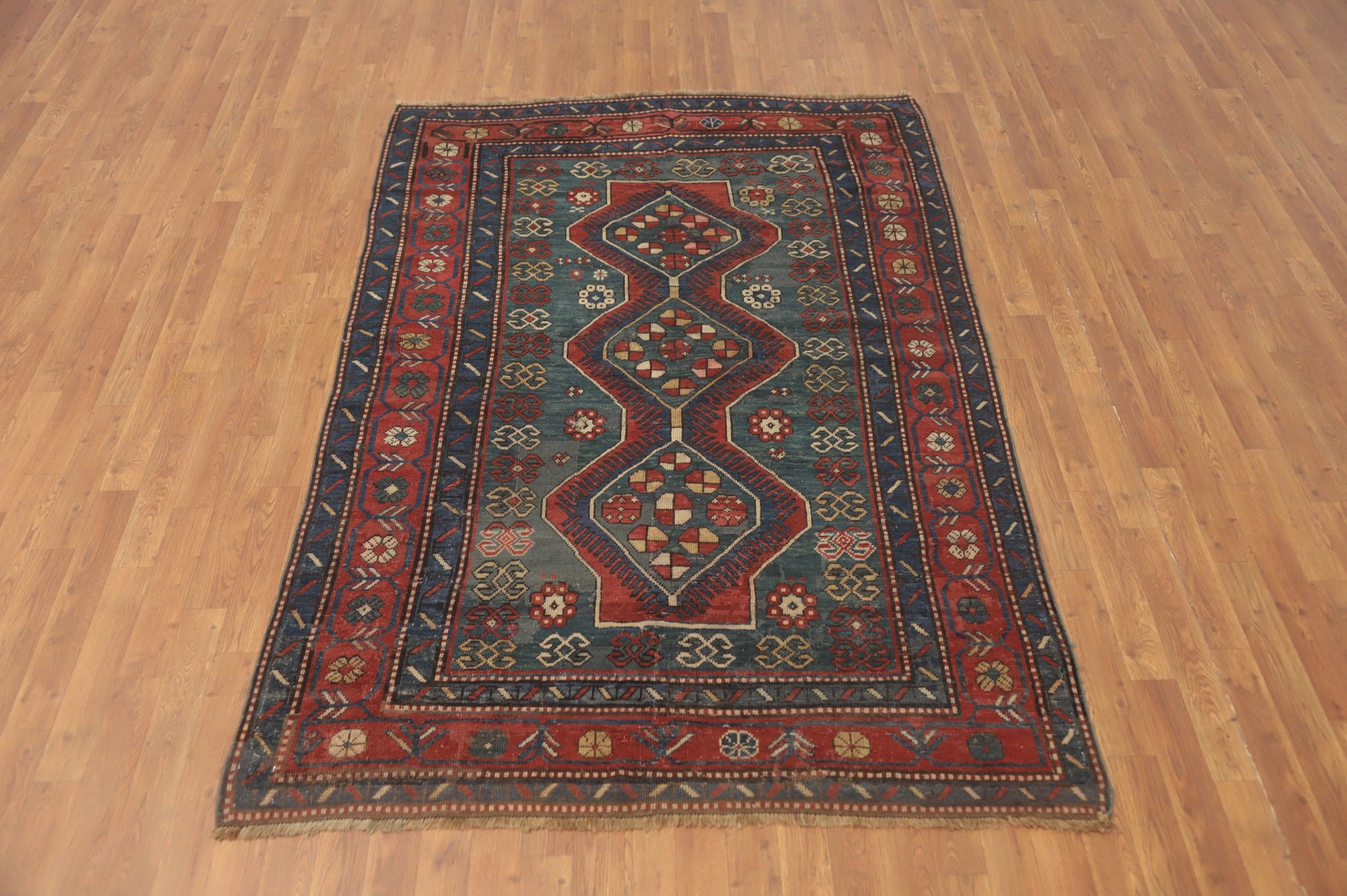Pre-1900 Antique Kazak Vegetable Dye Rug 5x7