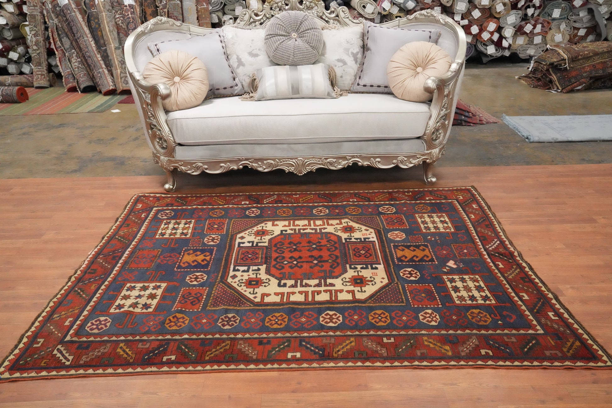 Pre-1900 Antique Kazak Vegetable Dye Rug 5x7