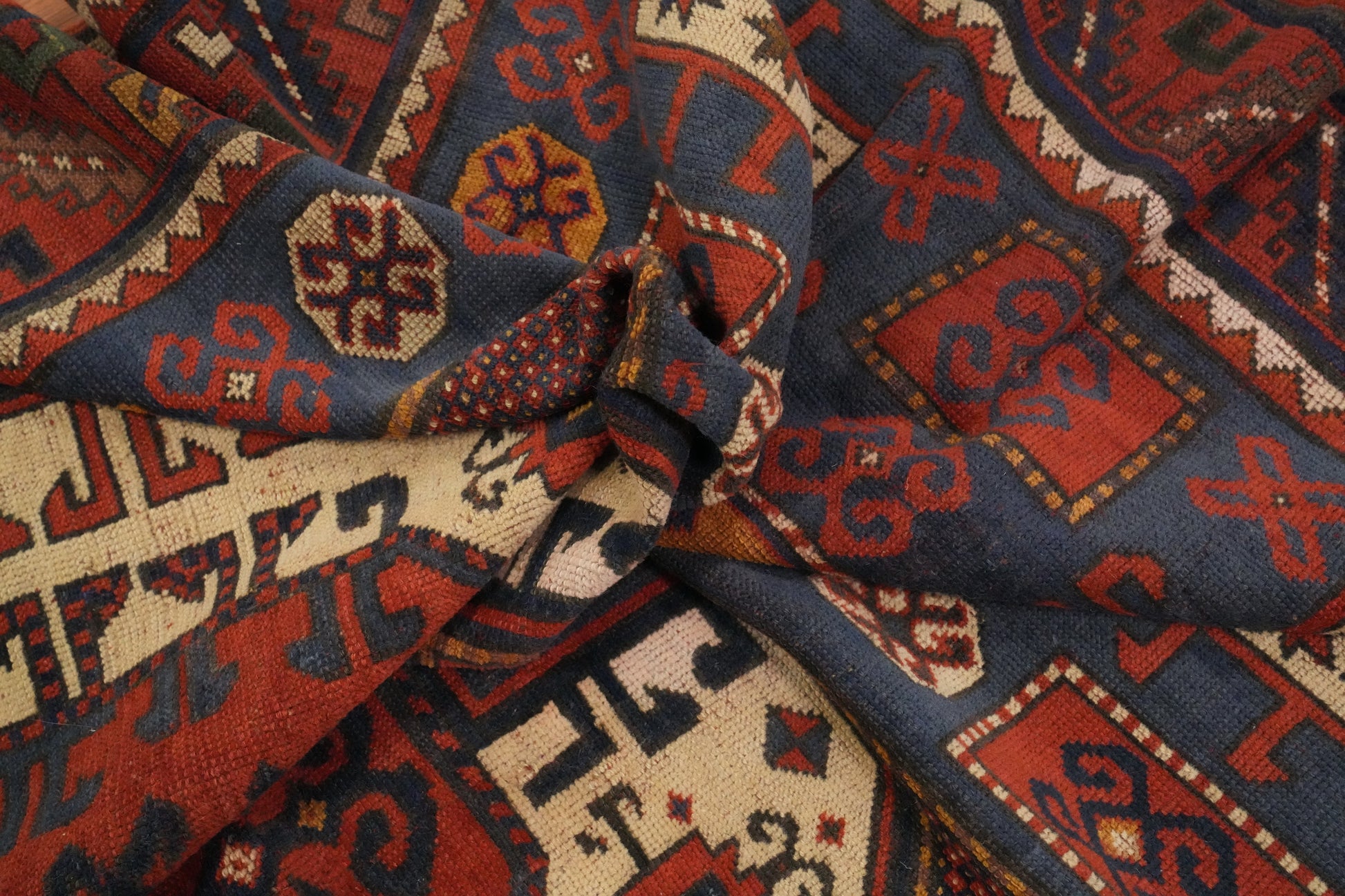 A Beautiful Genuine Russia Kazak rug is Hand Knotted by skillful weavers in Russia with 100% Wool Material. This rug is in Very Good (Evenly Low Pile) condition. dimensions are 6' 11'' X 5' 2'' in foot and 211 X 157 in centimeter. the primary color is Navy Blue & Blues.