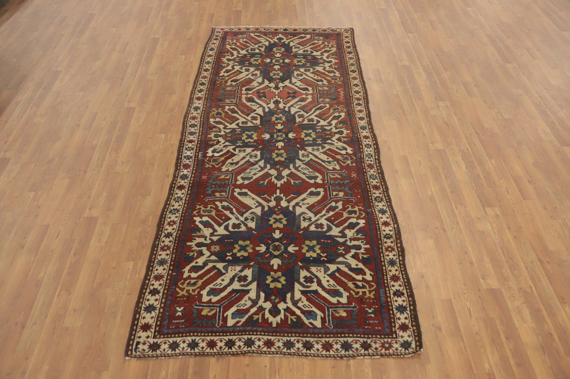 Pre-1900 Antique Kazak Vegetable Dye Runner Rug 4x10
