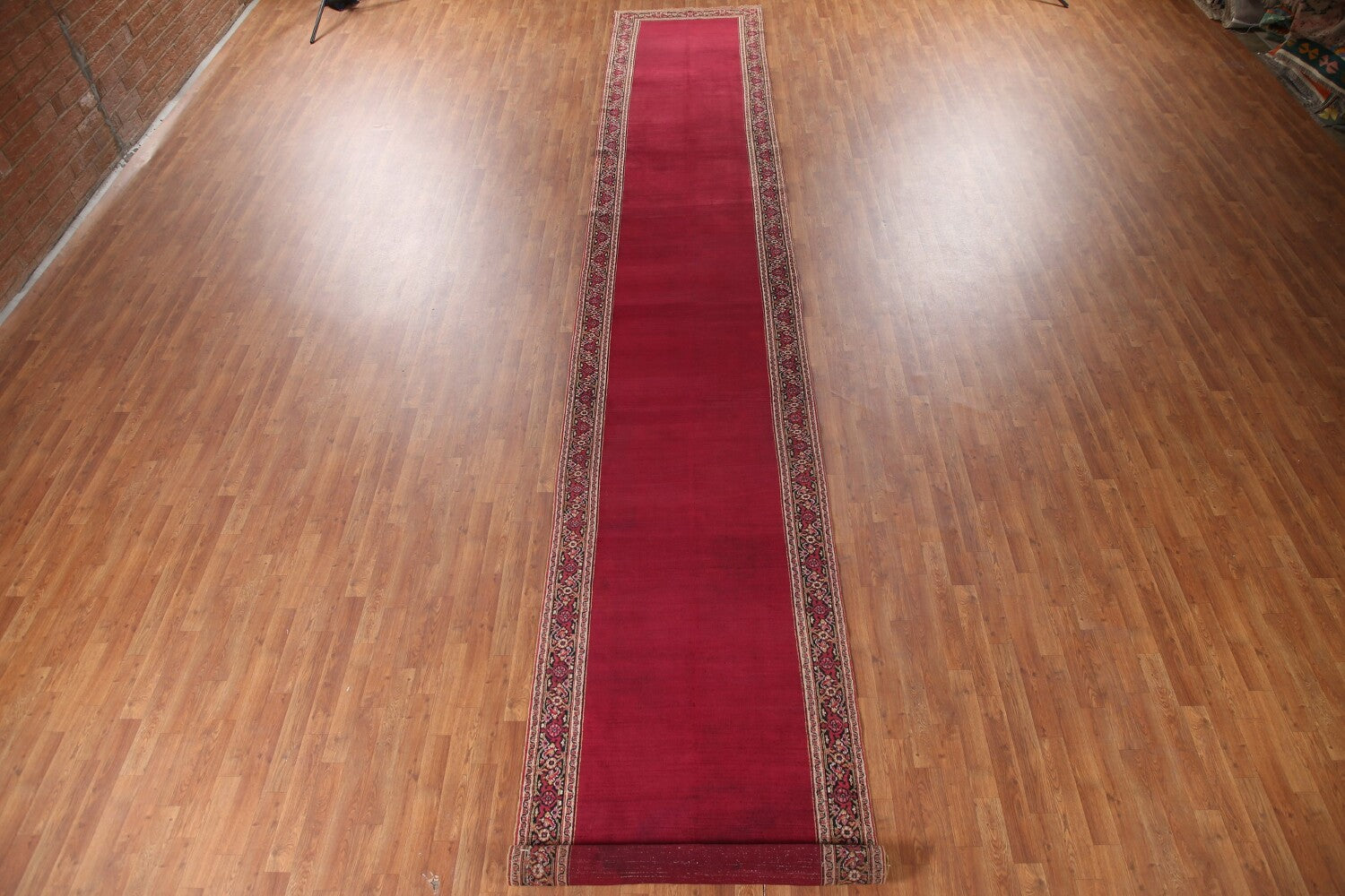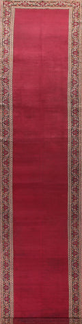 A Beautiful Genuine Persia ( Persia ) Kerman (Lavar) rug is Hand Knotted by skillful weavers in Persia ( Persia ) with 100% Wool Material. This rug is in Very Good (Low Pile) condition. dimensions are 23' 5'' X 3' 7'' in foot and 714 X 109 in centimeter. the primary color is Pink.