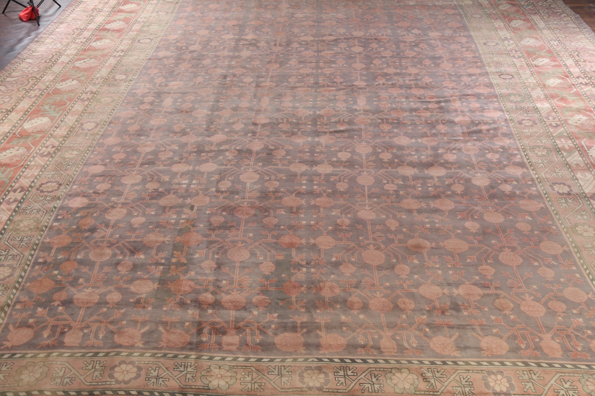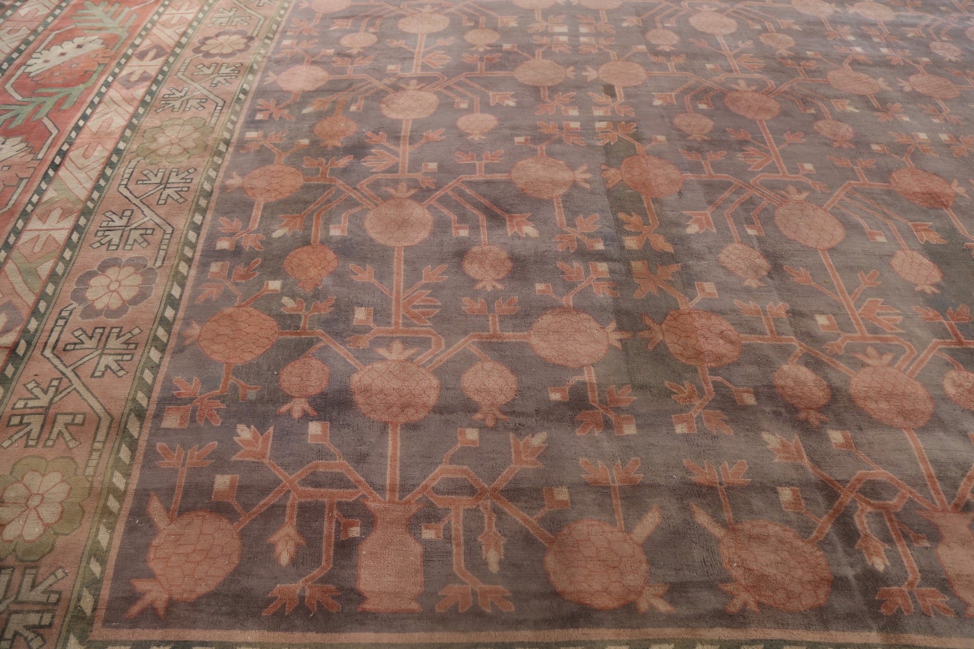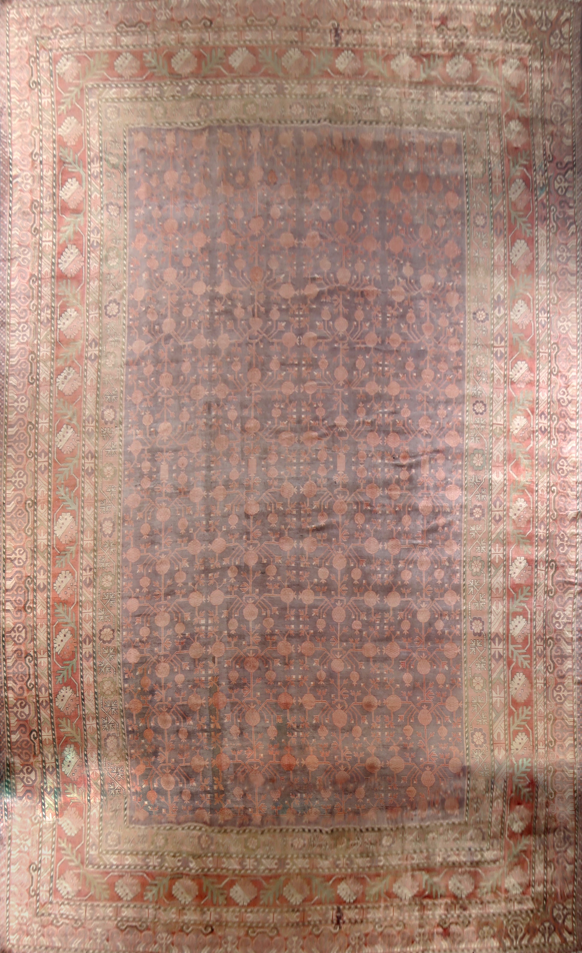 Pre-1900 Antique Mongolian Khotan Large Vegetable Dye Rug 25x37