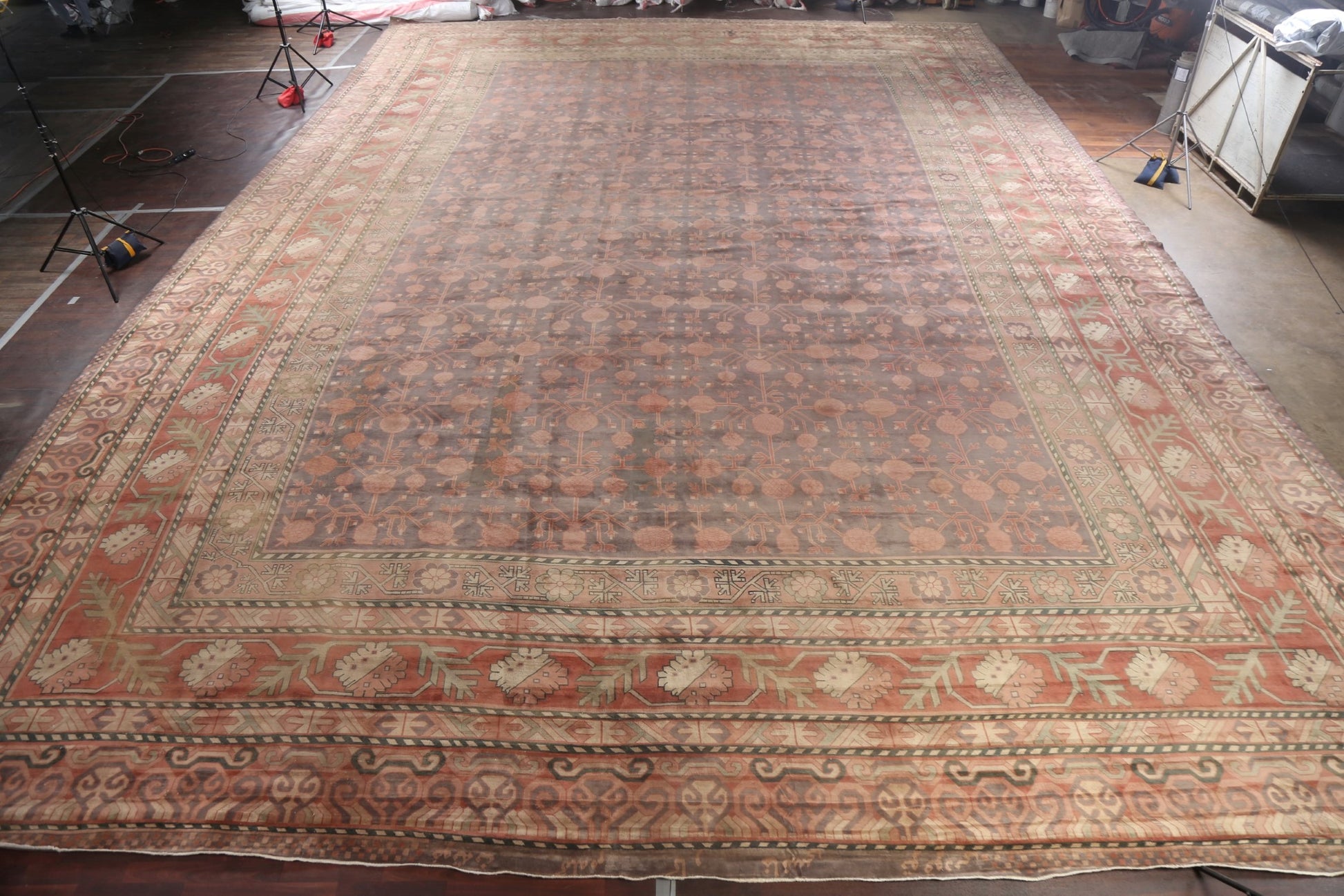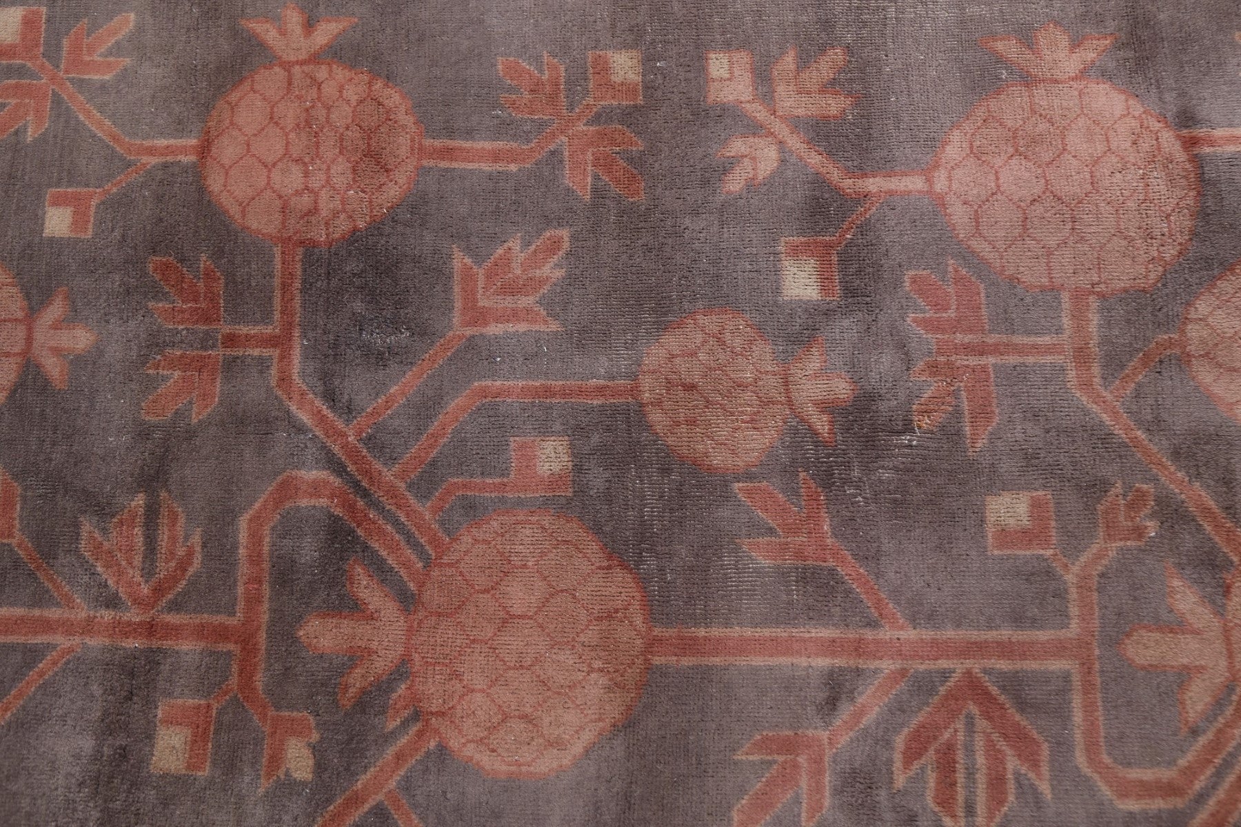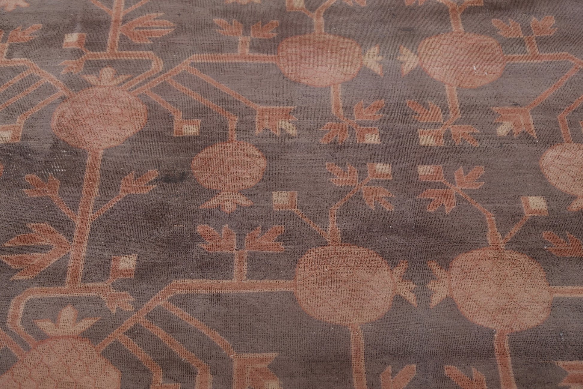 A Beautiful Genuine Mongolia Khotan rug is Hand Knotted by skillful weavers in Mongolia with 100% Wool Material. This rug is in Very Good (Evenly Low Pile-Repair) condition. dimensions are 36' 7'' X 25' 4'' in foot and 1115 X 772 in centimeter. the primary color is Brown.