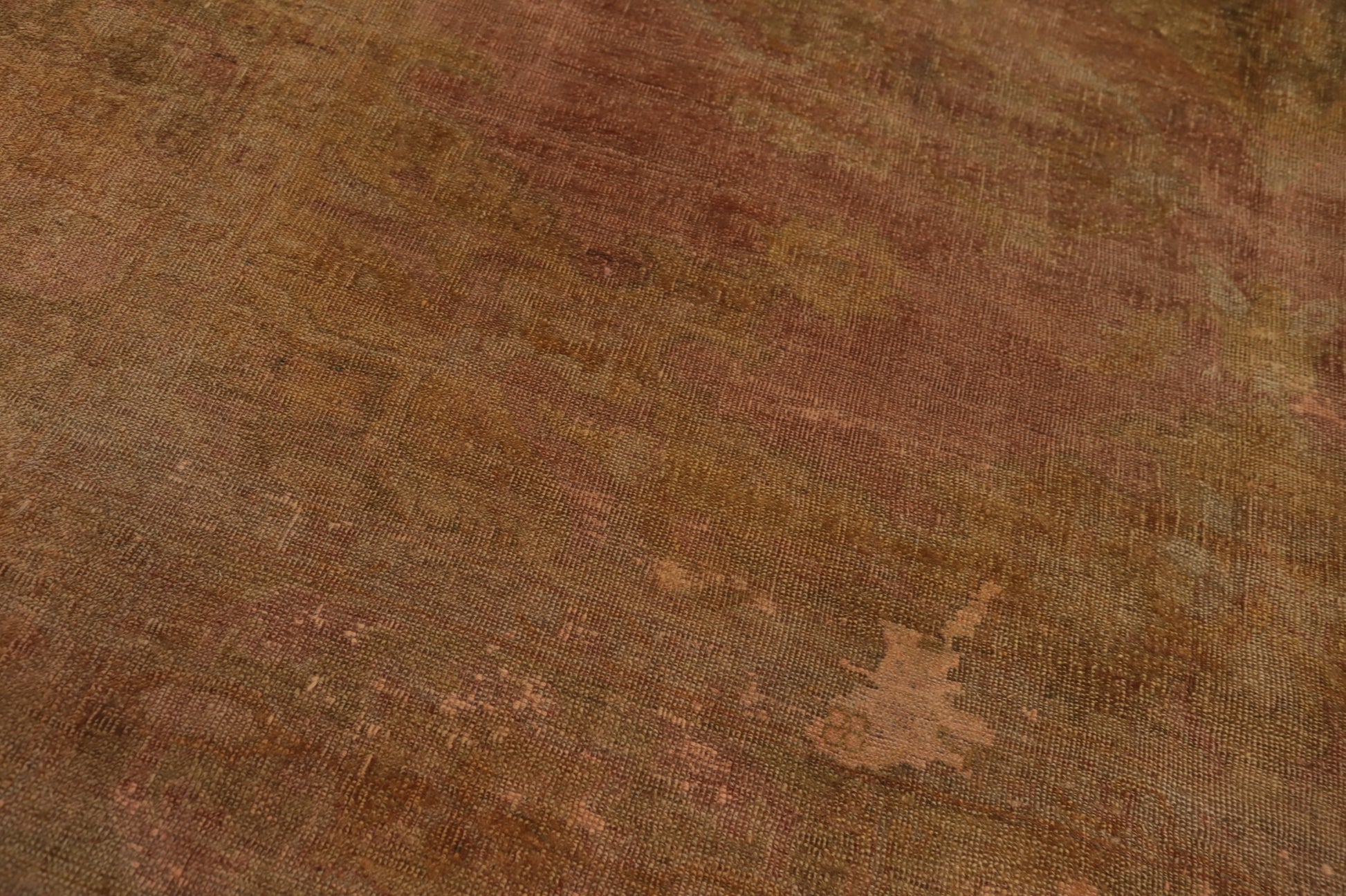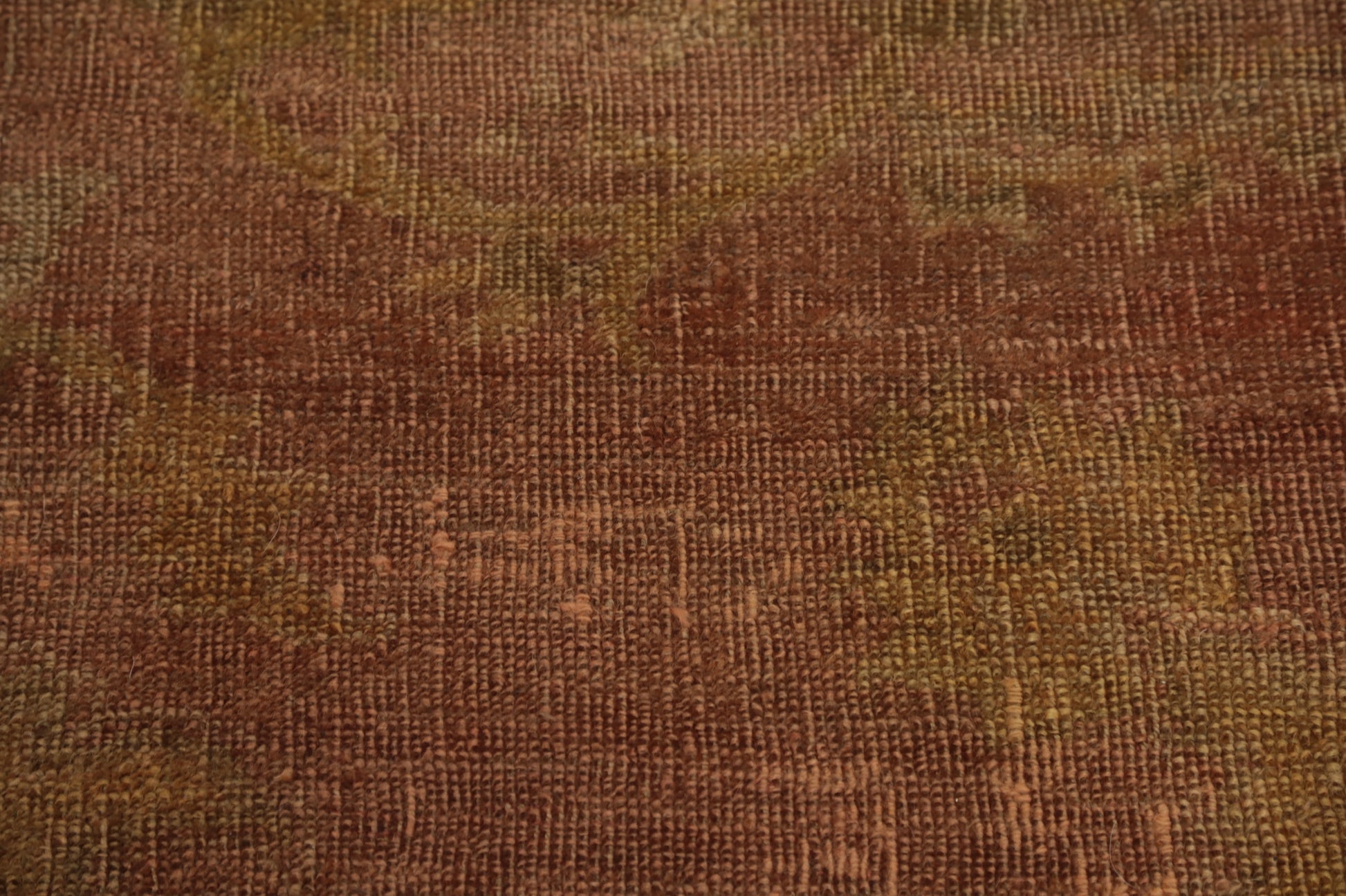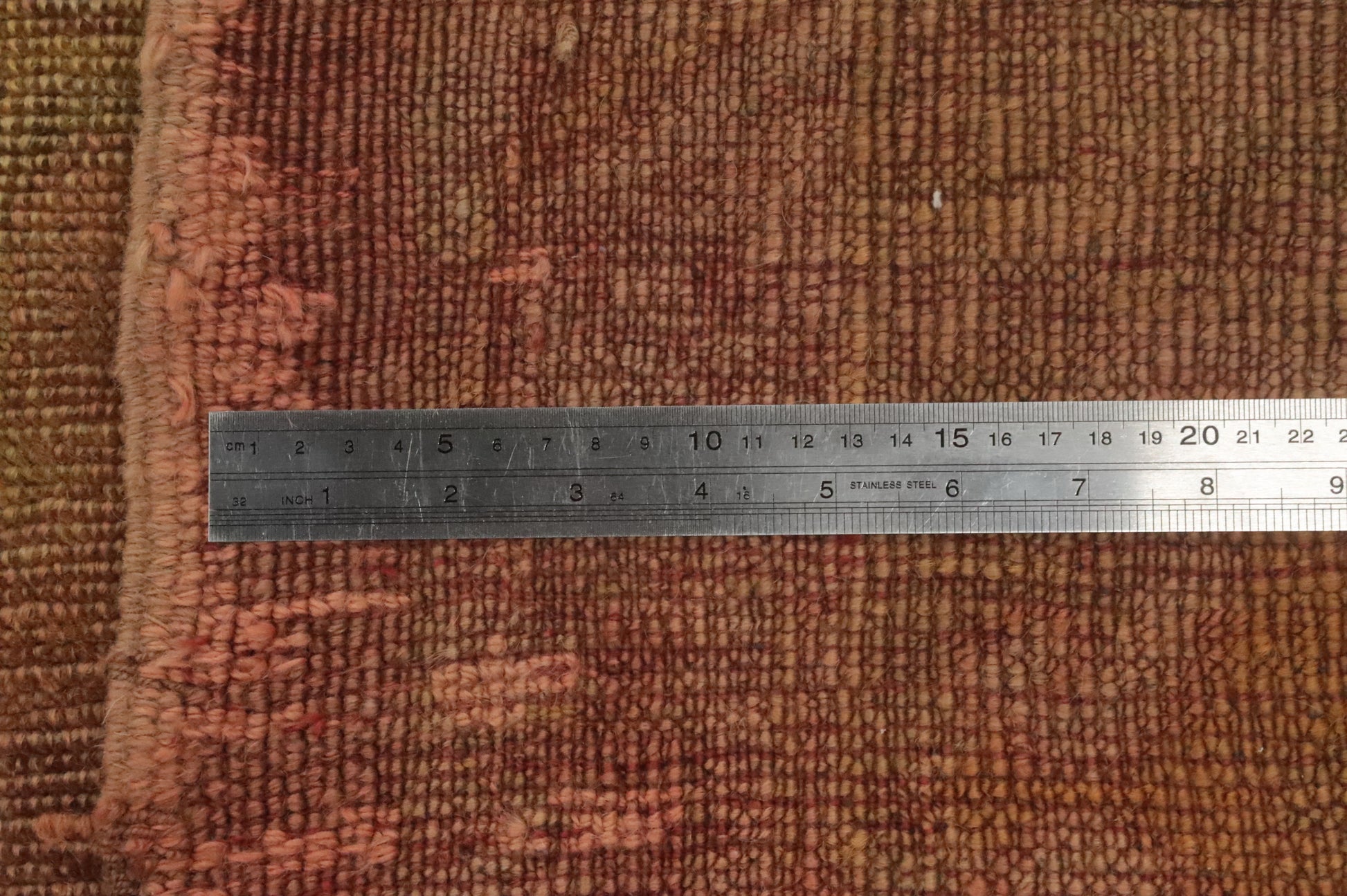 A Beautiful Genuine Turkey Oushak rug is Hand Knotted by skillful weavers in Turkey with 100% Wool Material. This rug is in Very Good (Evenly Low Pile-Repairs) condition. dimensions are 11' 5'' X 10' 0'' in foot and 348 X 305 in centimeter. the primary color is Pink.