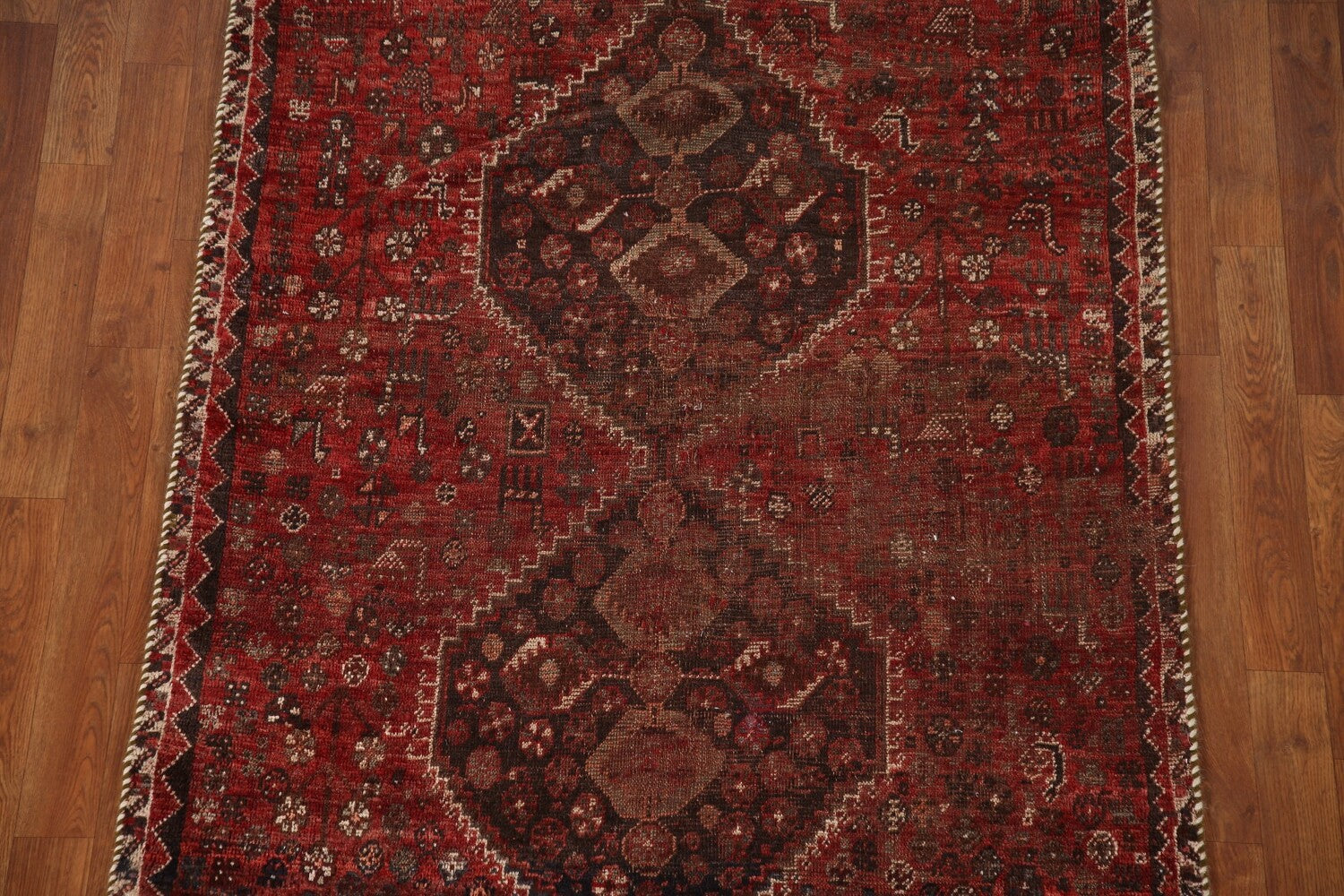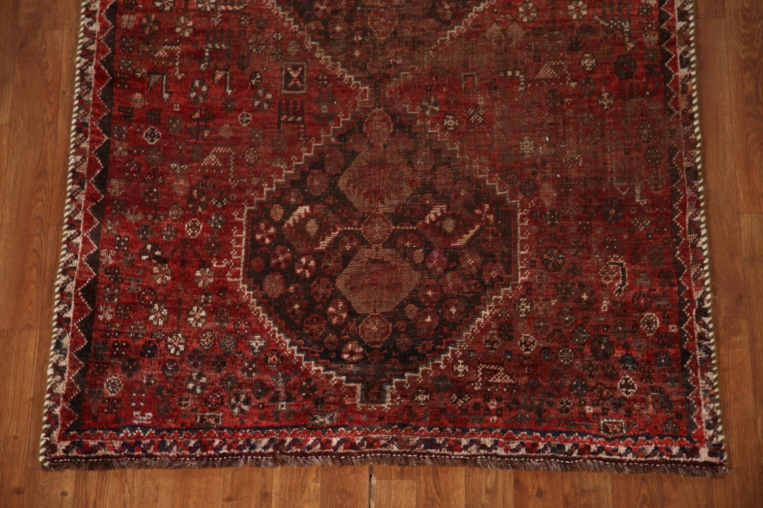 A Beautiful Genuine Persia ( Persia ) Qashqai rug is Hand Knotted by skillful weavers in Persia ( Persia ) with 100% Wool Material. This rug is in Very Good (Evenly Low Pile) condition. dimensions are 5' 3'' X 3' 10'' in foot and 160 X 117 in centimeter. the primary color is Red.