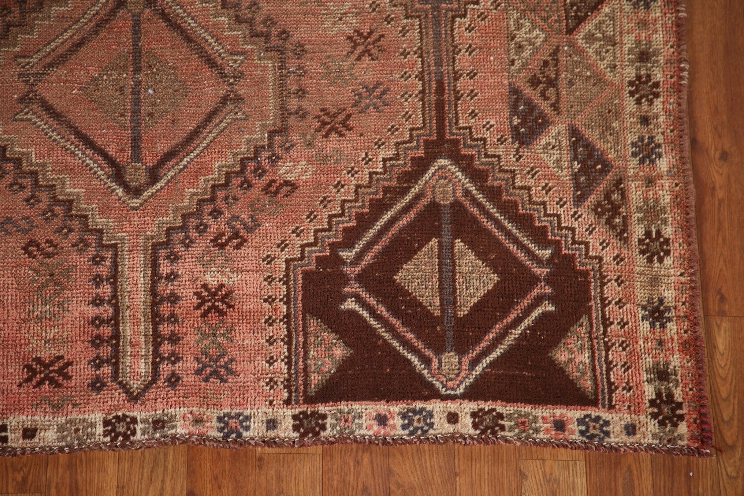 A Beautiful Genuine Persia ( Persia ) Qashqai rug is Hand Knotted by skillful weavers in Persia ( Persia ) with 100% Wool Material. This rug is in Very Good(Evenly Low Pile) condition. dimensions are 7' 1'' X 5' 1'' in foot and 216 X 155 in centimeter. the primary color is Pink.