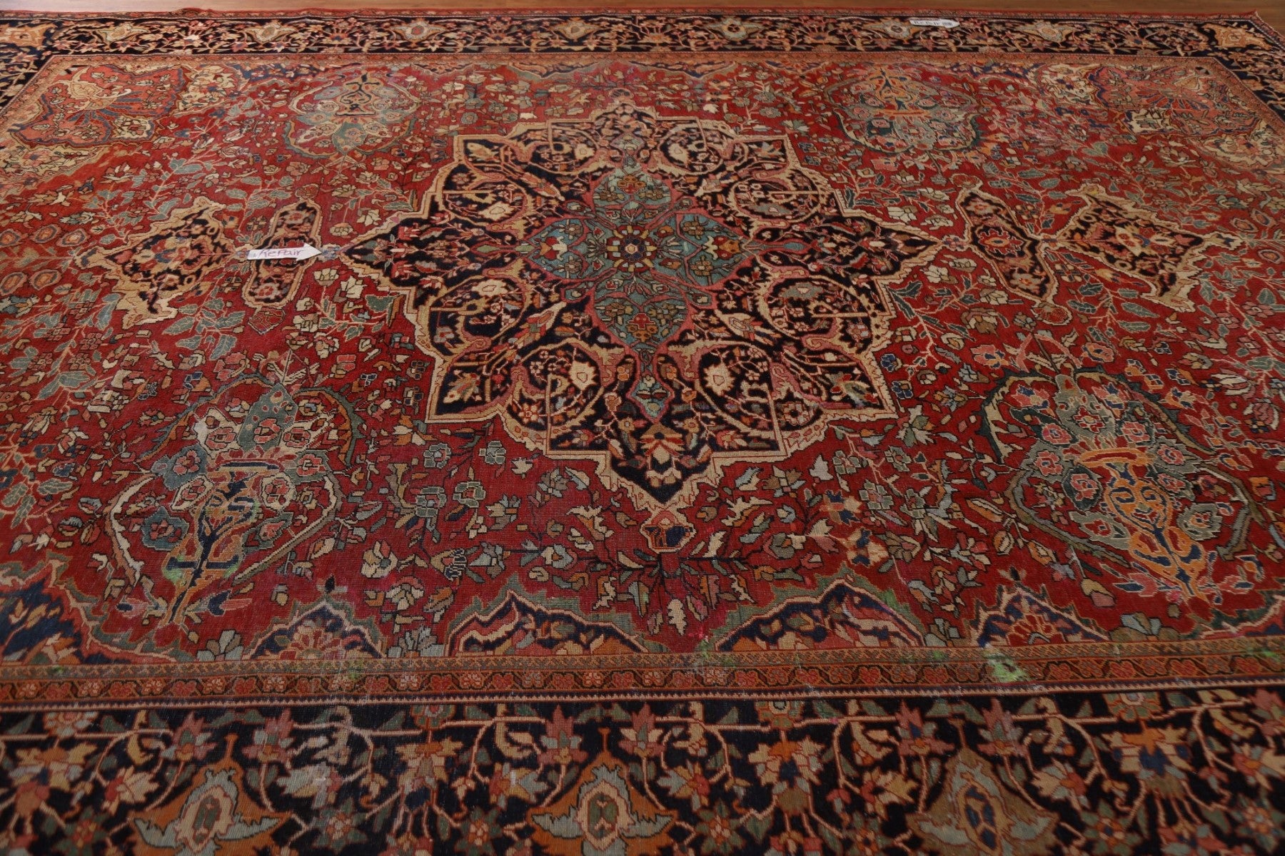 A Beautiful Genuine Persia ( Persia ) Sarouk (Farahan) rug is Hand Knotted by skillful weavers in Persia ( Persia ) with 100% Wool Material. This rug is in Very Good (Evenly Low Pile-Small Repair-100% Vegetable Dye) condition. dimensions are 13' 4'' X 10' 0'' in foot and 406 X 305 in centimeter. the primary color is Red.