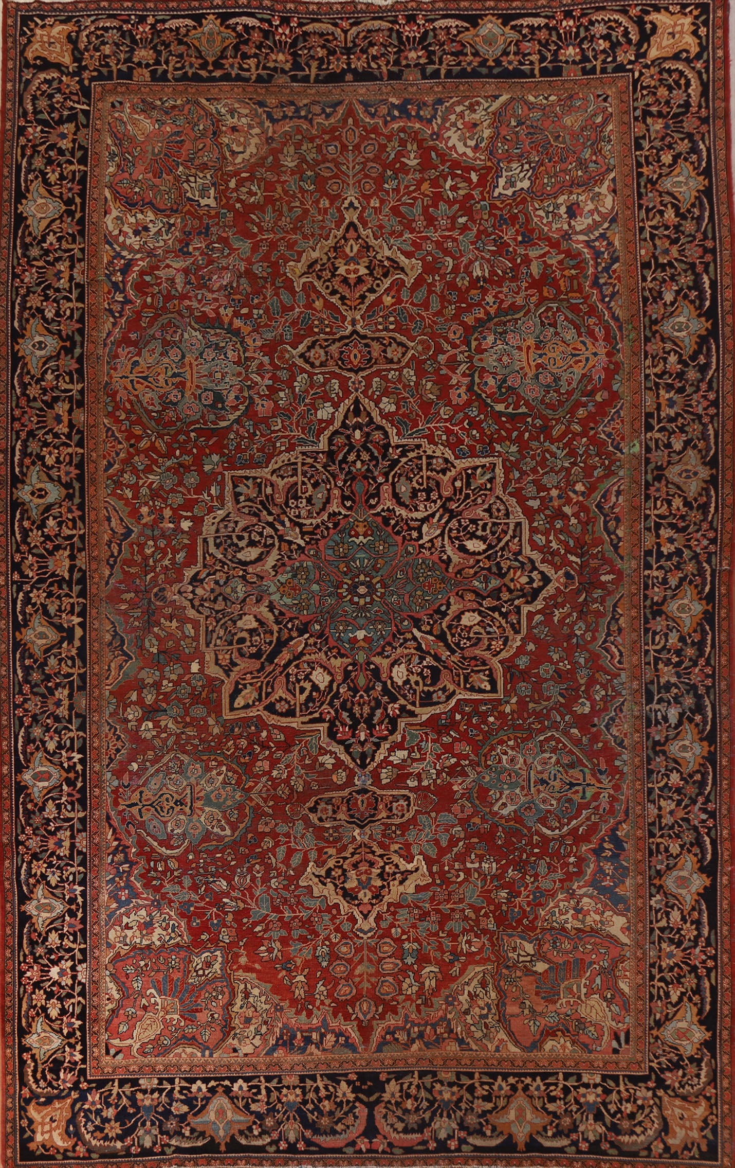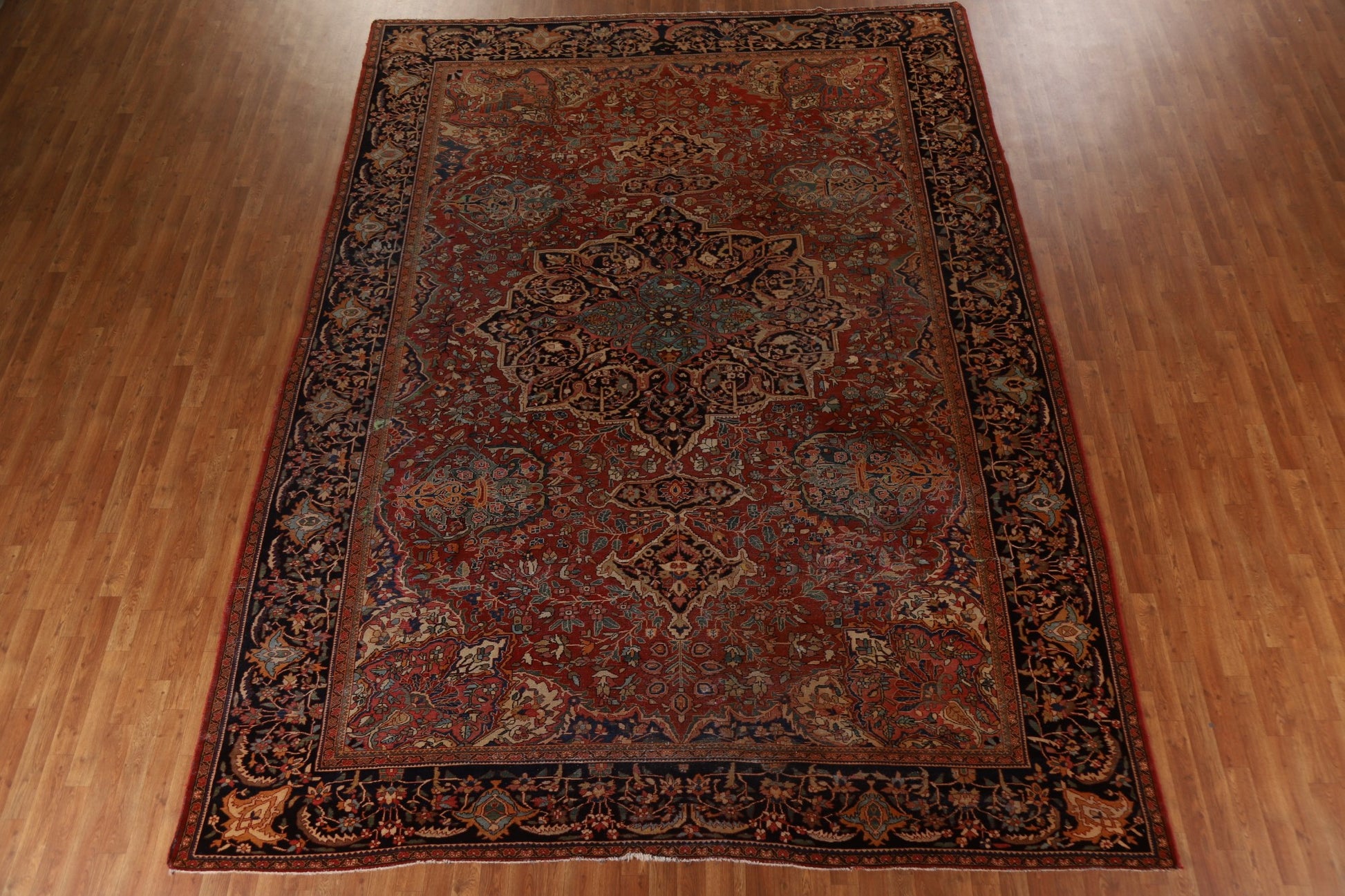 Pre-1900 Antique Sarouk Farahan Persian Vegetable Dye Rug 10x13