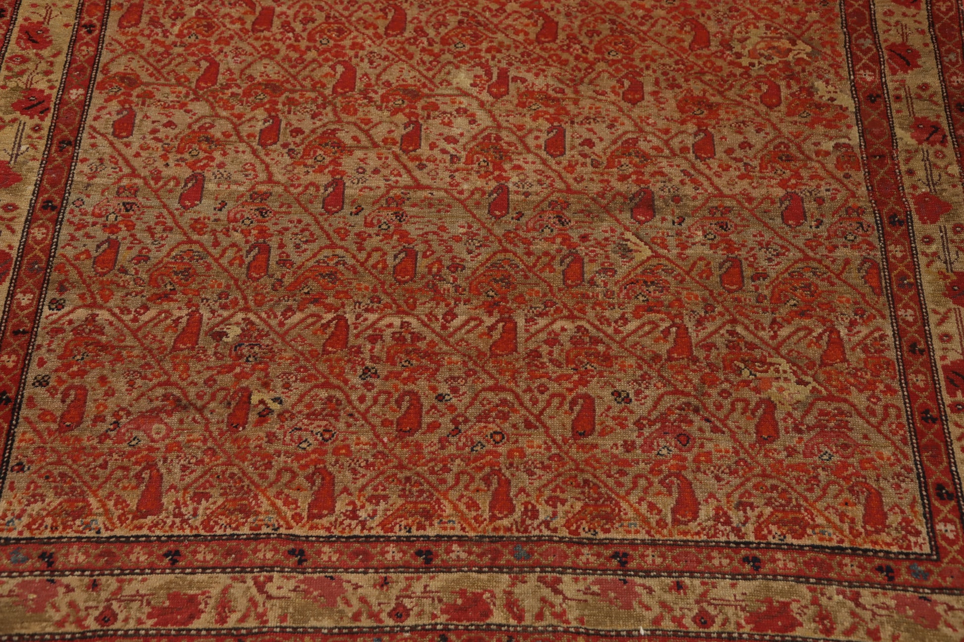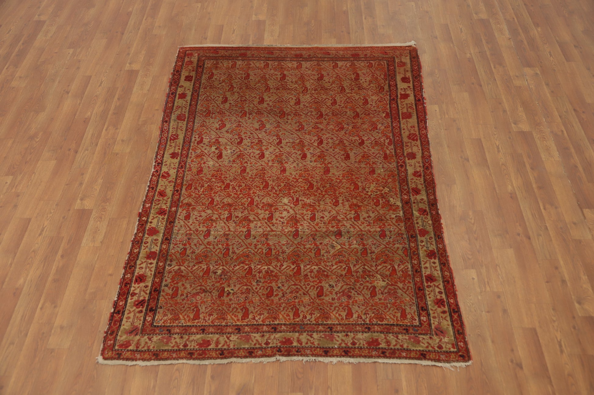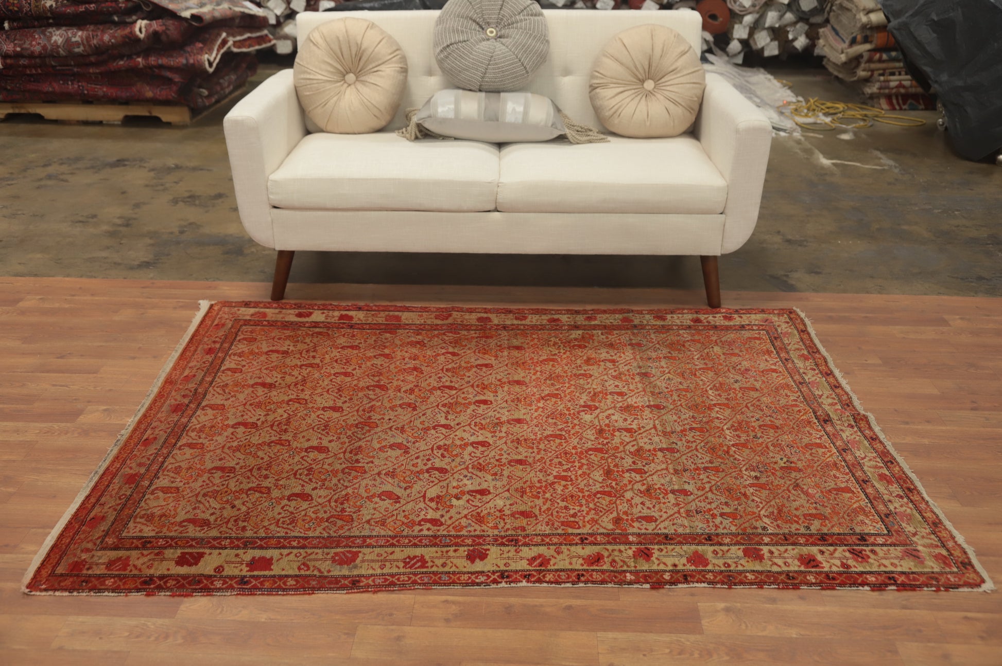 Pre-1900 Antique Sarouk Farahan Vegetable Dye Persian Rug 4x6