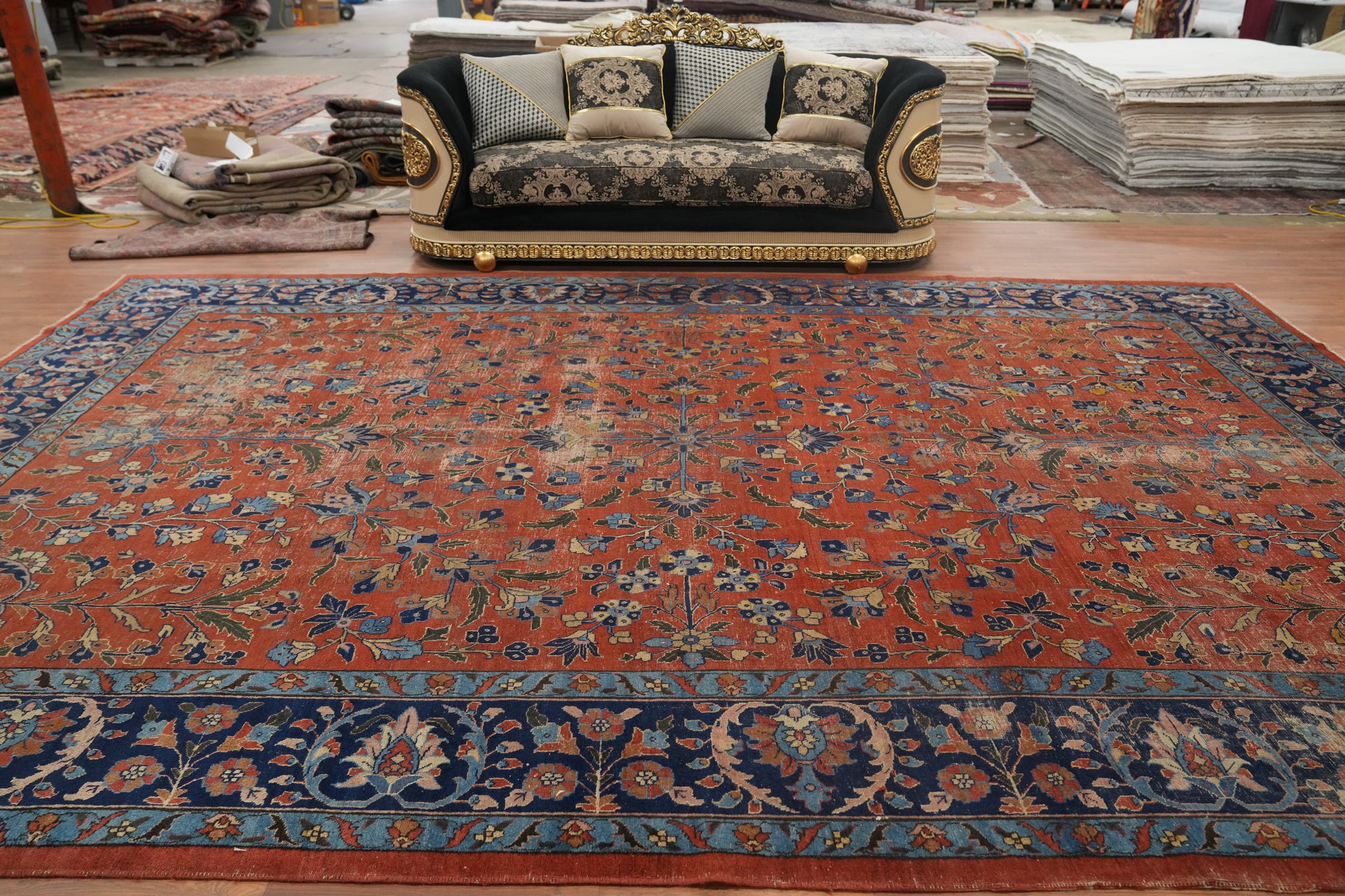 Pre-1900 Antique Sarouk Vegetable Dye Persian Rug 11x16