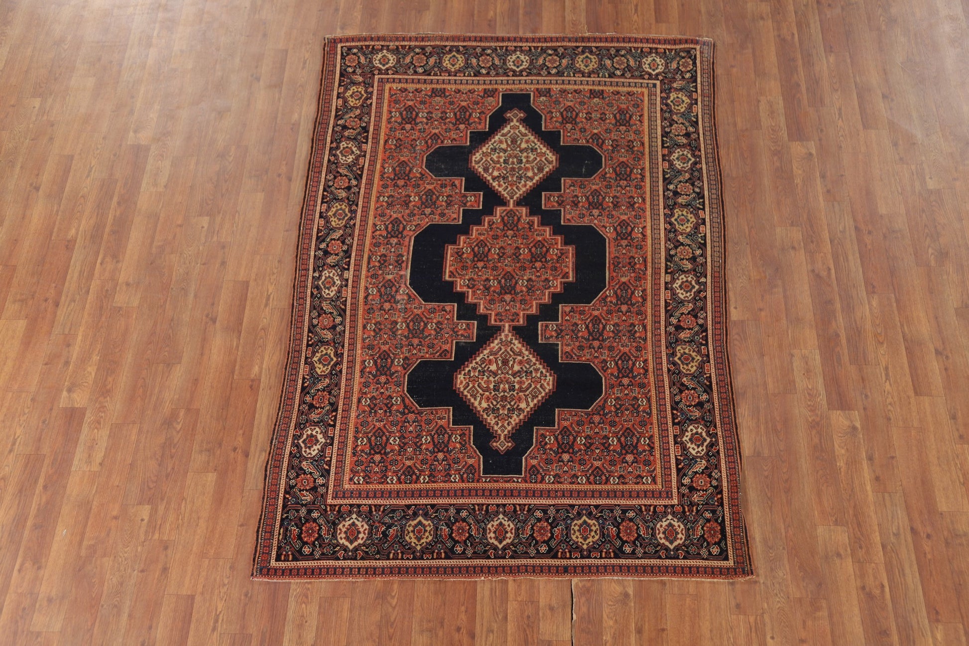Pre-1900 Antique Senneh Vegetable Dye Persian Rug 5x7