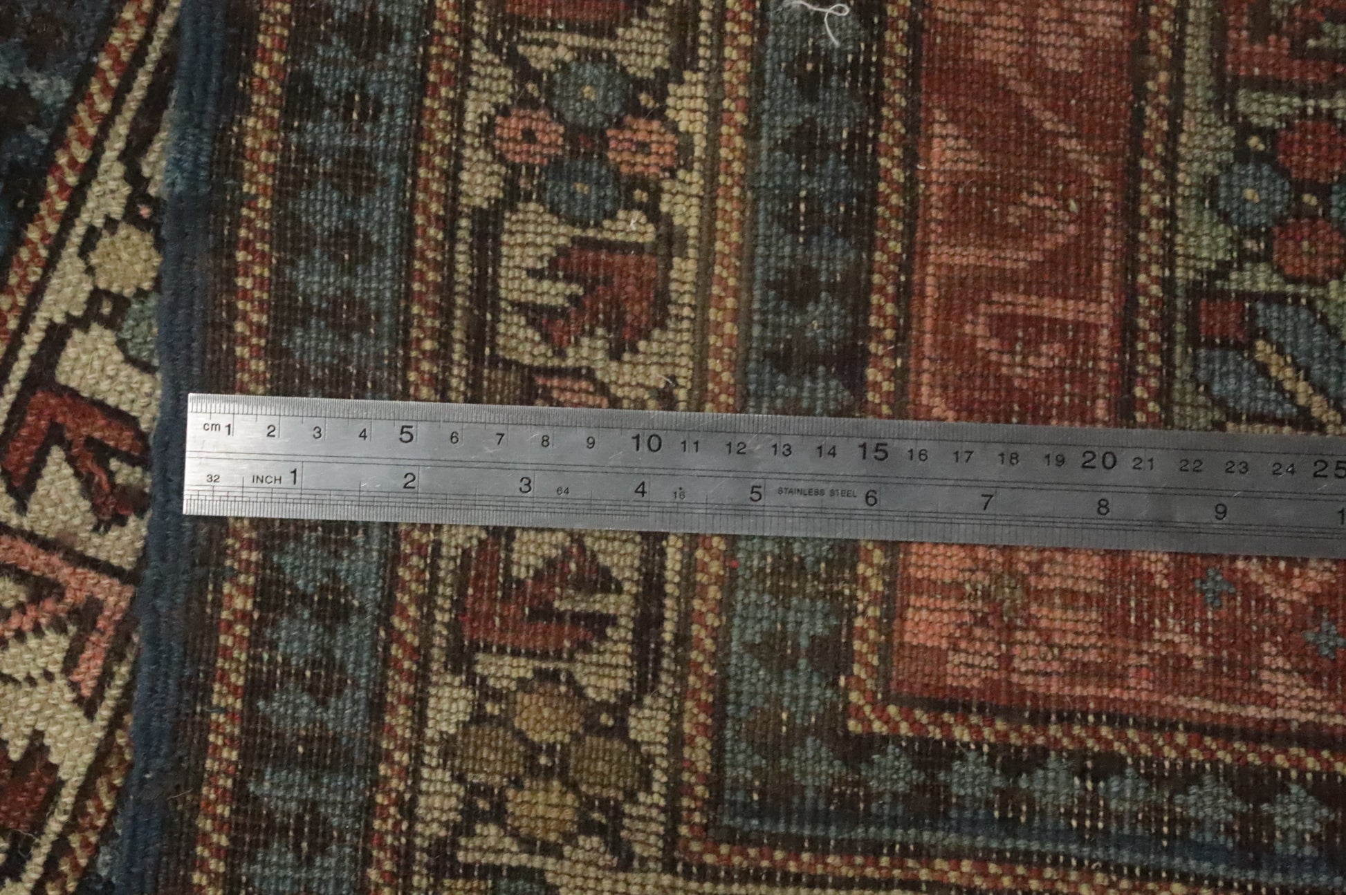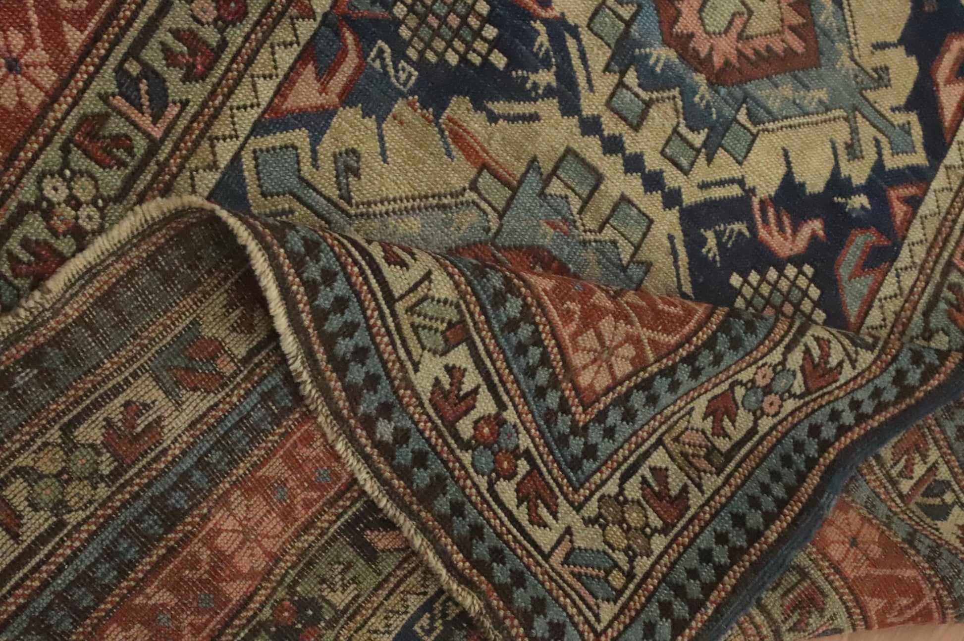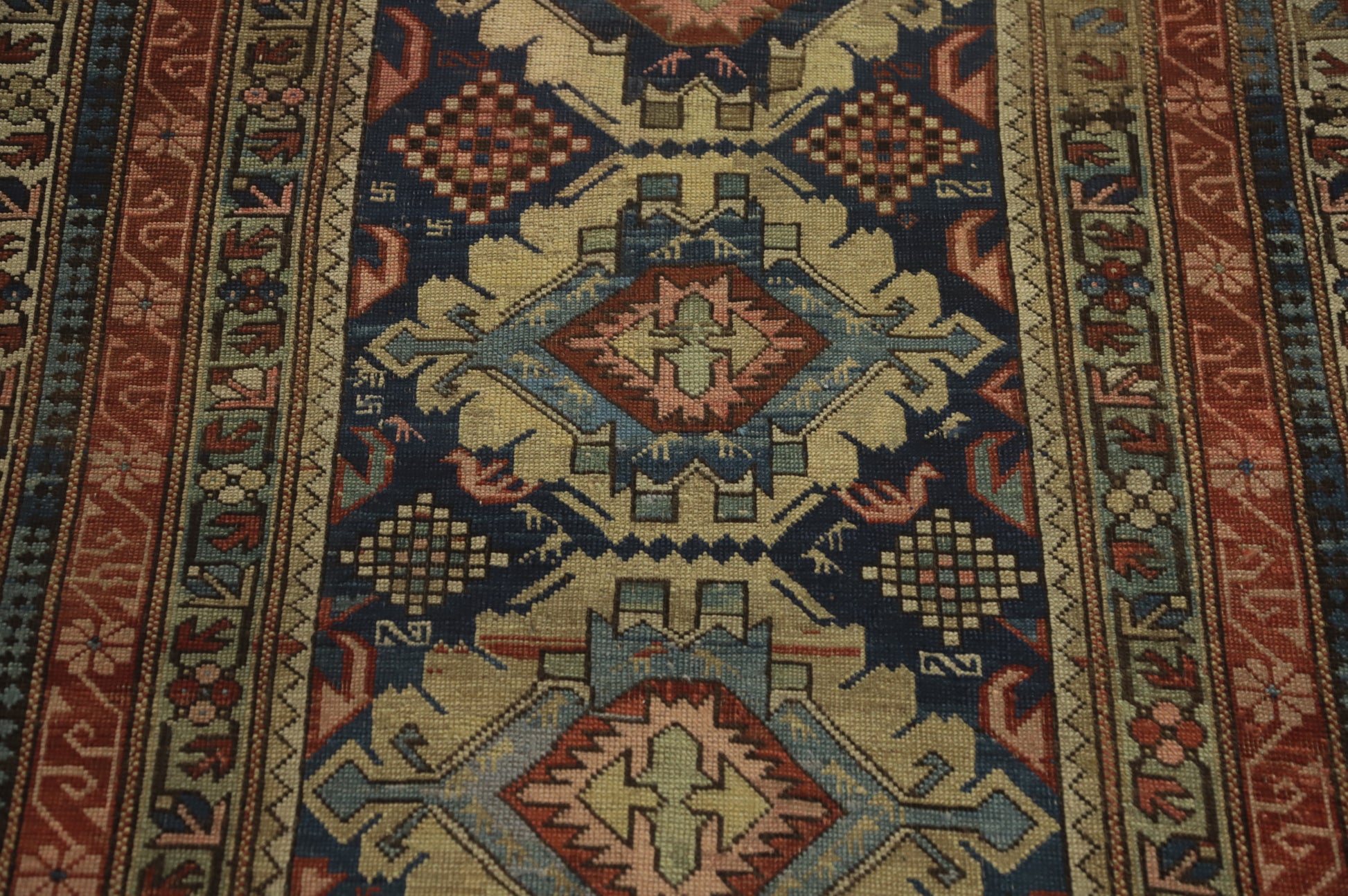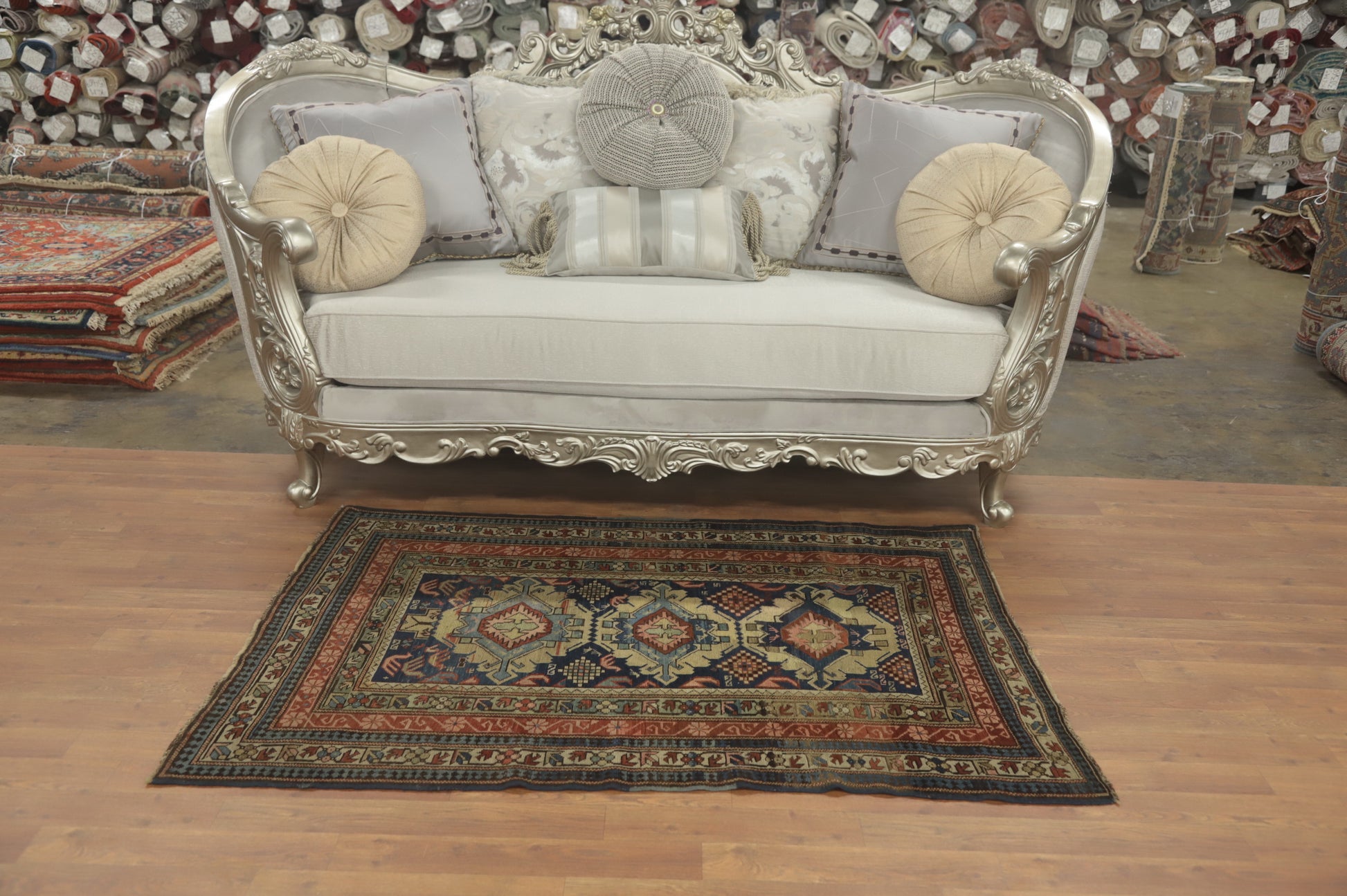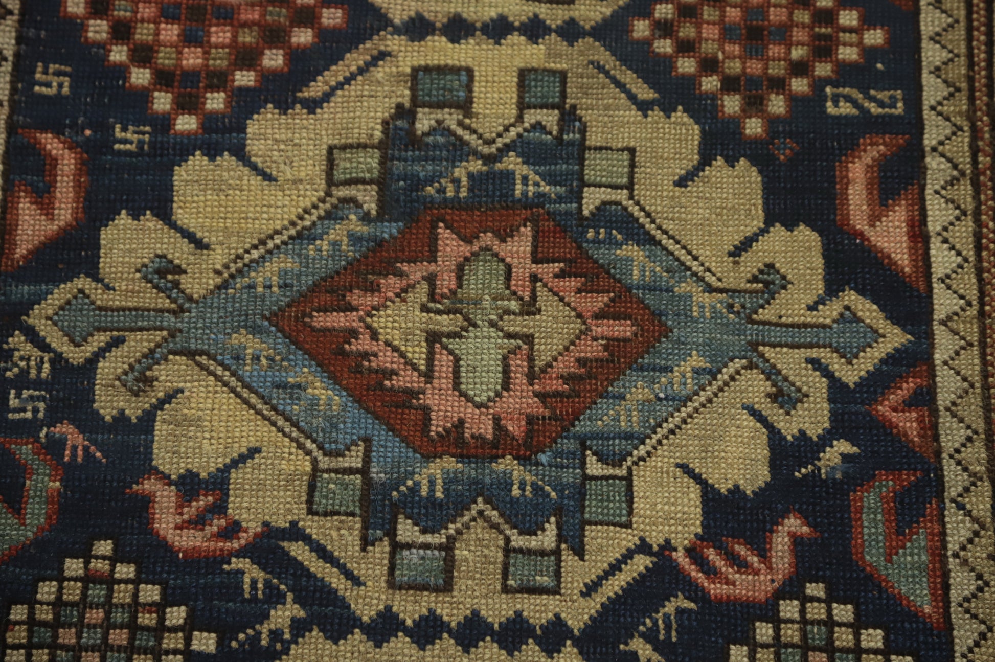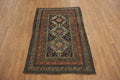A Beautiful Genuine Russia Shirvan rug is Hand Knotted by skillful weavers in Russia with 100% Wool Material. This rug is in Very Good (Evenly Low Pile) condition. dimensions are 4' 11'' X 3' 3'' in foot and 150 X 99 in centimeter. the primary color is Navy Blue & Blues.