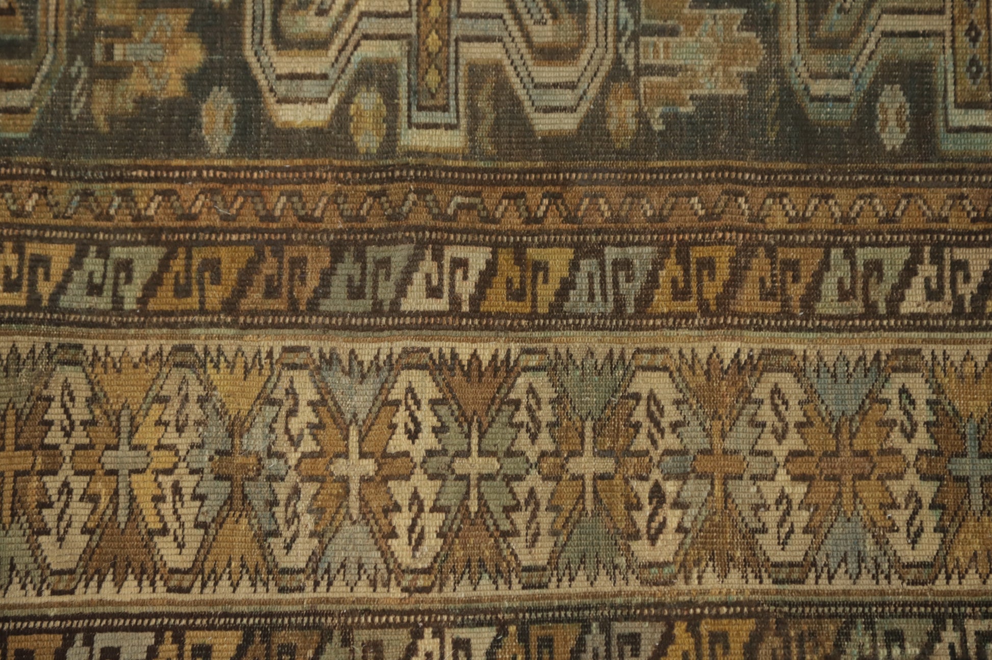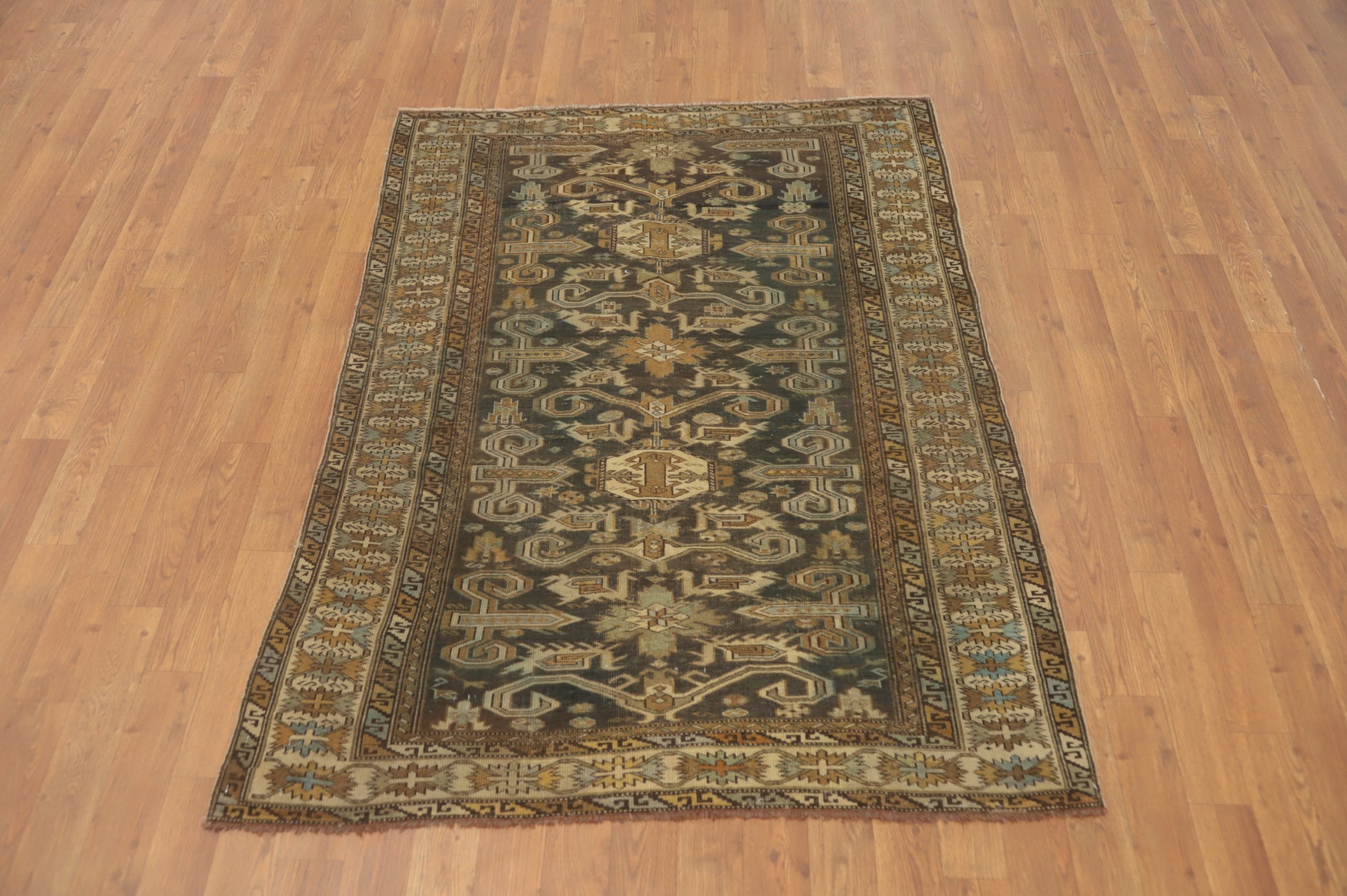 A Beautiful Genuine Russia Shirvan rug is Hand Knotted by skillful weavers in Russia with 100% Wool Material. This rug is in Very Good ( Low Pile ) condition. dimensions are 4' 10'' X 3' 7'' in foot and 147 X 109 in centimeter. the primary color is Greys & Charcoal.