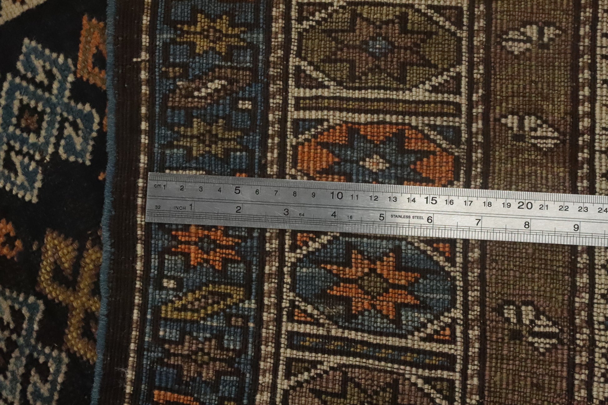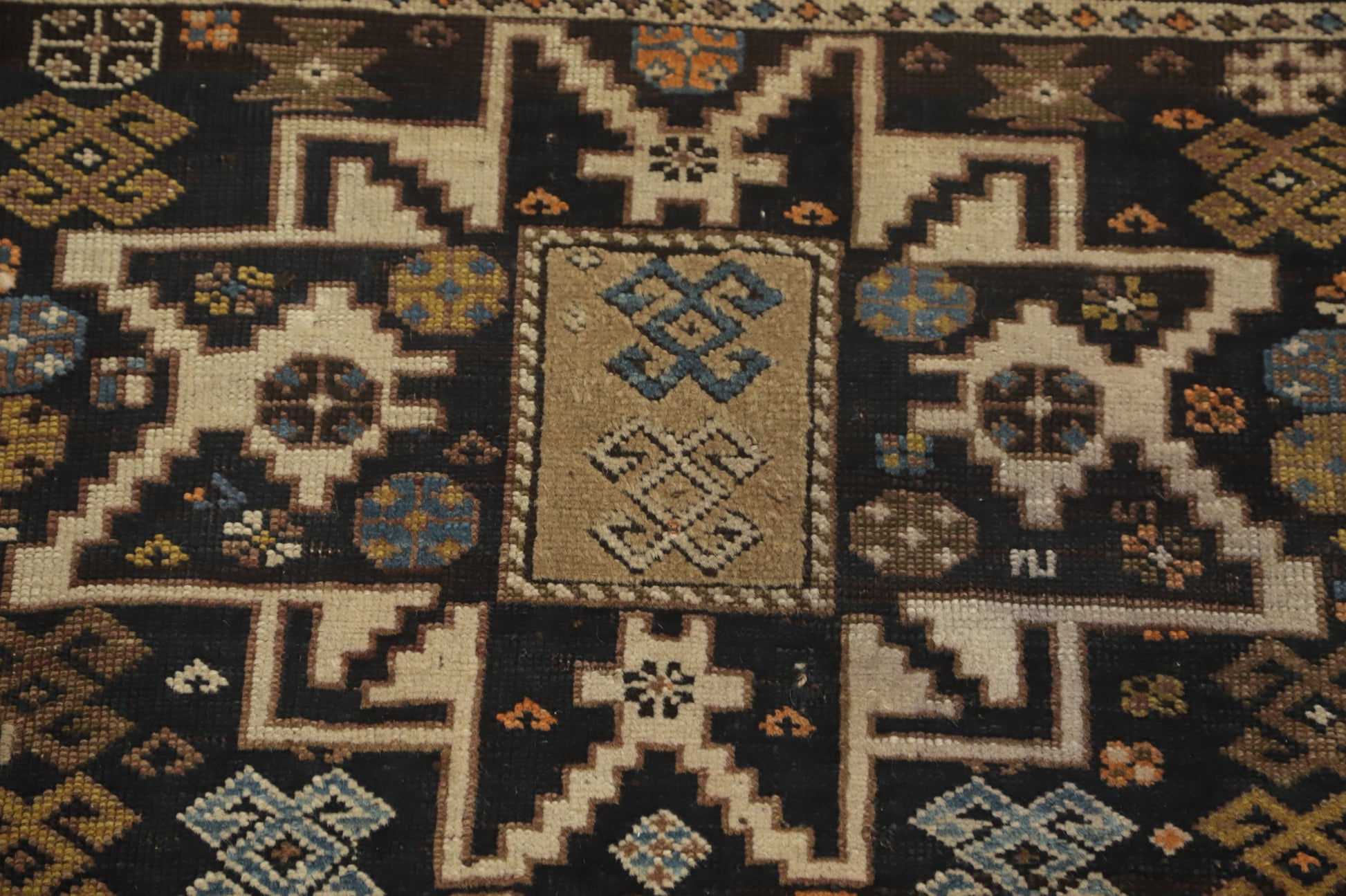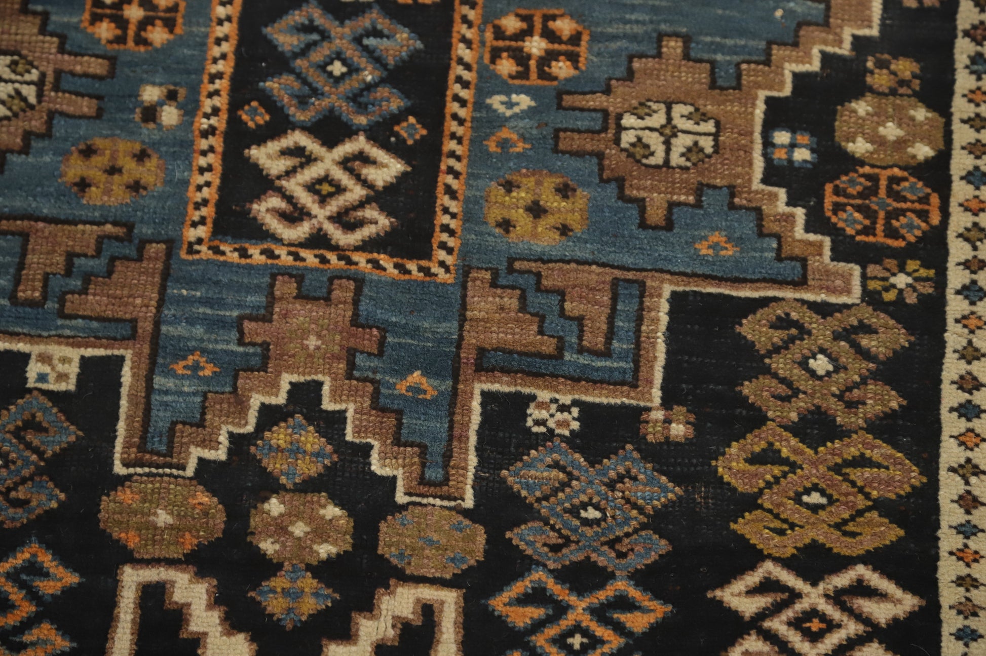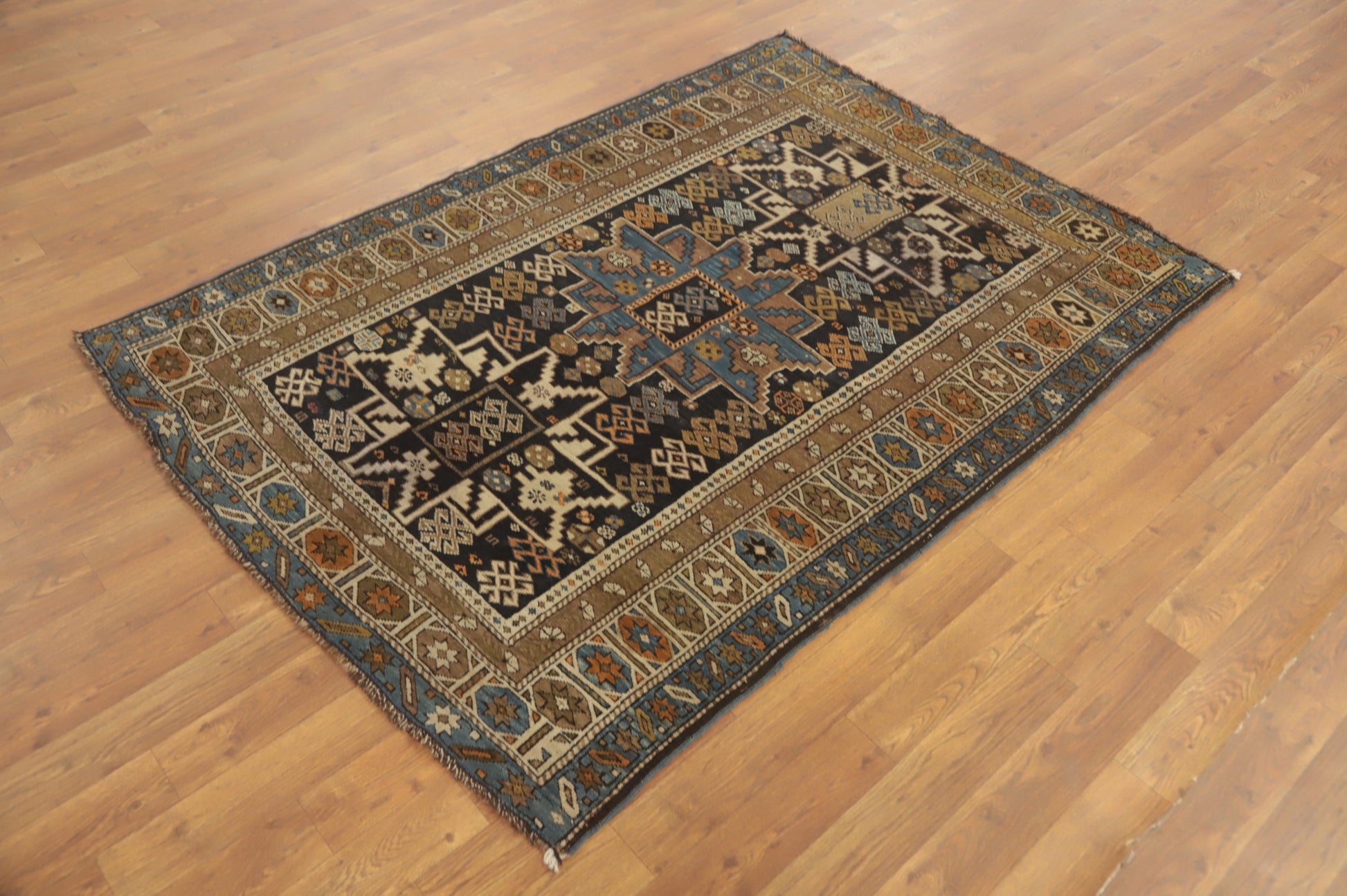 A Beautiful Genuine Russia Shirvan rug is Hand Knotted by skillful weavers in Russia with 100% Wool Material. This rug is in Very Good condition. dimensions are 5' 3'' X 3' 9'' in foot and 160 X 114 in centimeter. the primary color is Black.