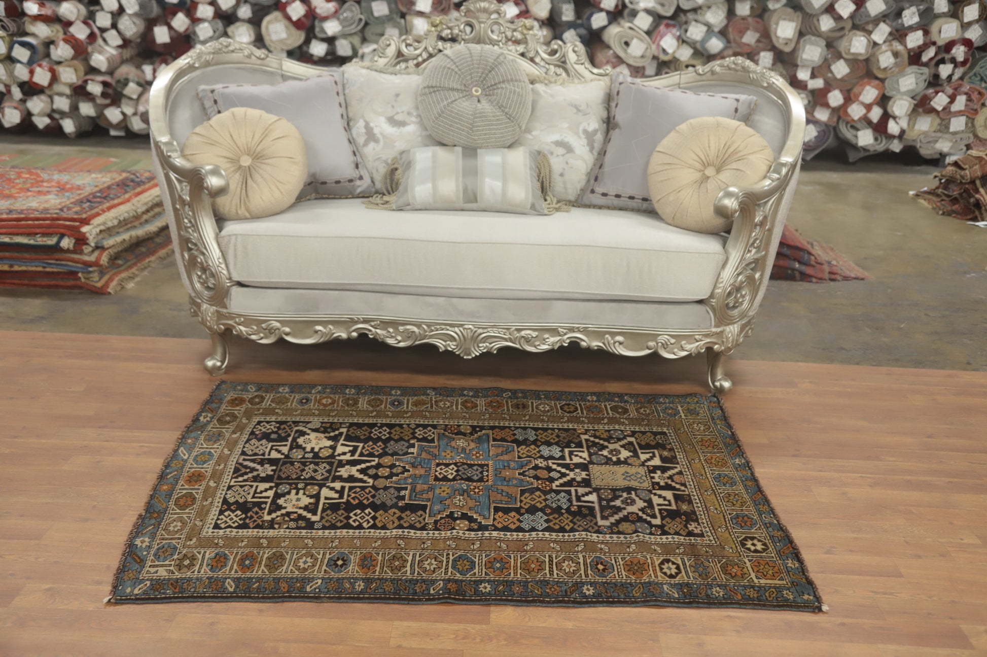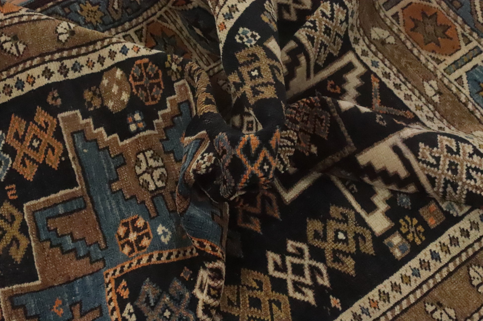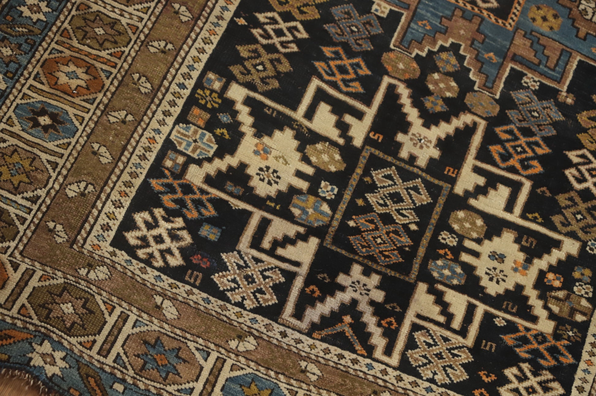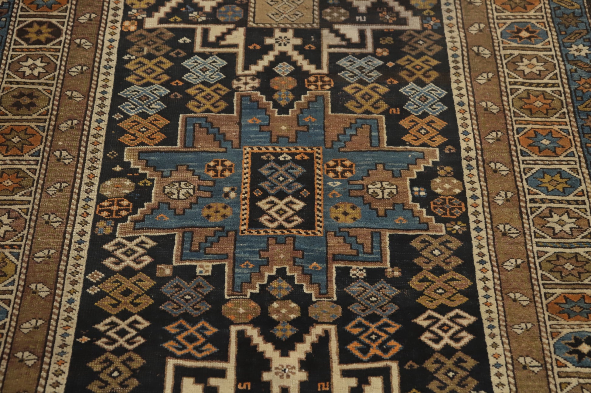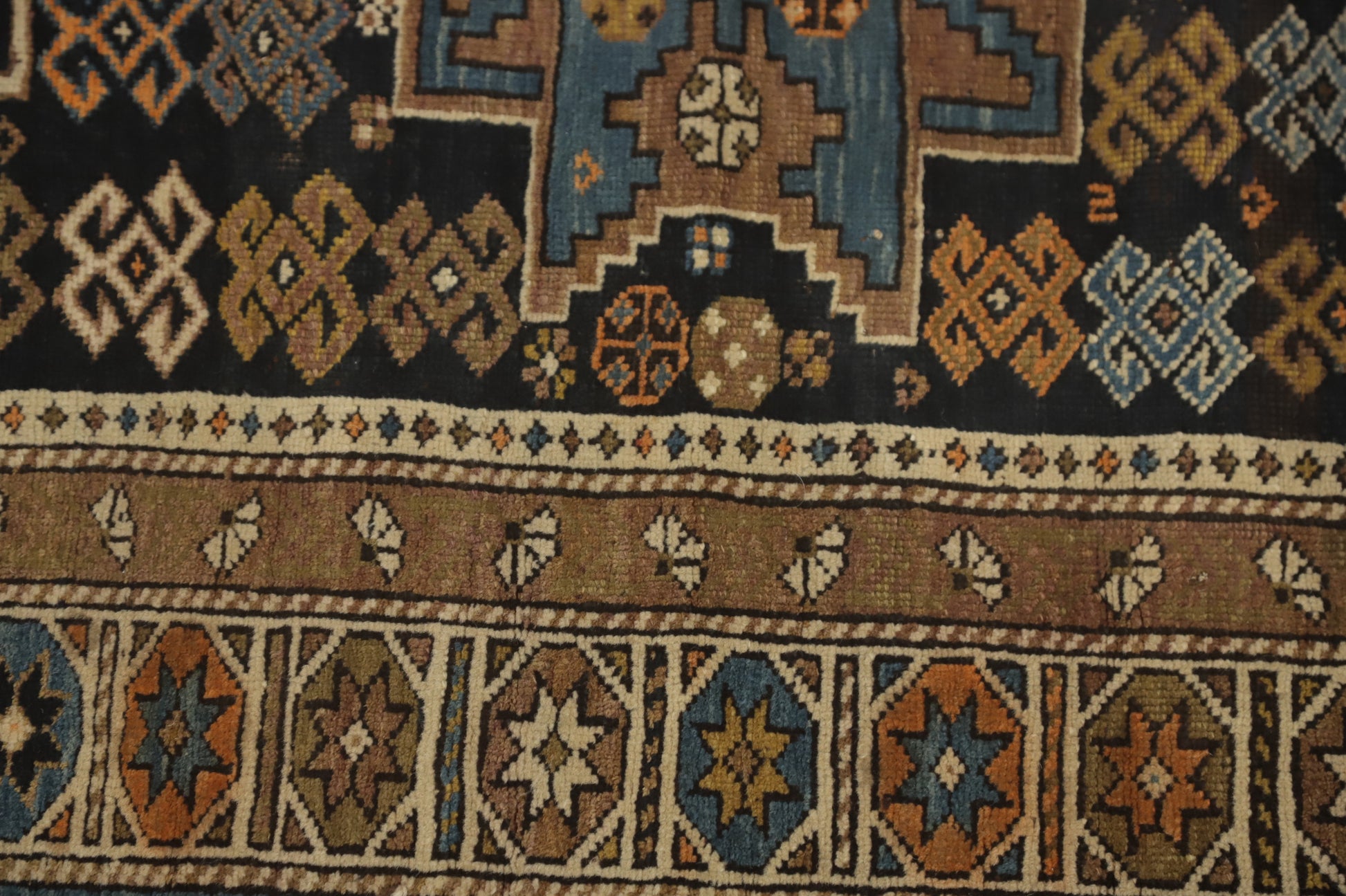 A Beautiful Genuine Russia Shirvan rug is Hand Knotted by skillful weavers in Russia with 100% Wool Material. This rug is in Very Good condition. dimensions are 5' 3'' X 3' 9'' in foot and 160 X 114 in centimeter. the primary color is Black.