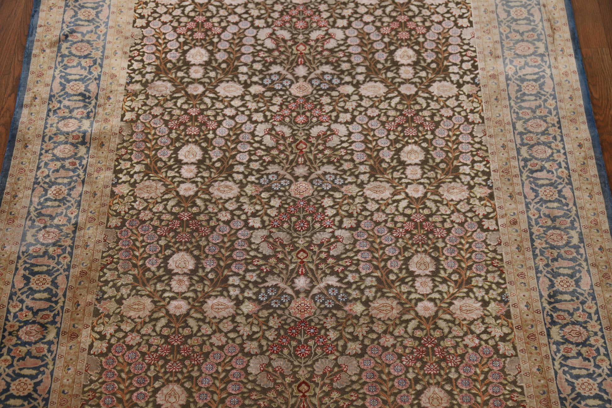 A Beautiful Genuine Persia ( Persia ) Qum rug is Hand Knotted by skillful weavers in Persia ( Persia ) with Silk & Silver Material. This rug is in Very Good condition. dimensions are 5' 6'' X 3' 7'' in foot and 168 X 109 in centimeter. the primary color is Green.