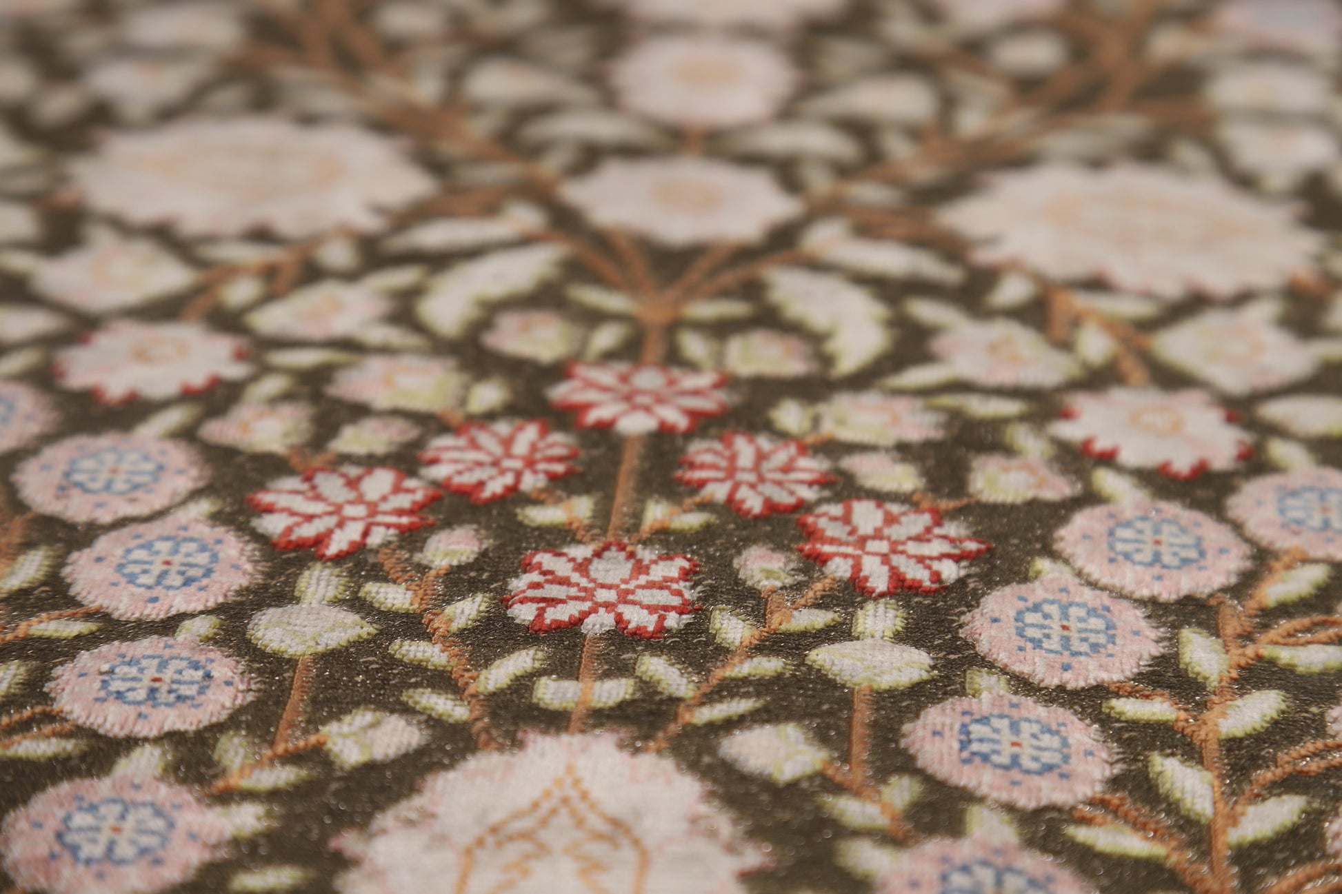 Pre-1900 Antique Silk/ Silver Qum Vegetable Dye Persian Rug 4x6