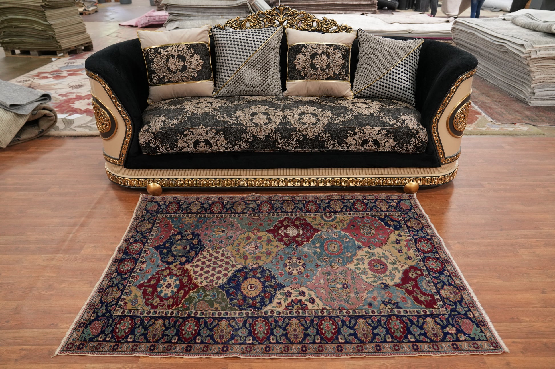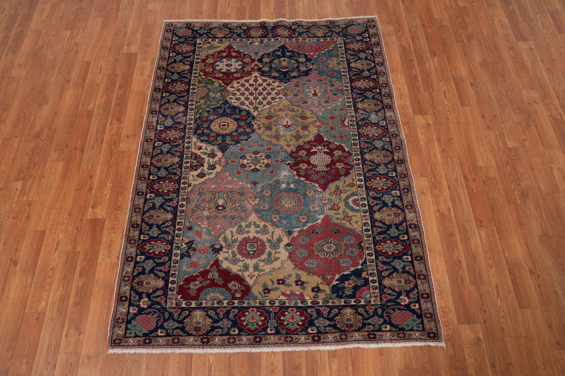A Beautiful Genuine Persia ( Persia ) Tabriz rug is Hand Knotted by skillful weavers in Persia ( Persia ) with 100% Wool Material. This rug is in Very Good (Evenly Low Pile) condition. dimensions are 5' 9'' X 4' 1'' in foot and 175 X 124 in centimeter. the primary color is Multi-Colored.