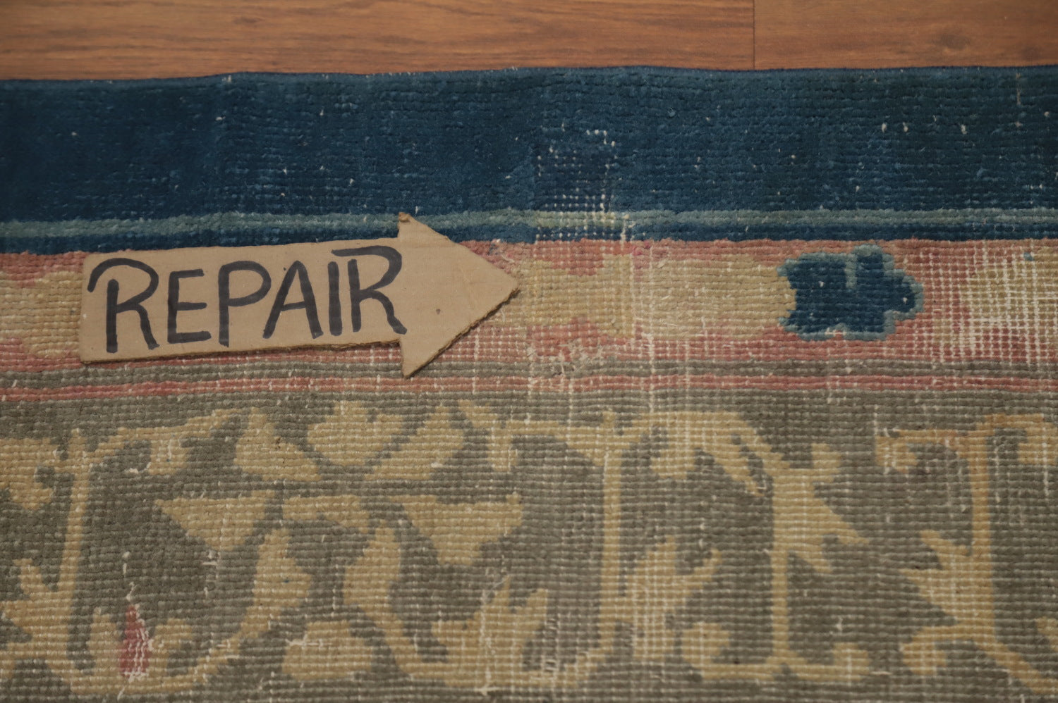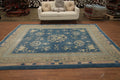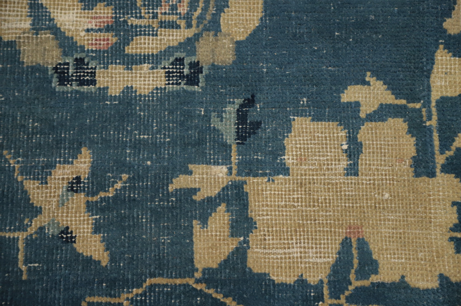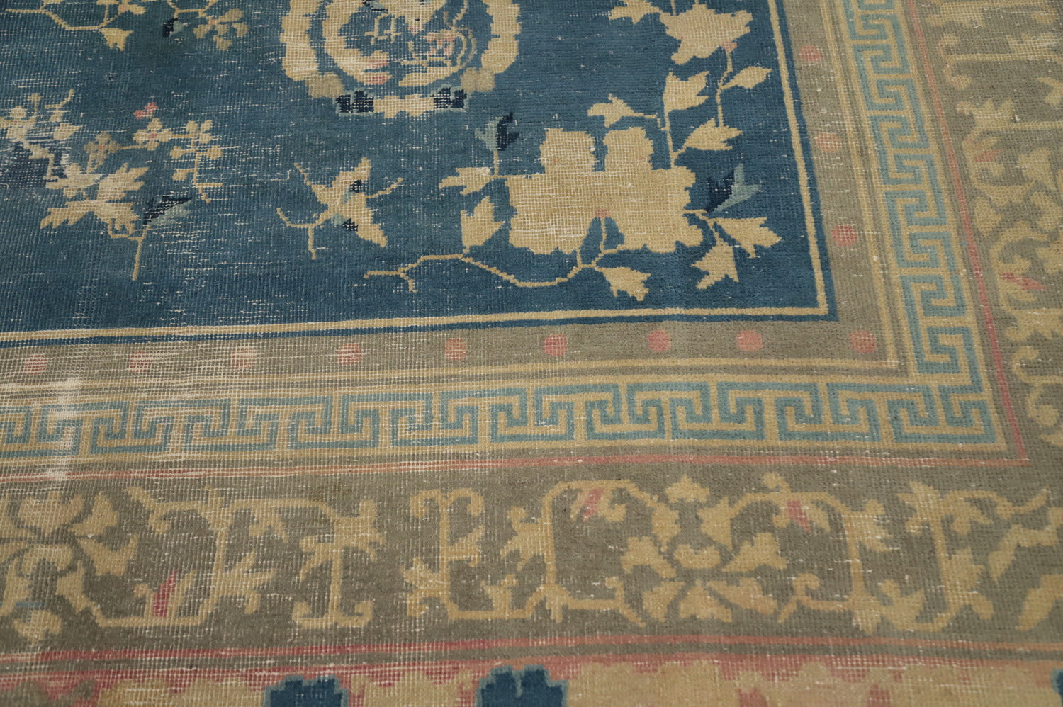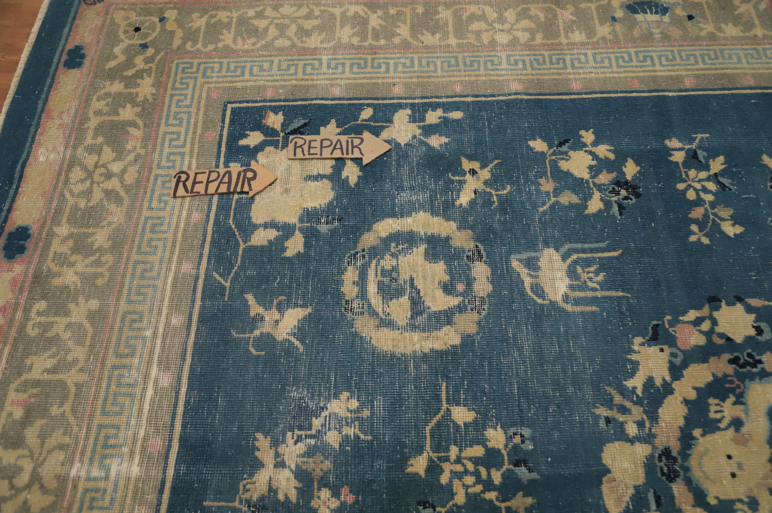 A Beautiful Genuine China Art Deco rug is Hand Knotted by skillful weavers in China with 100% Wool Material. This rug is in Very Good (Evenly Low Pile-Repairs) condition. dimensions are 10' 0'' X 8' 10'' in foot and 305 X 269 in centimeter. the primary color is Navy Blue & Blues.