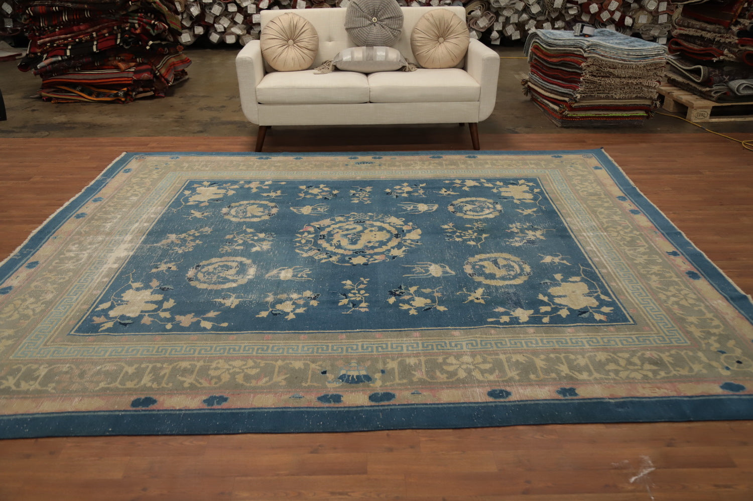 Pre-1900 Antique Vegetable Dye Art Deco Chinese Area Rug 9x10