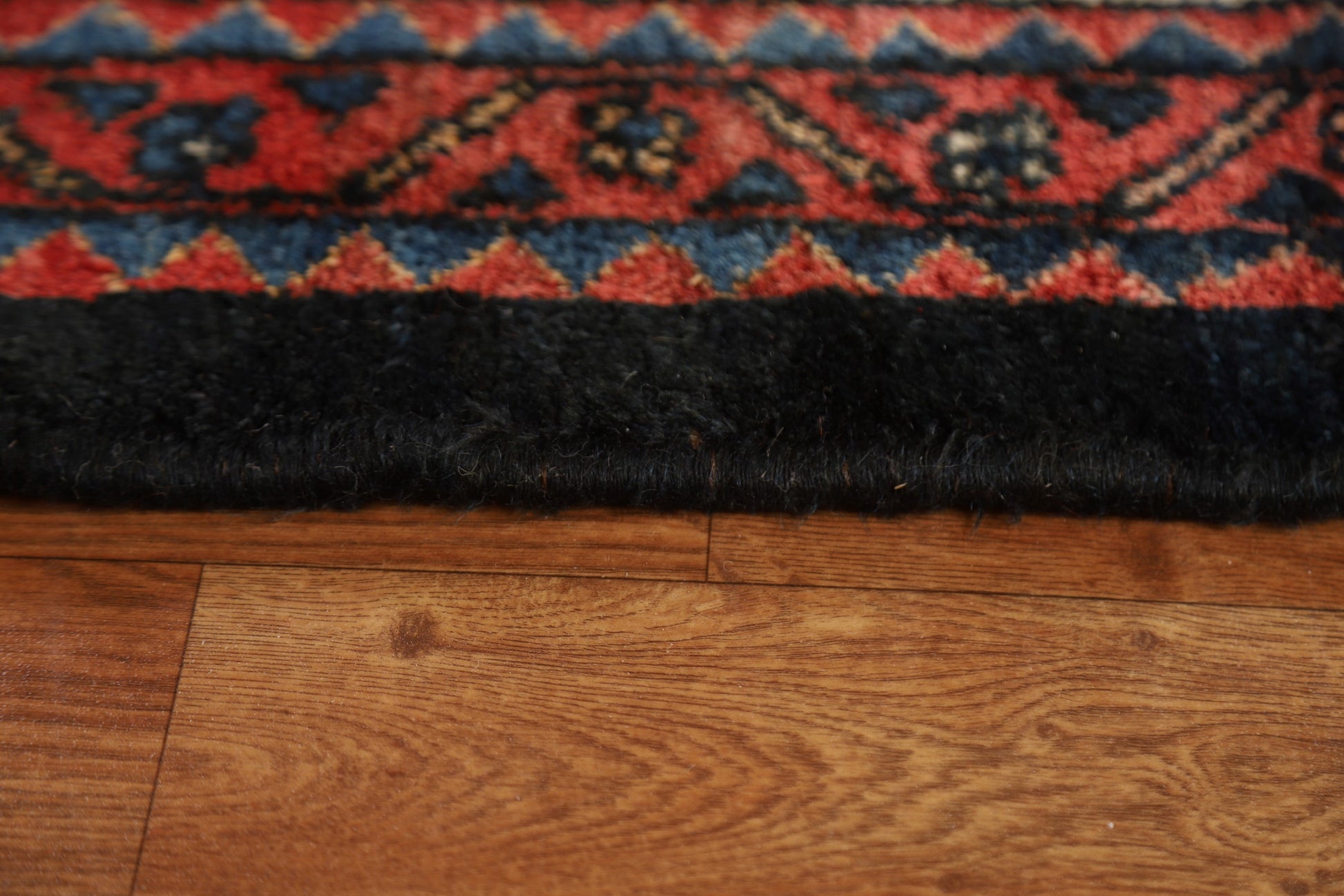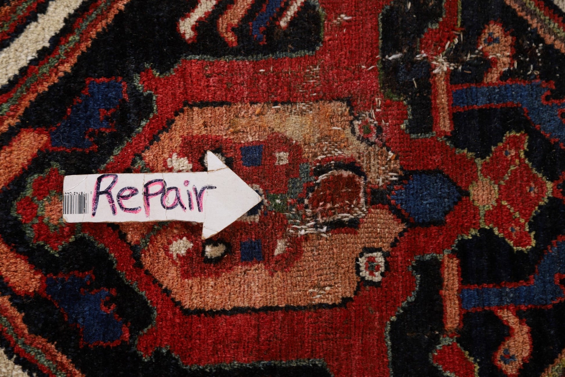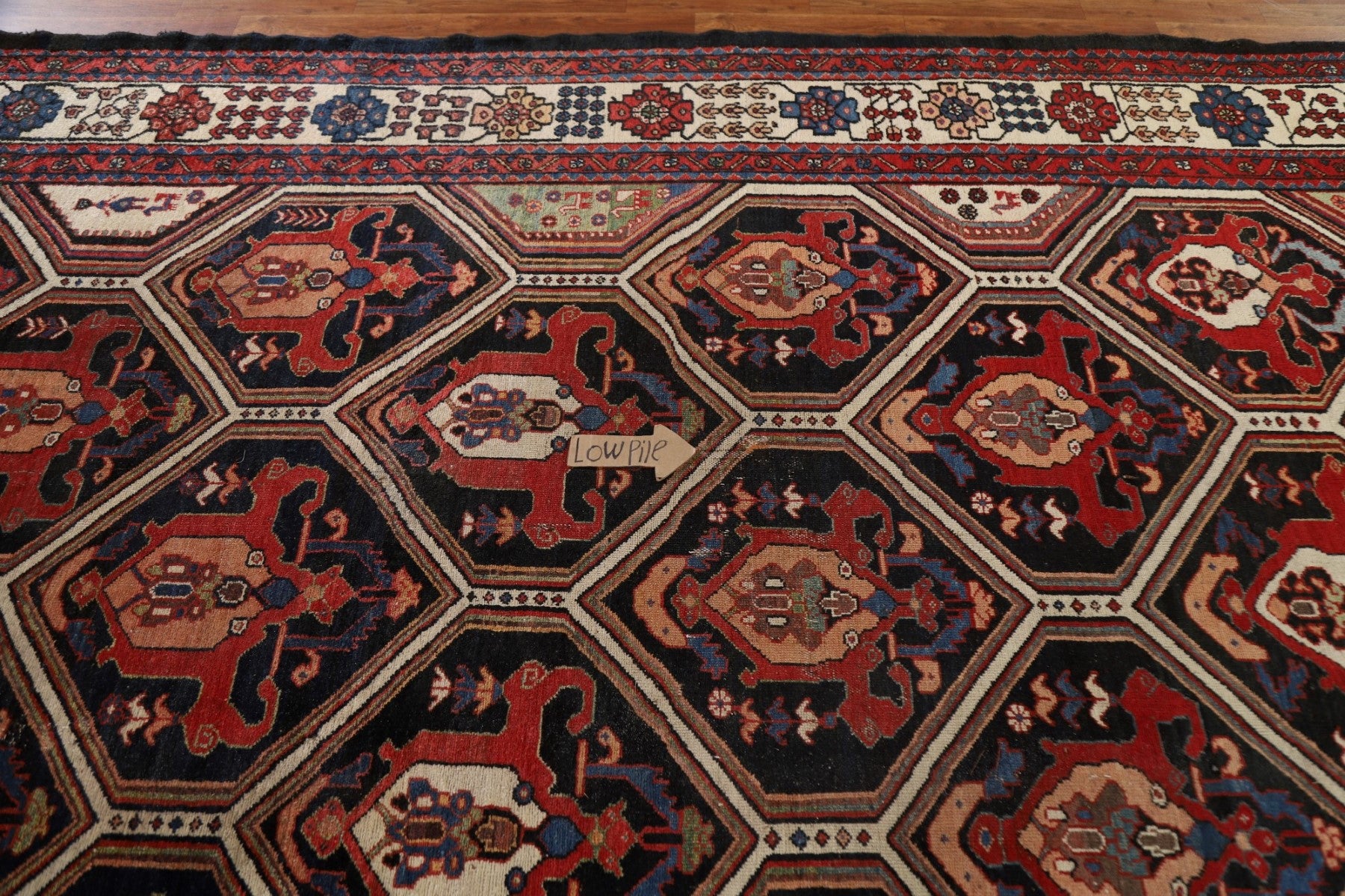A Beautiful Genuine Persia ( Persia ) Bakhtiari rug is Hand Knotted by skillful weavers in Persia ( Persia ) with 100% Wool Material. This rug is in Very Good (Low Pile-Repair) condition. dimensions are 12' 5'' X 10' 5'' in foot and 378 X 318 in centimeter. the primary color is Black.