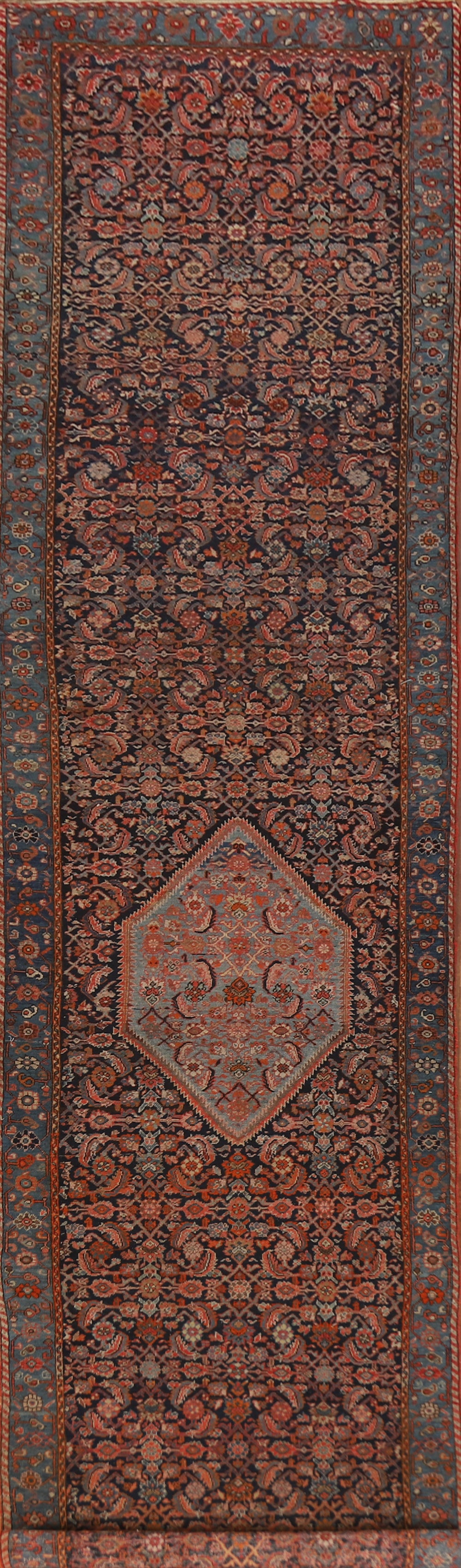 Pre-1900 Antique Vegetable Dye Bidjar Halvaei Persian Runner Rug 3x19