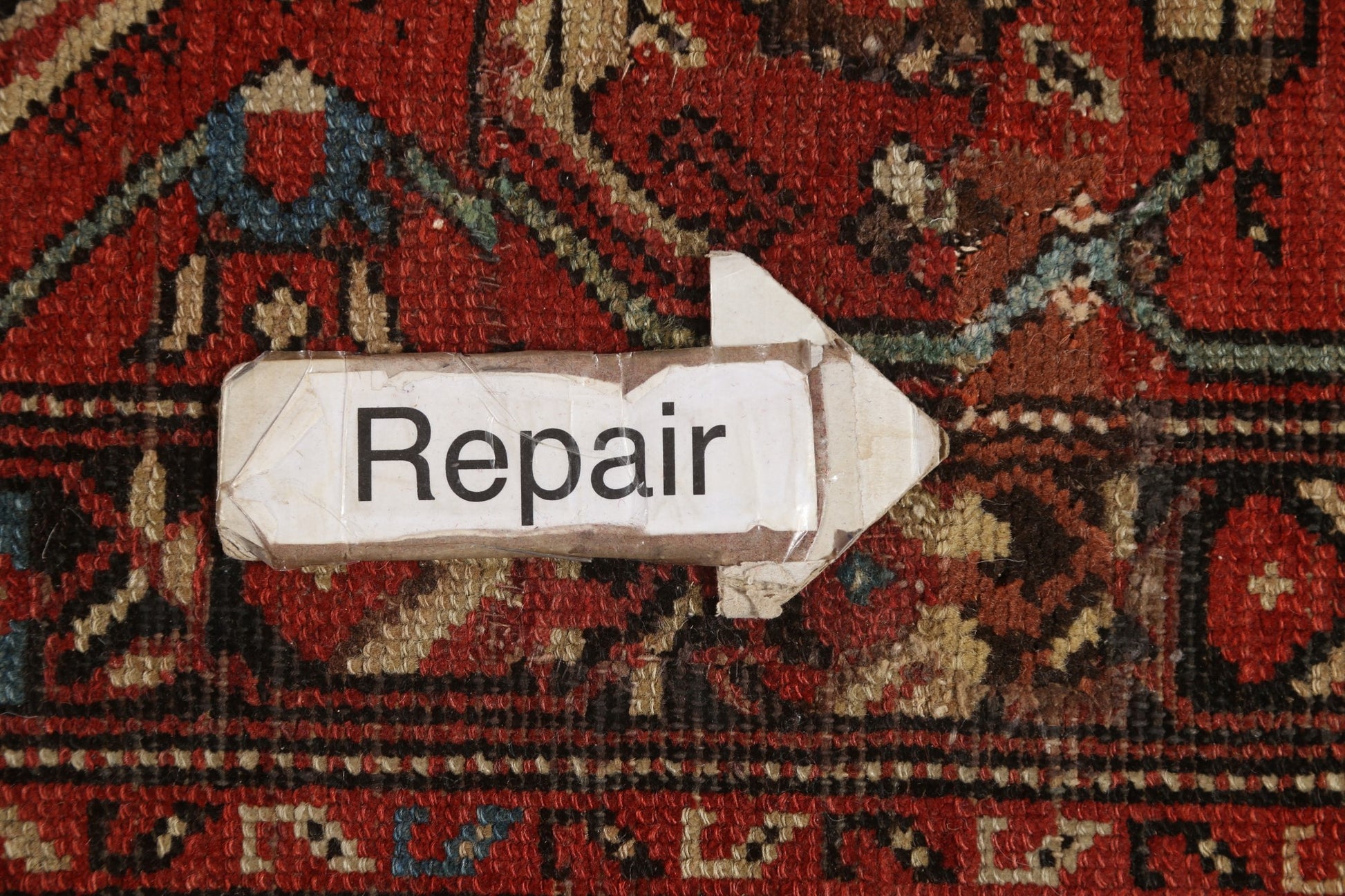 A Beautiful Genuine Persia ( Persia ) Heriz (Bakhshayesh) rug is Hand Knotted by skillful weavers in Persia ( Persia ) with 100% Wool Material. This rug is in Very Good (Evenly Low Pile-Repair) condition. dimensions are 13' 3'' X 6' 9'' in foot and 404 X 206 in centimeter. the primary color is Brown.