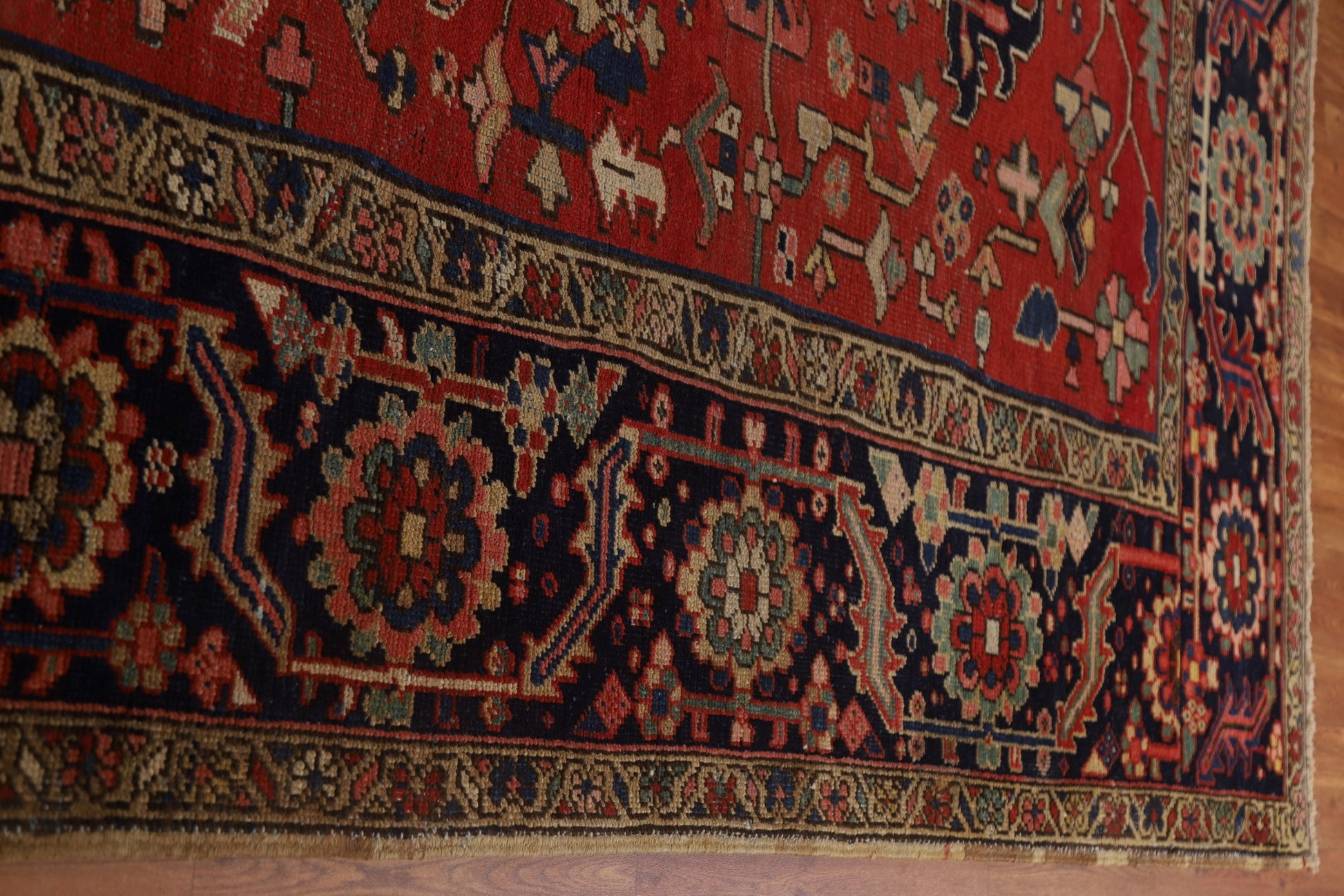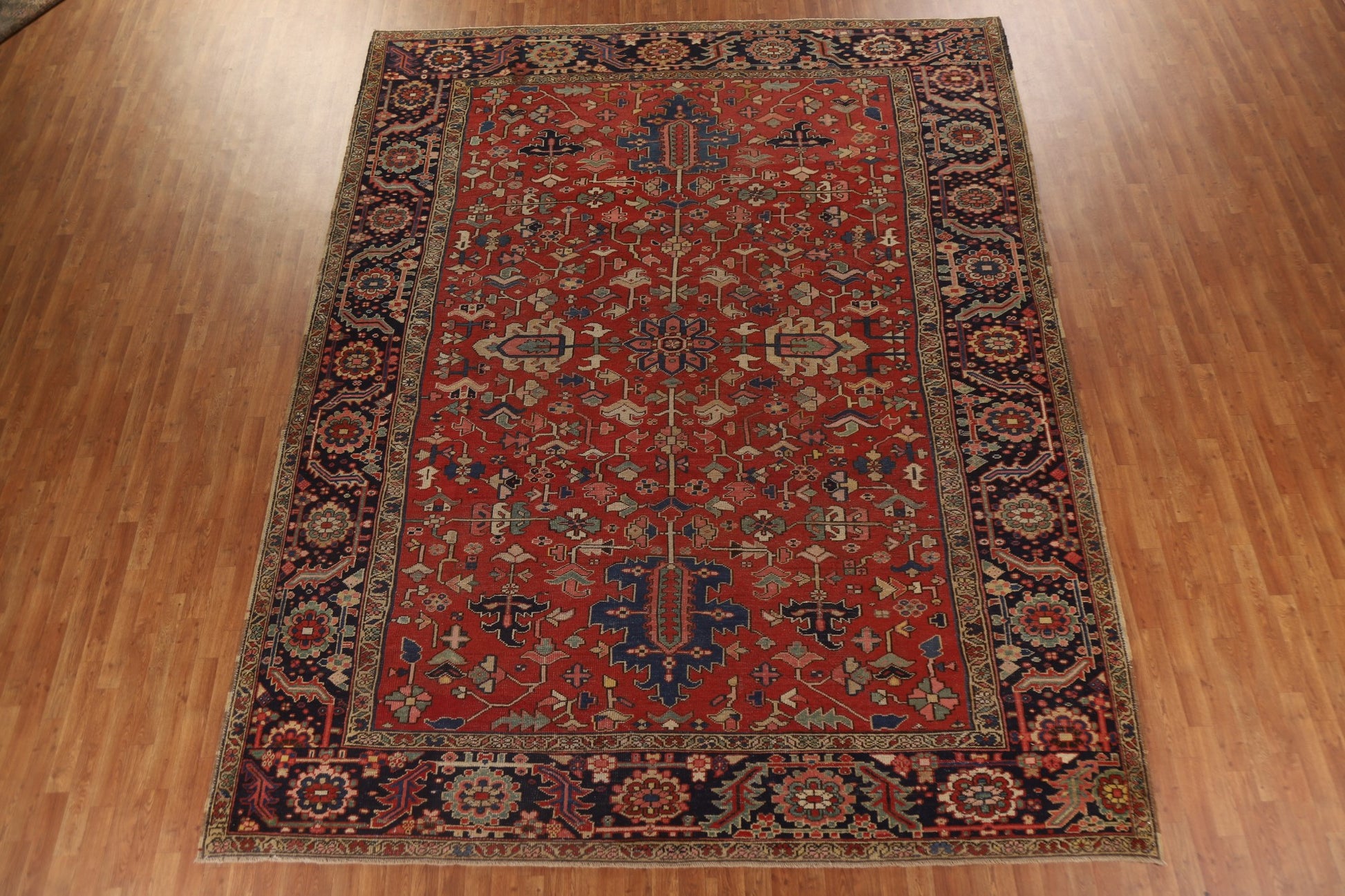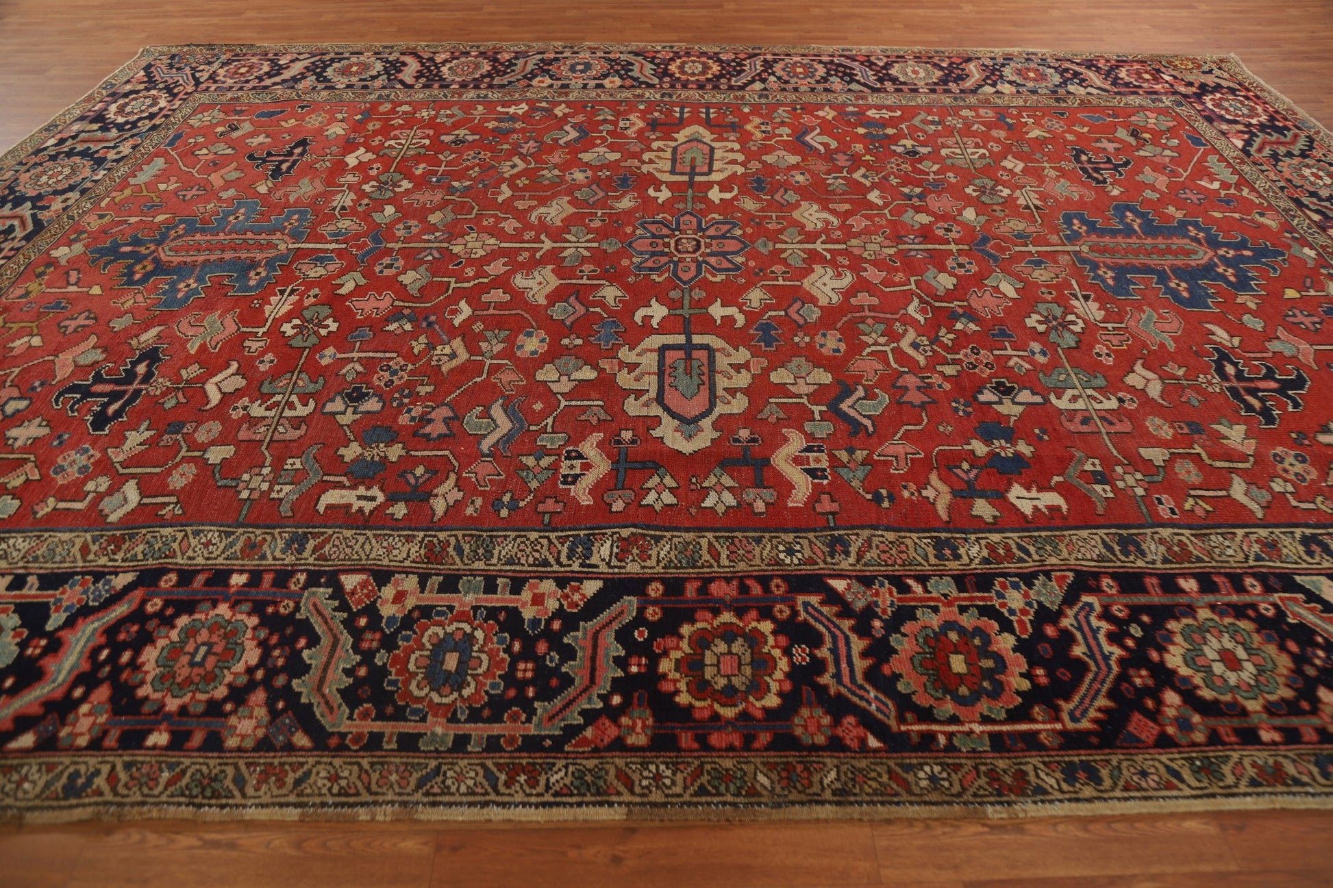 Pre-1900 Antique Vegetable Dye Heriz Serapi Persian Area Rug 10x13