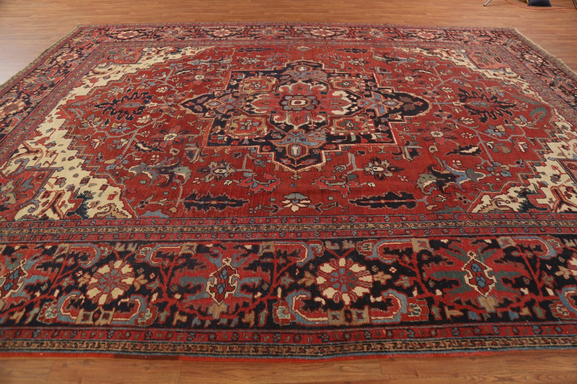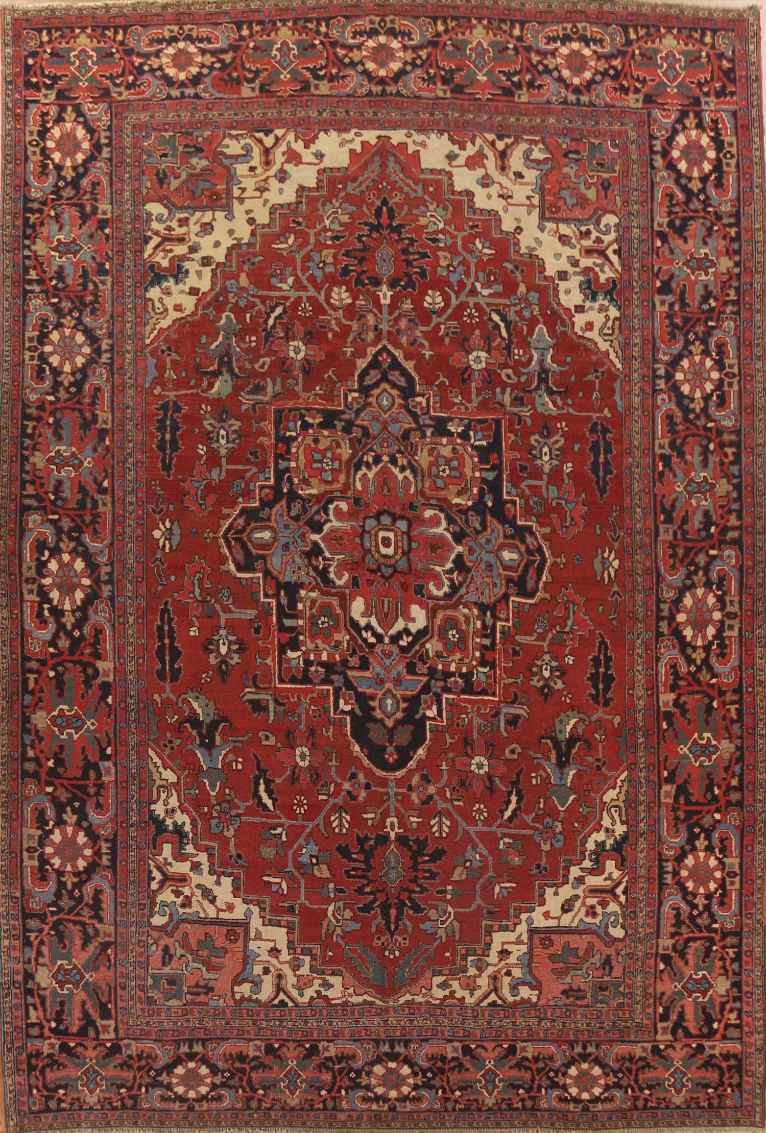 Pre-1900 Antique Vegetable Dye Heriz Serapi Persian Rug 11x13