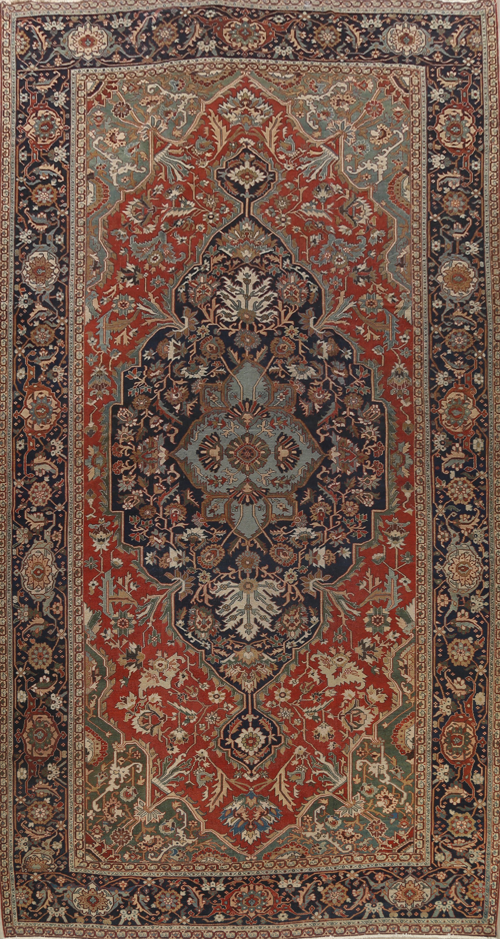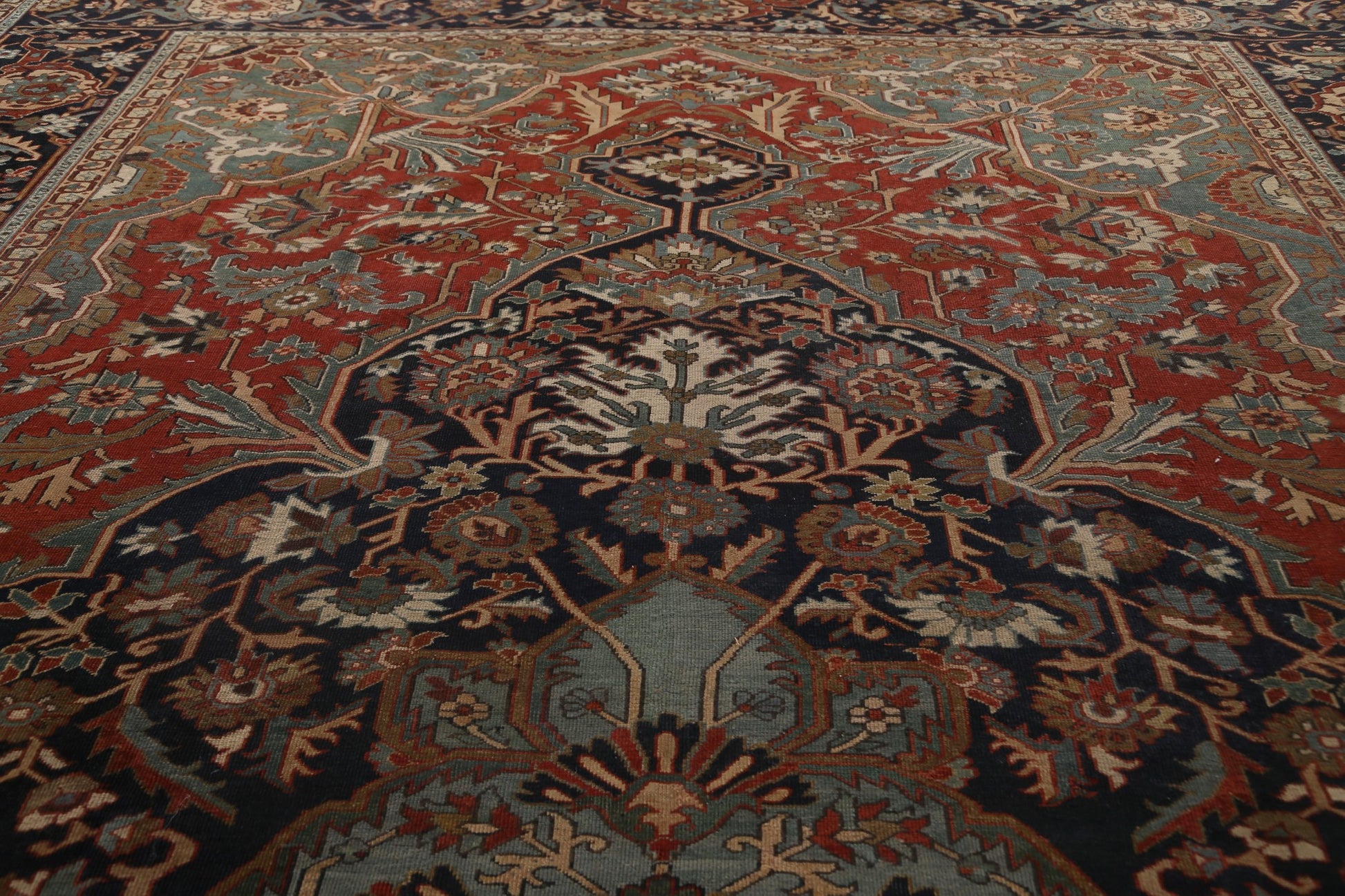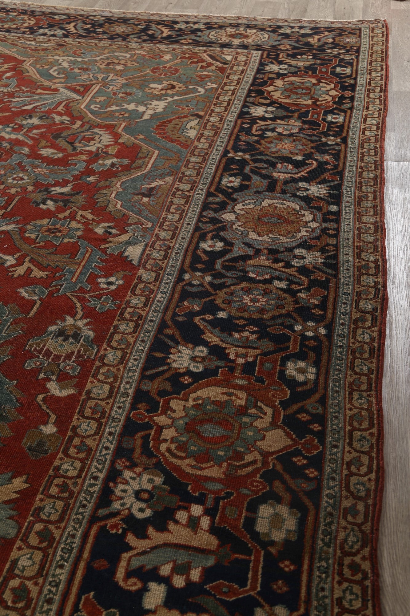 Pre-1900 Antique Vegetable Dye Heriz Serapi Persian Rug 12x19