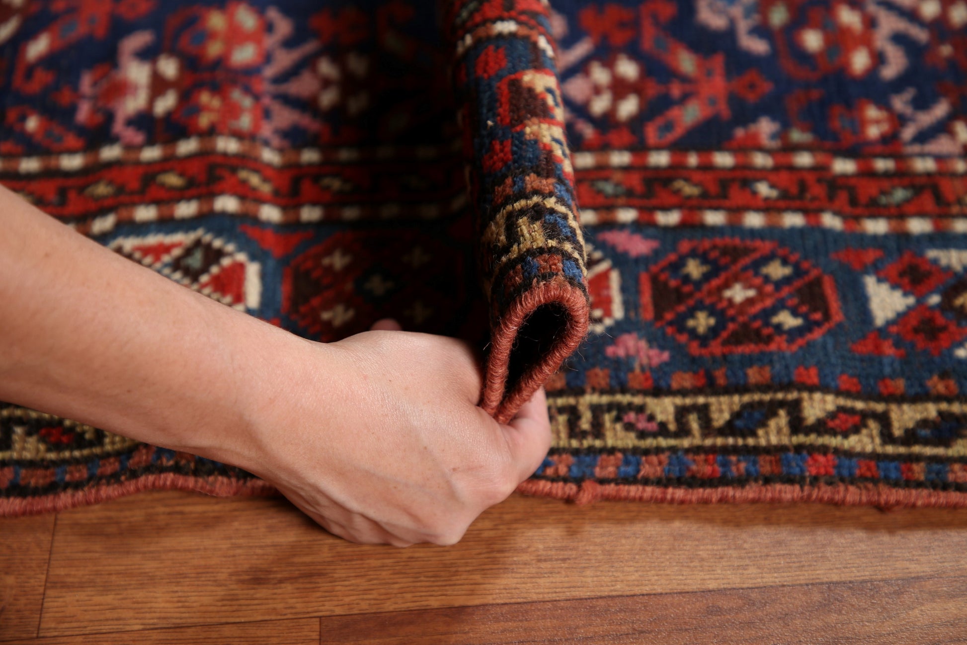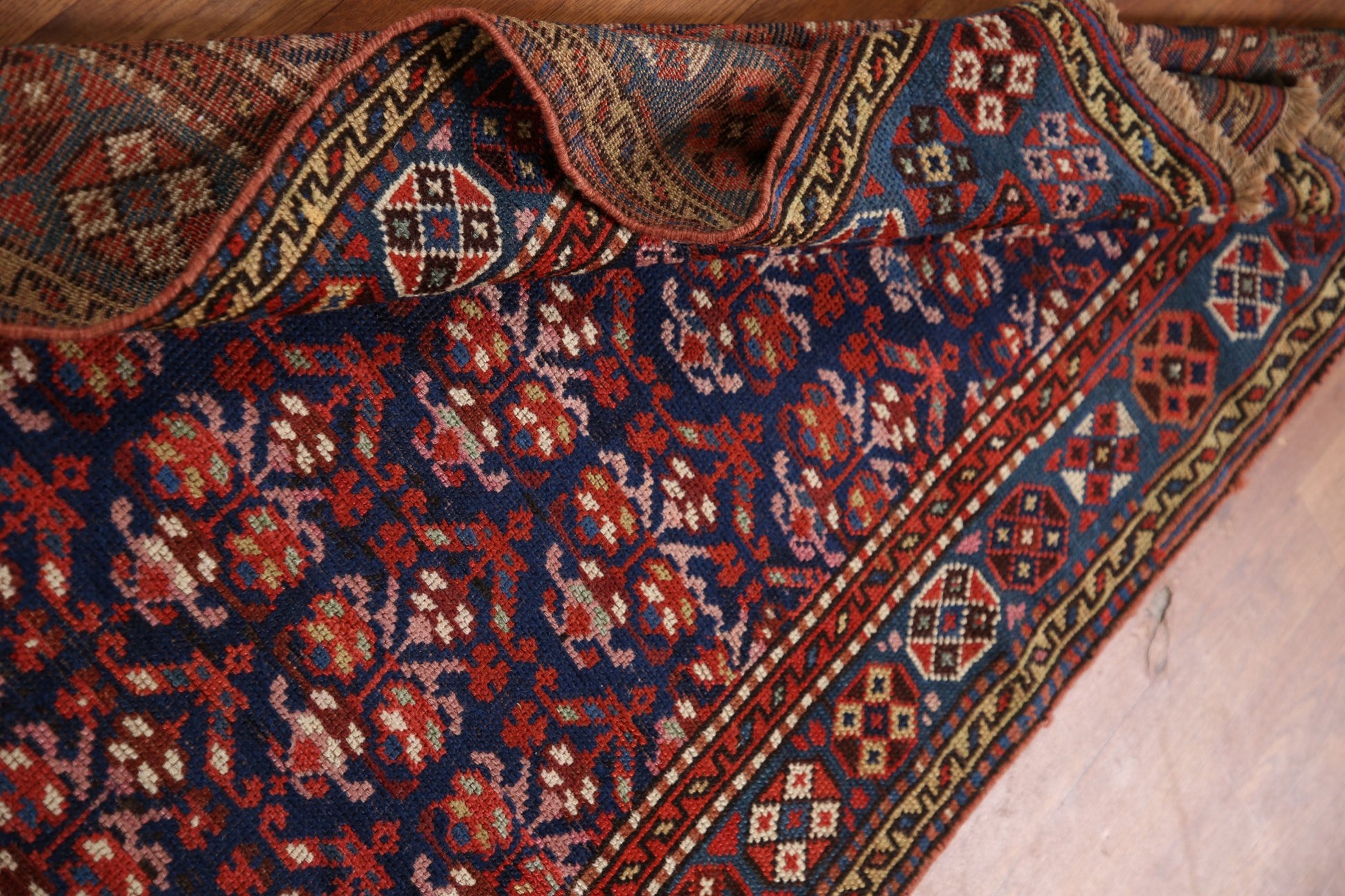 A Beautiful Genuine Russia Karabagh rug is Hand Knotted by skillful weavers in Russia with 100% Wool Material. This rug is in Very Good condition. dimensions are 13' 1'' X 2' 11'' in foot and 399 X 89 in centimeter. the primary color is Navy Blue & Blues.