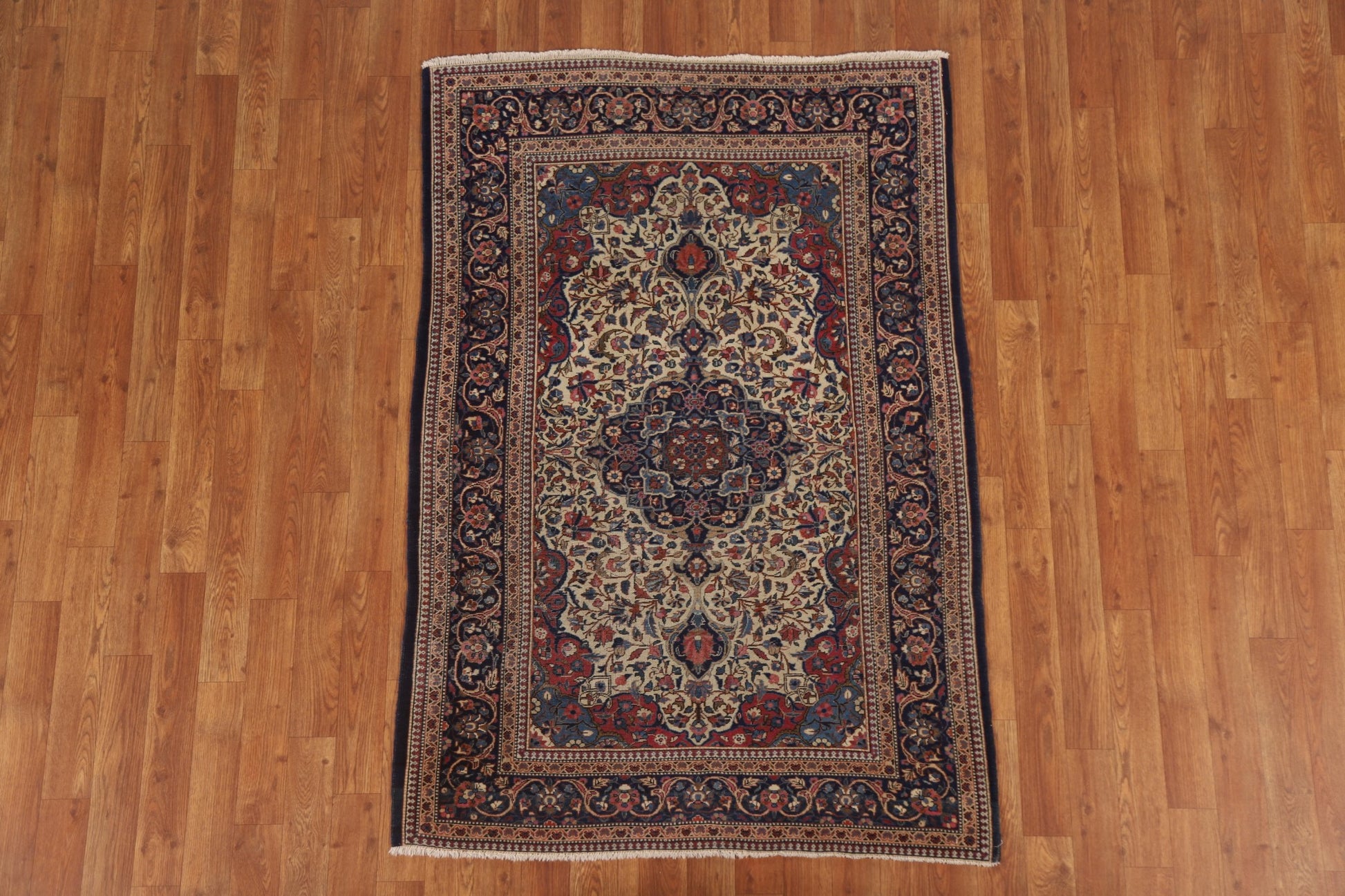 Pre-1900 Antique Vegetable Dye Kashan Mohtasham Persian Rug 3x5