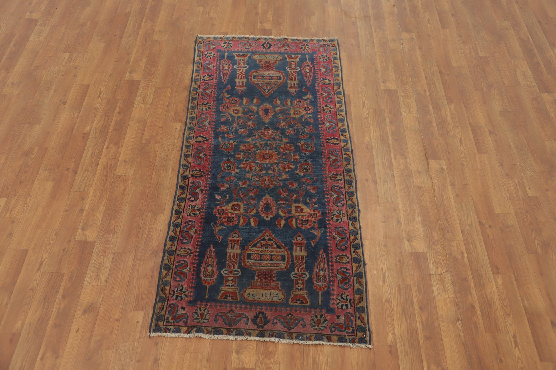 Pre-1900 Antique Vegetable Dye Kashan Persian Rug 3x6