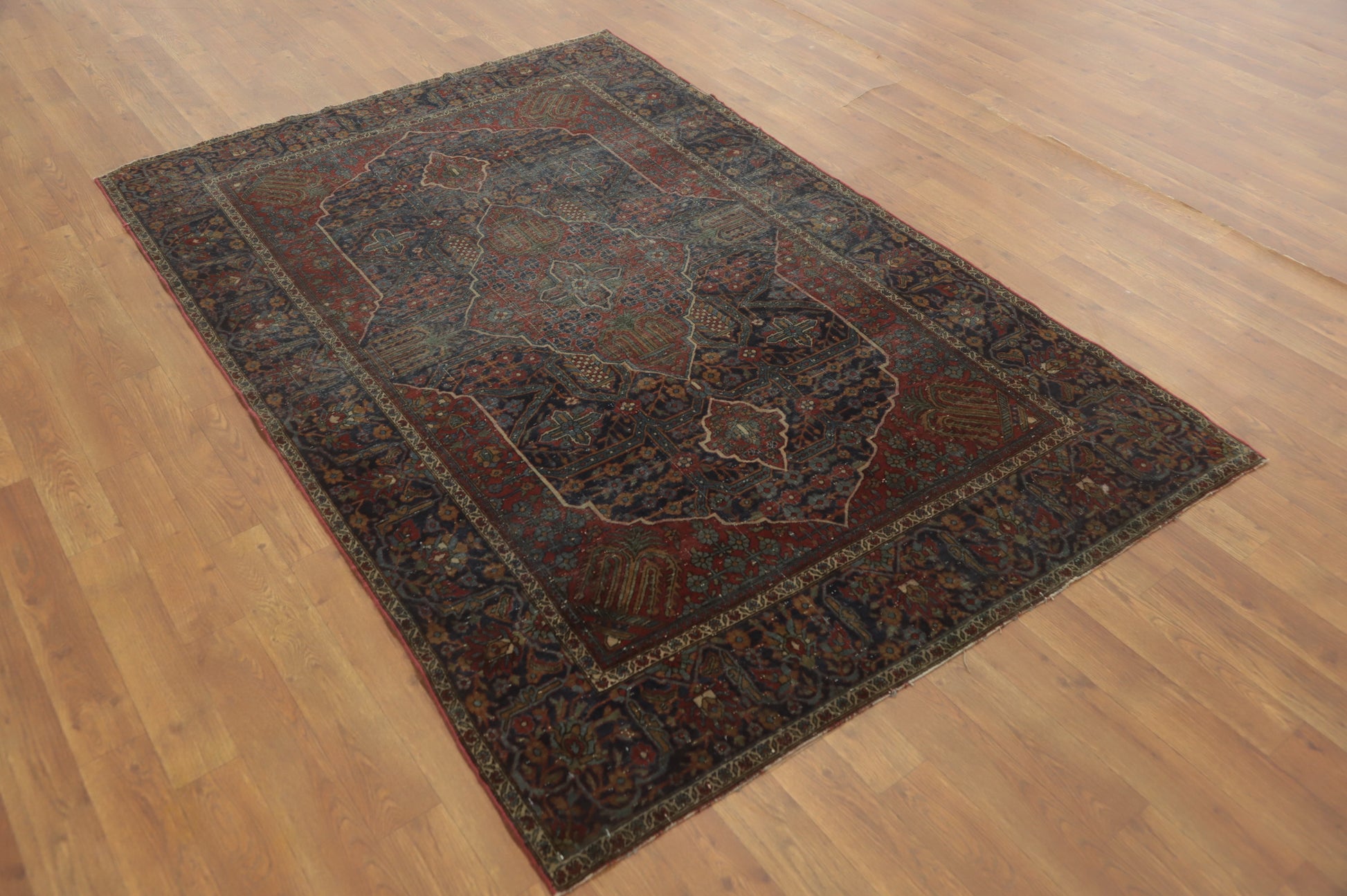 Pre-1900 Antique Vegetable Dye Kashan Persian Rug 4x6