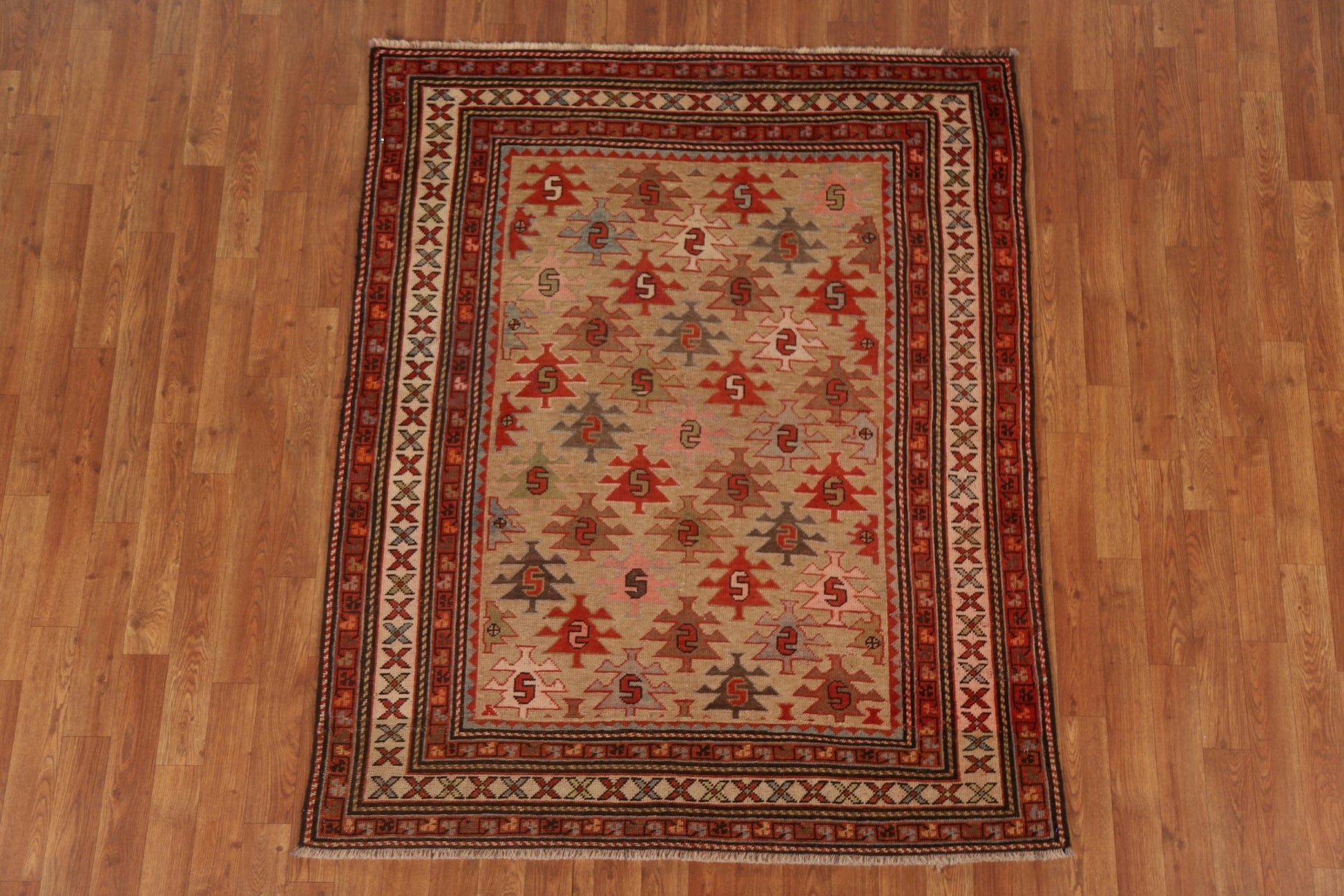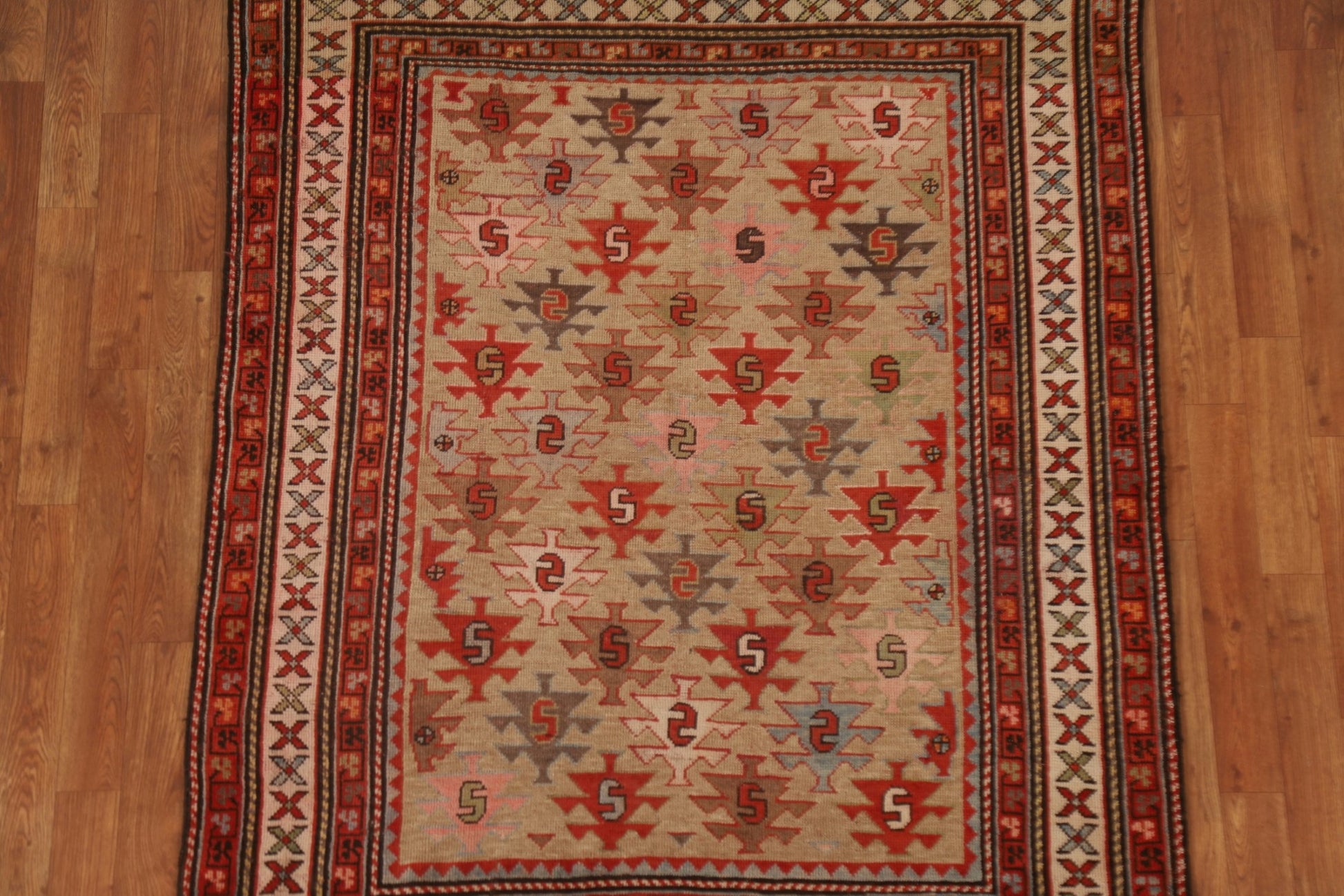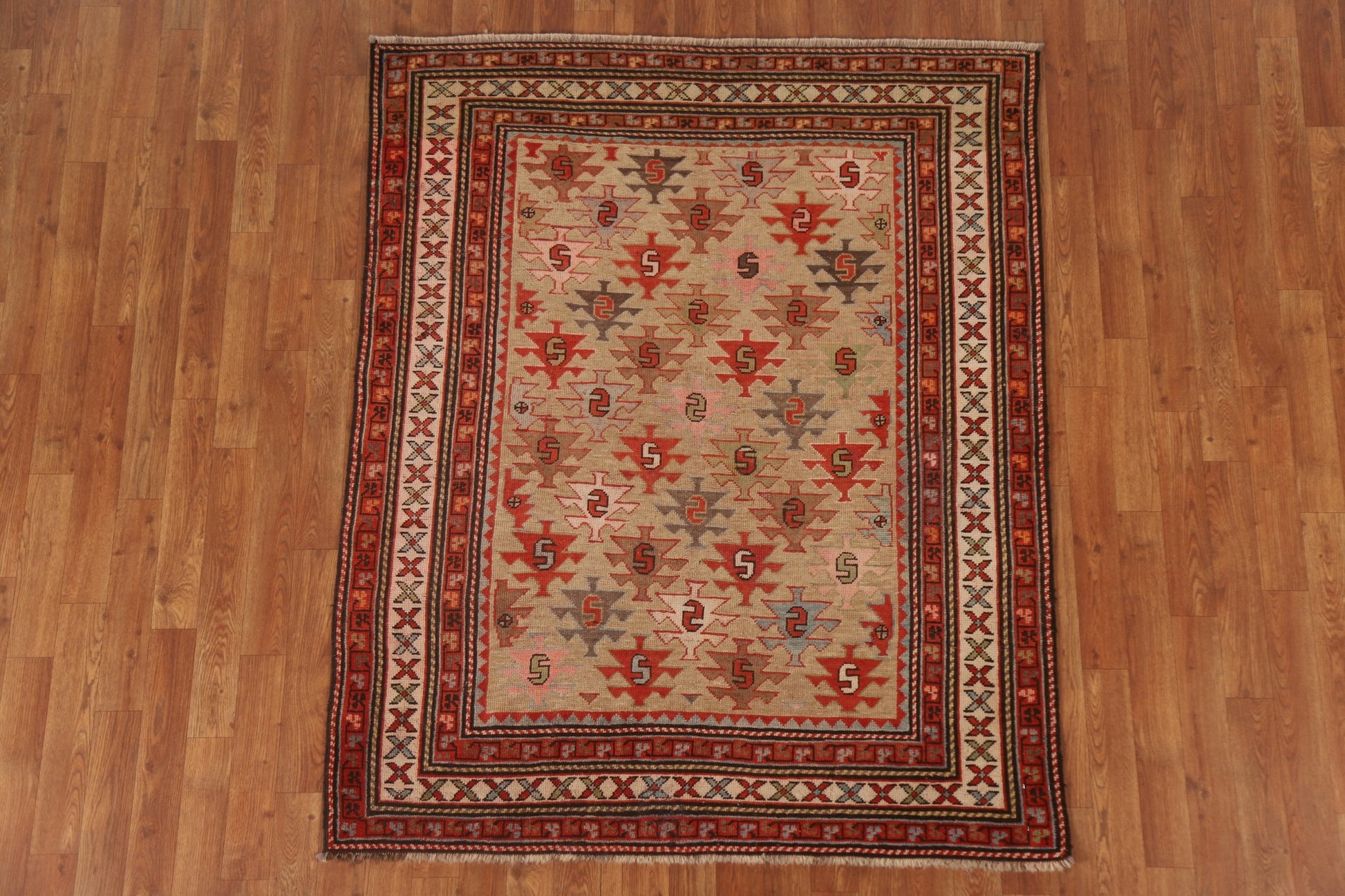 Pre-1900 Antique Vegetable Dye Kazak Oriental Area Rug 4x5