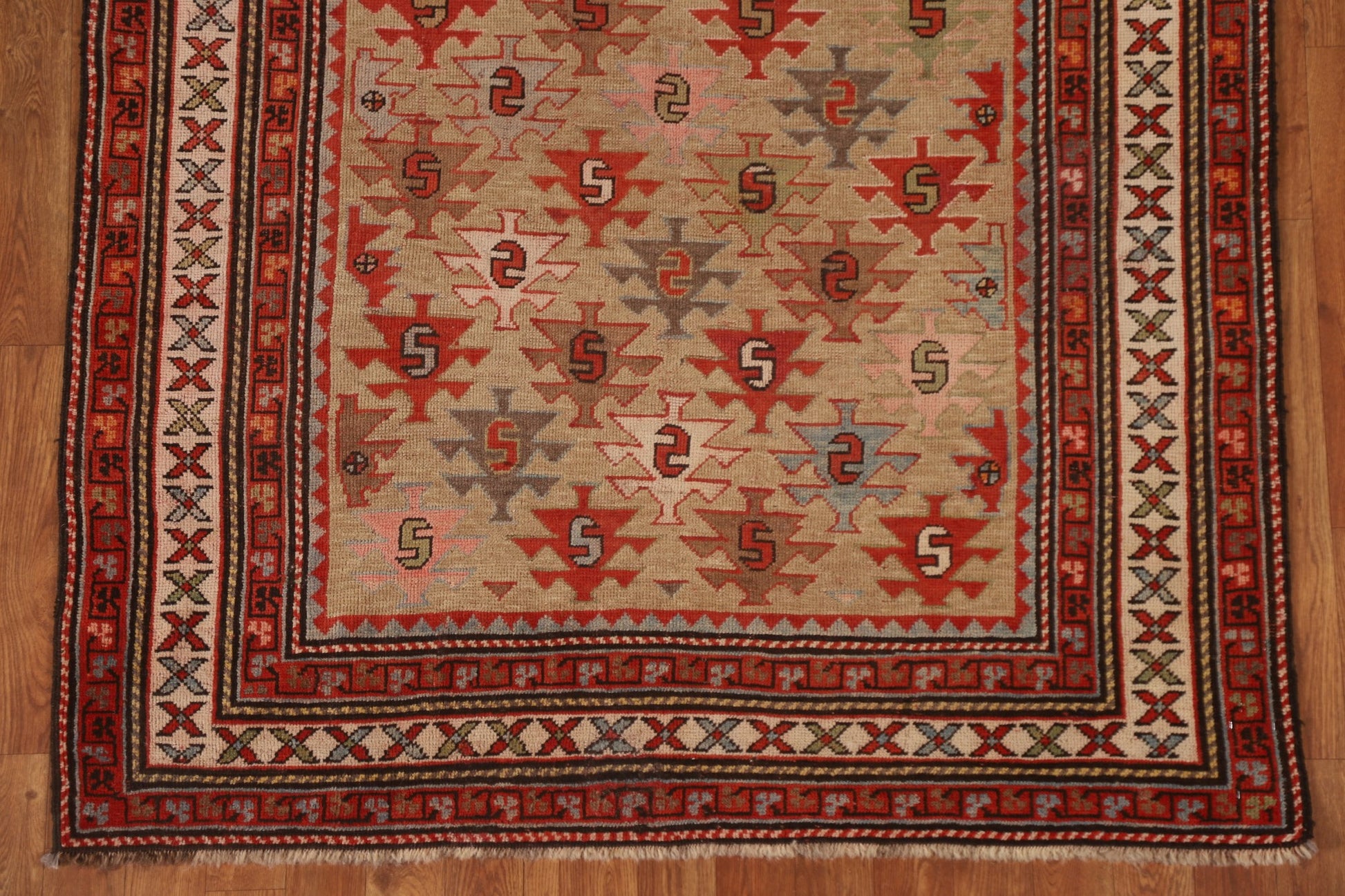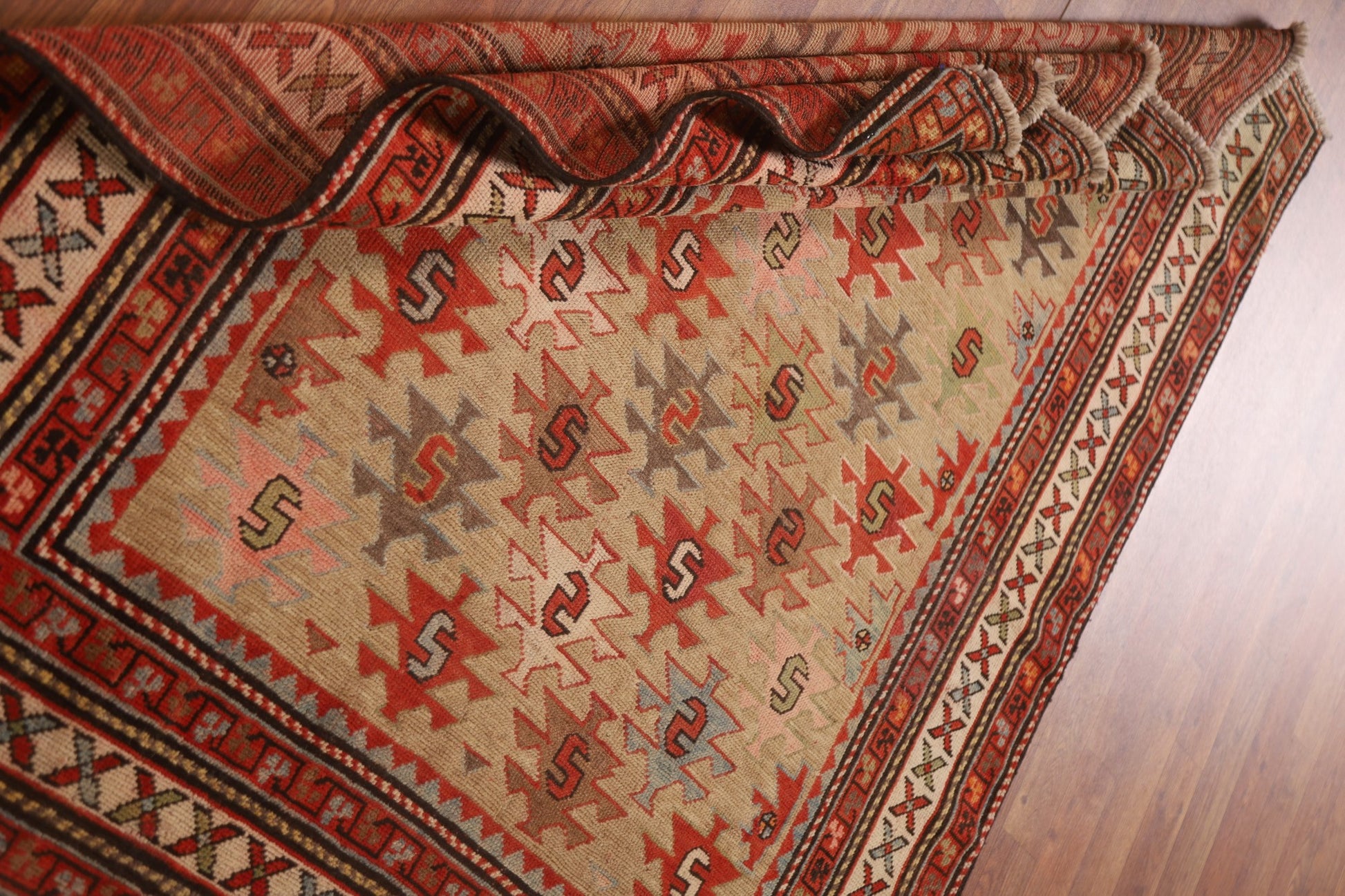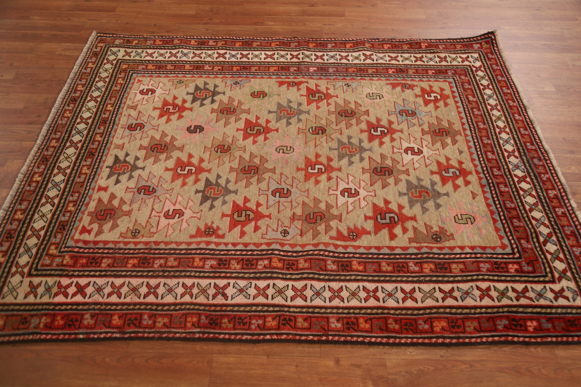 Pre-1900 Antique Vegetable Dye Kazak Oriental Area Rug 4x5