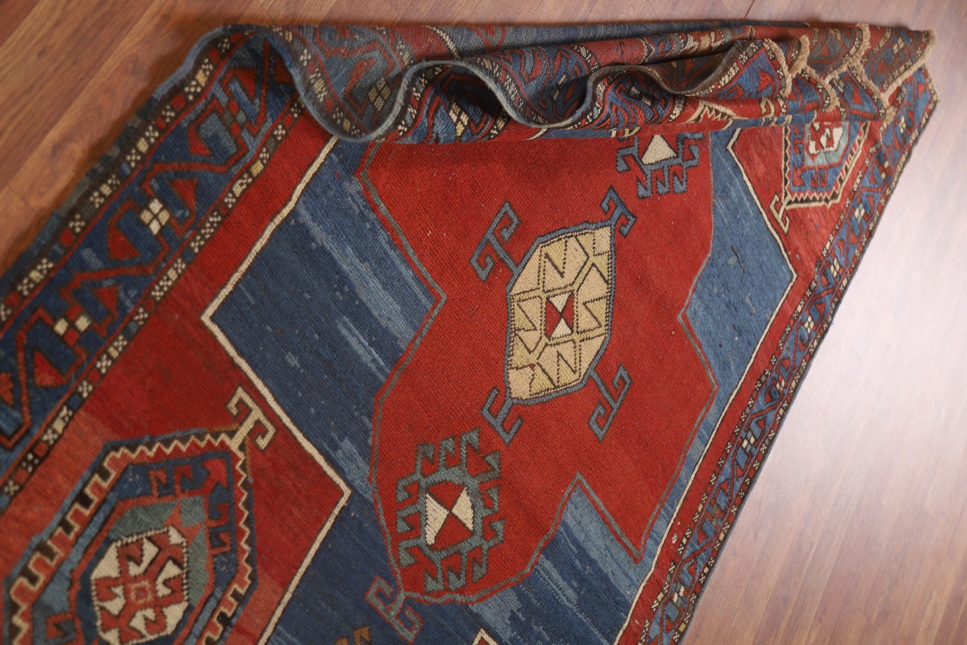 A Beautiful Genuine Russia Kazak (100% Vegetable Dye) rug is Hand Knotted by skillful weavers in Russia with 100% Wool Material. This rug is in Very Good (Repairs) condition. dimensions are 6' 10'' X 4' 3'' in foot and 208 X 130 in centimeter. the primary color is Navy Blue & Blues.