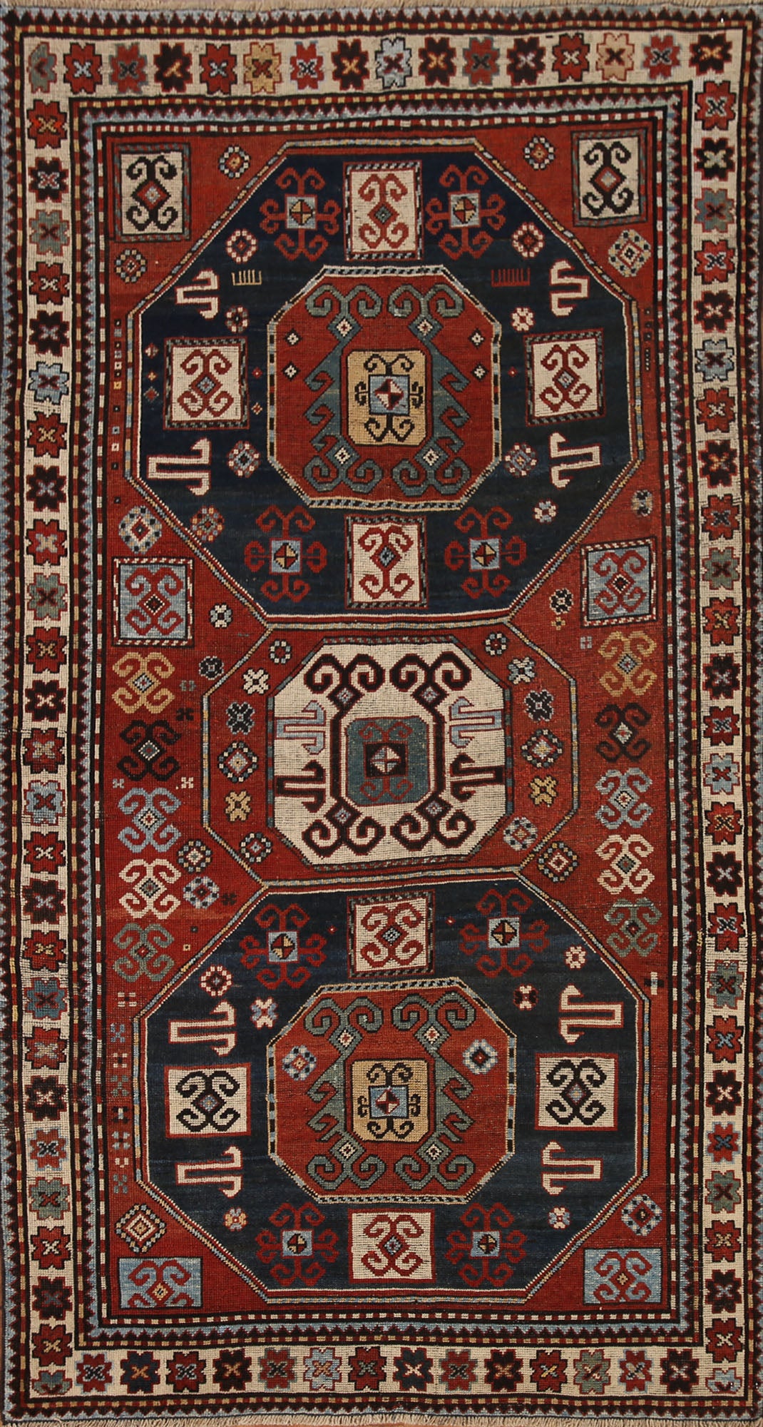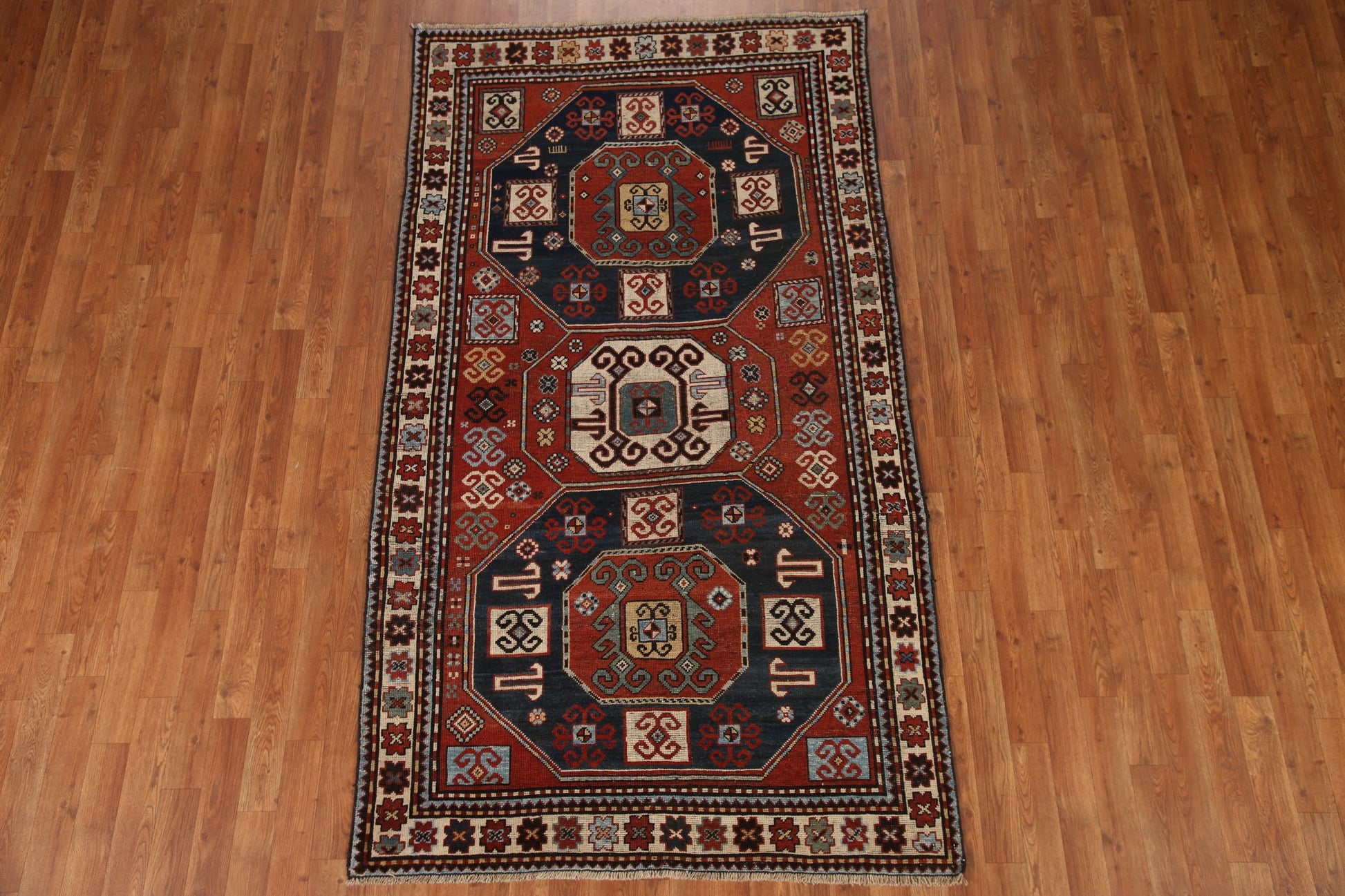 Pre-1900 Antique Vegetable Dye Kazak Oriental Area Rug 4x8