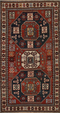 A Beautiful Genuine Russia Kazak rug is Hand Knotted by skillful weavers in Russia with 100% Wool Material. This rug is in Very Good (Evenly Low Pile) condition. dimensions are 7' 9'' X 4' 3'' in foot and 236 X 130 in centimeter. the primary color is Red.