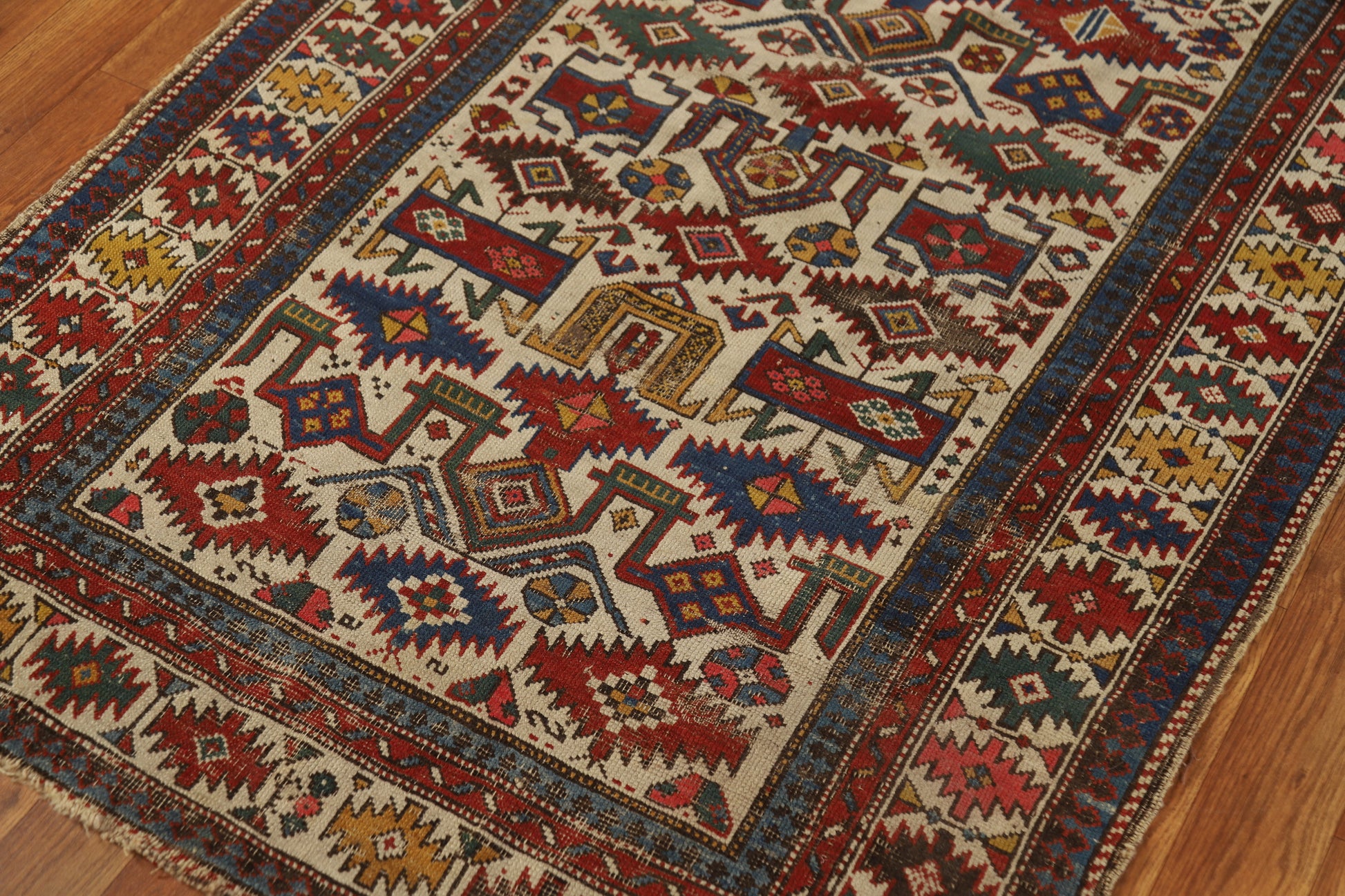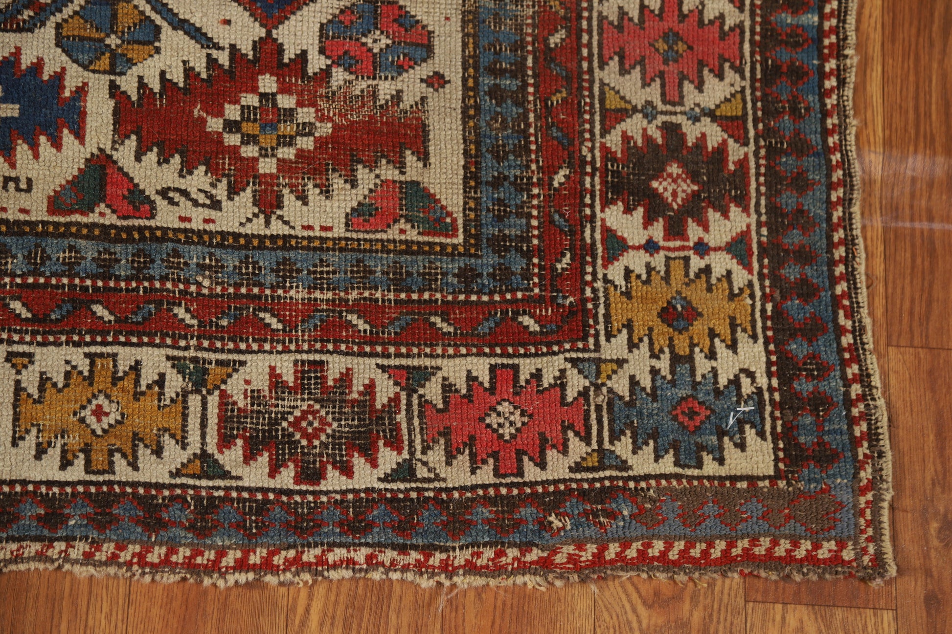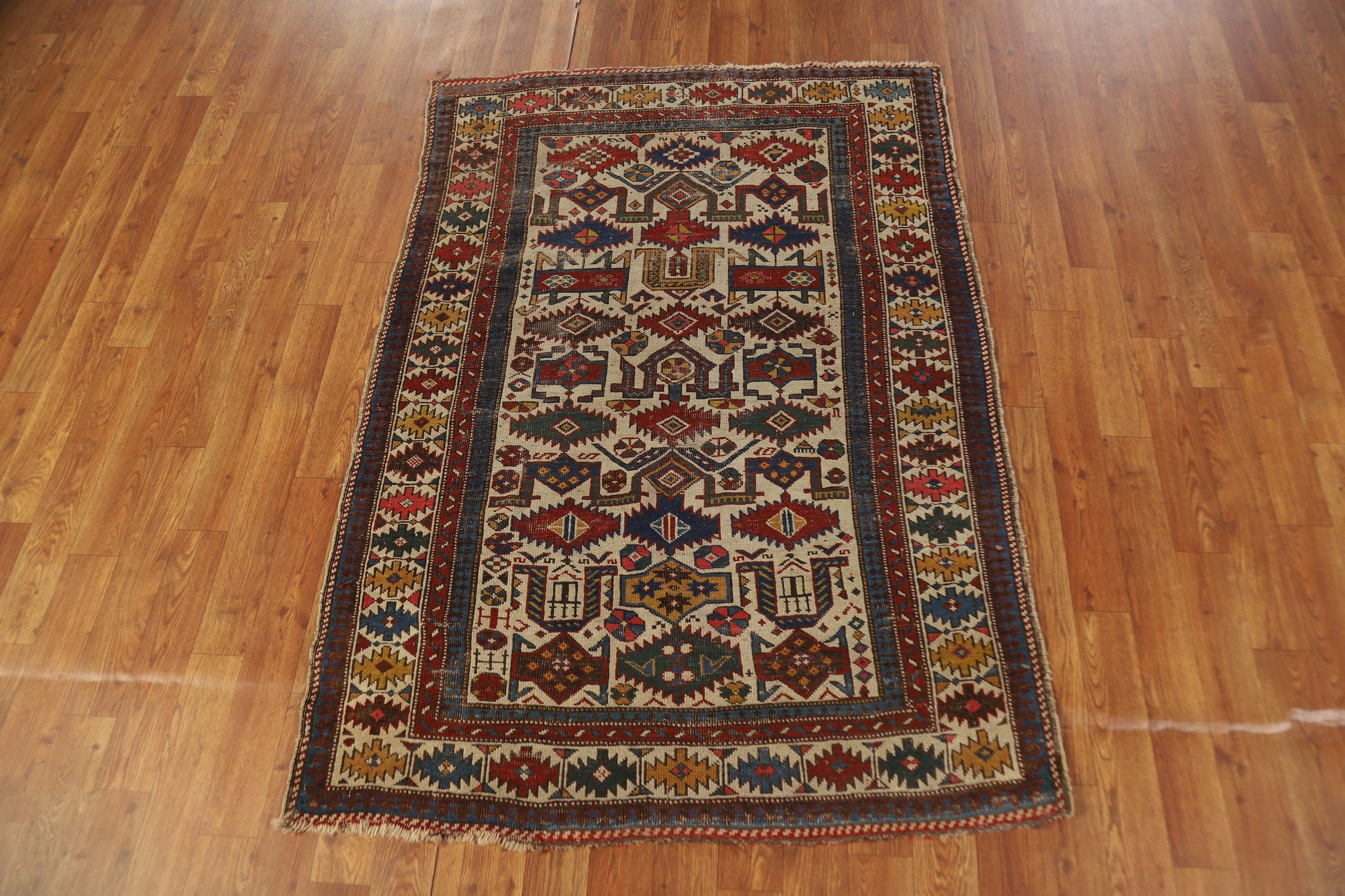 Pre-1900 Antique Vegetable Dye Kazak Oriental Rug 3x5