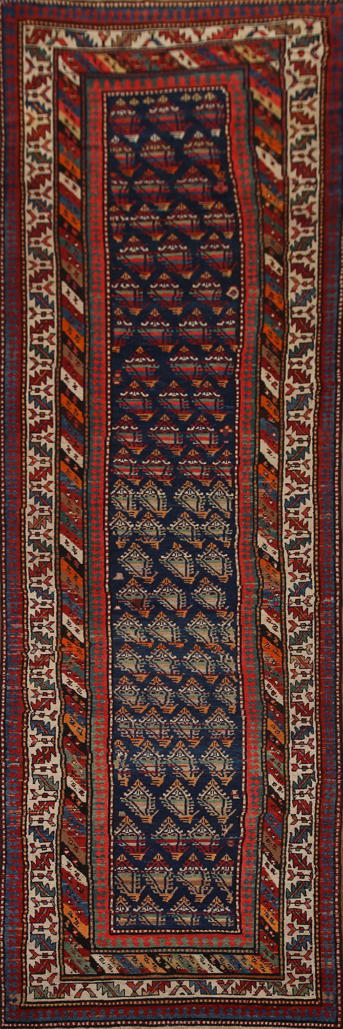 Pre-1900 Antique Vegetable Dye Kazak Oriental Rug 4x15