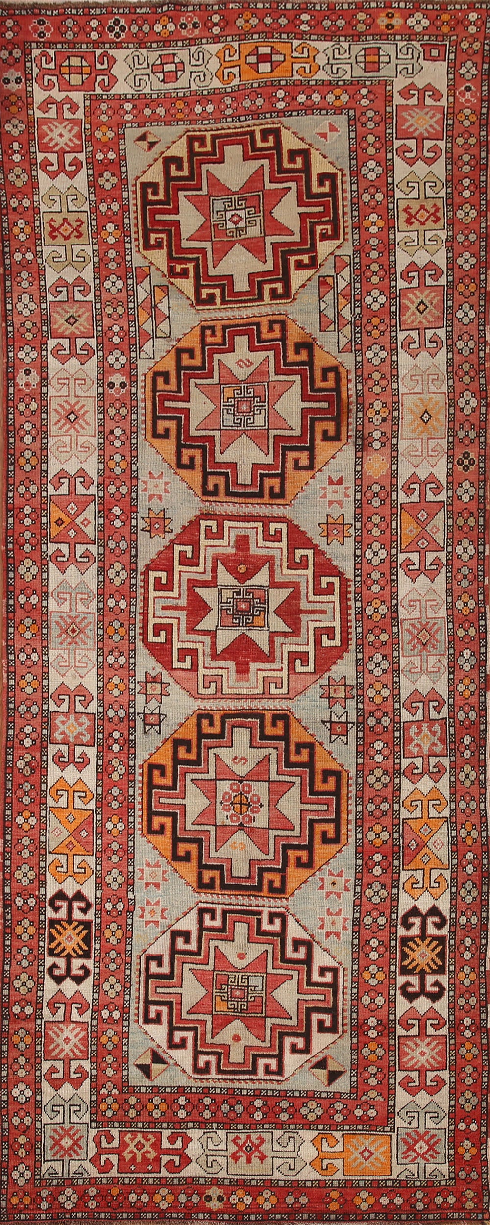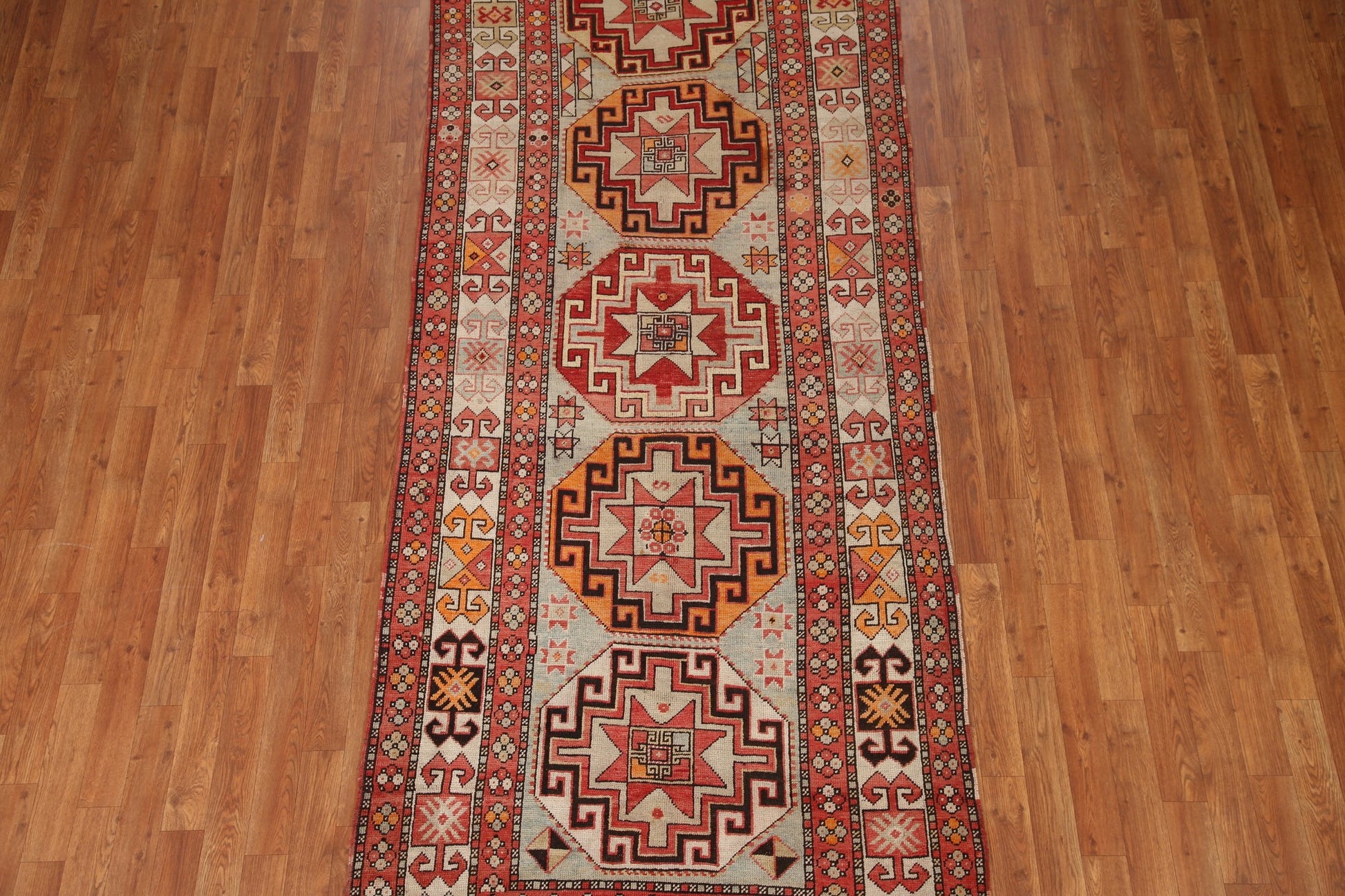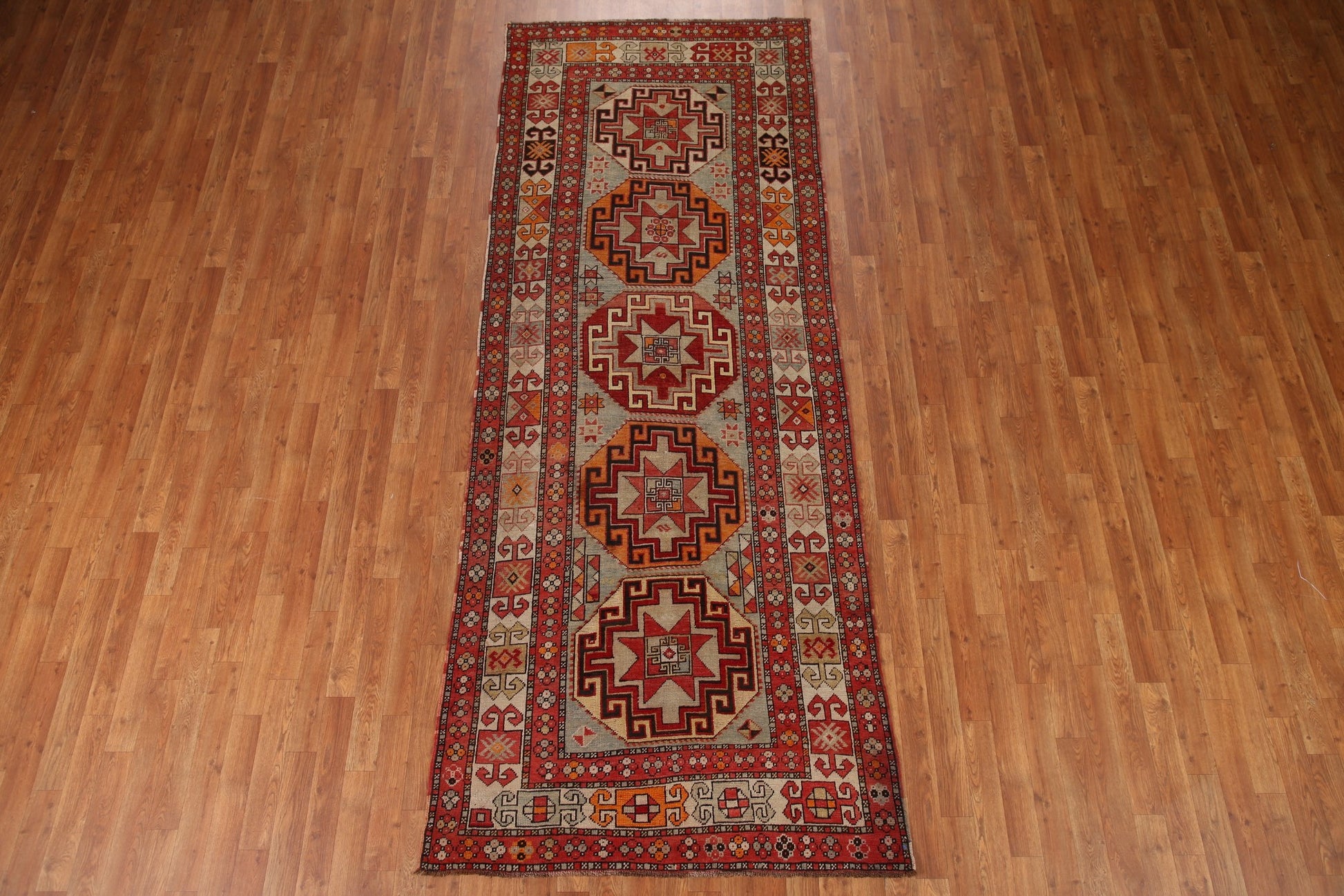 Pre-1900 Antique Vegetable Dye Kazak Oriental Runner Rug 4x10