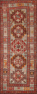 A Beautiful Genuine Russia Kazak (100% Vegetable Dye) rug is Hand Knotted by skillful weavers in Russia with 100% Wool Material. This rug is in Very Good (Evenly Low Pile) condition. dimensions are 10' 4'' X 3' 10'' in foot and 315 X 117 in centimeter. the primary color is Multi-Colored.