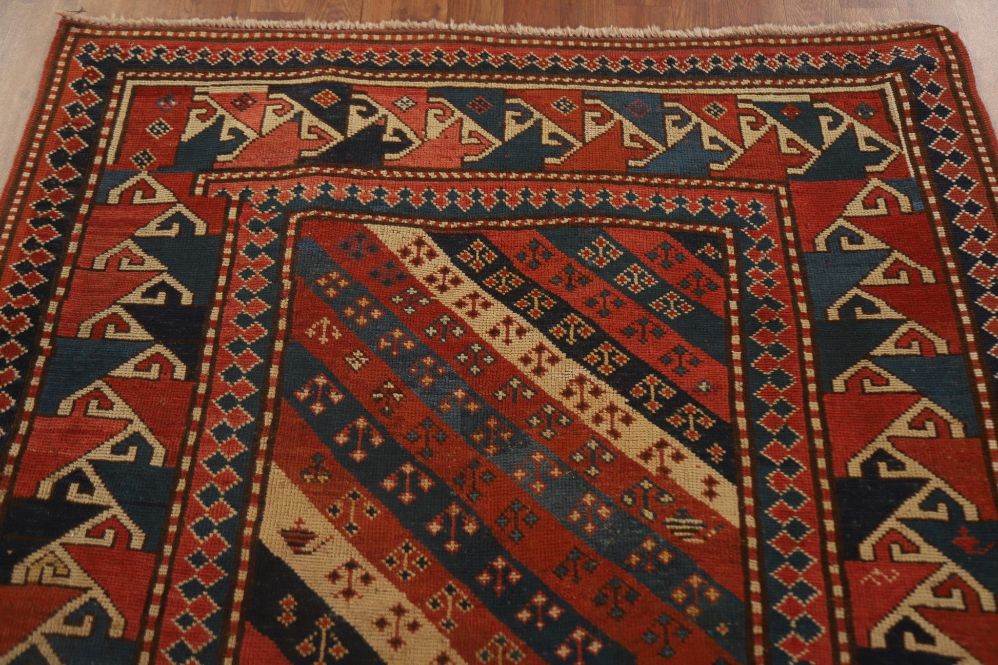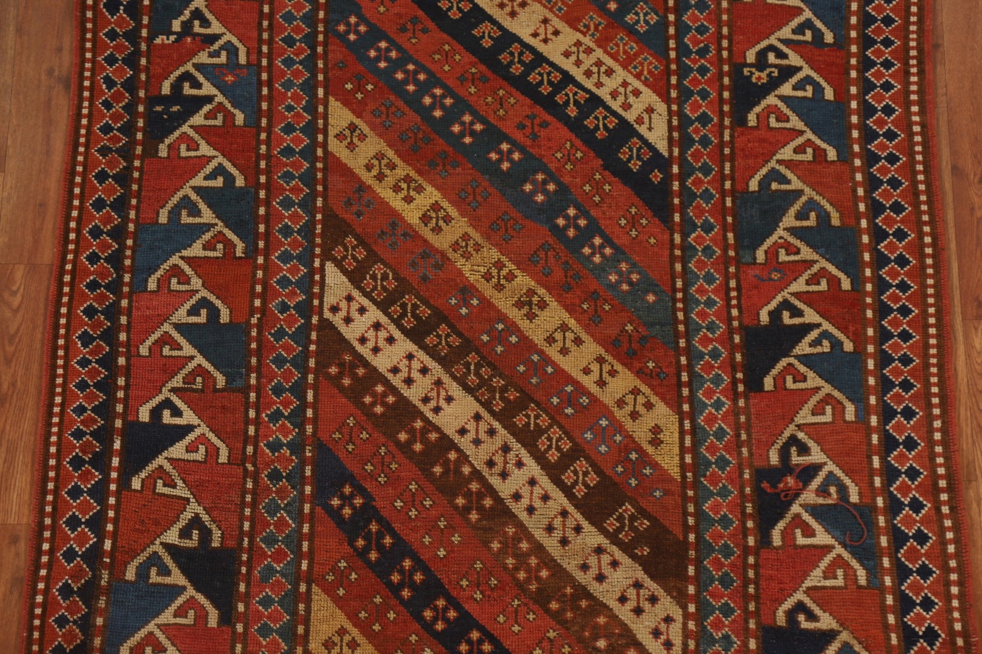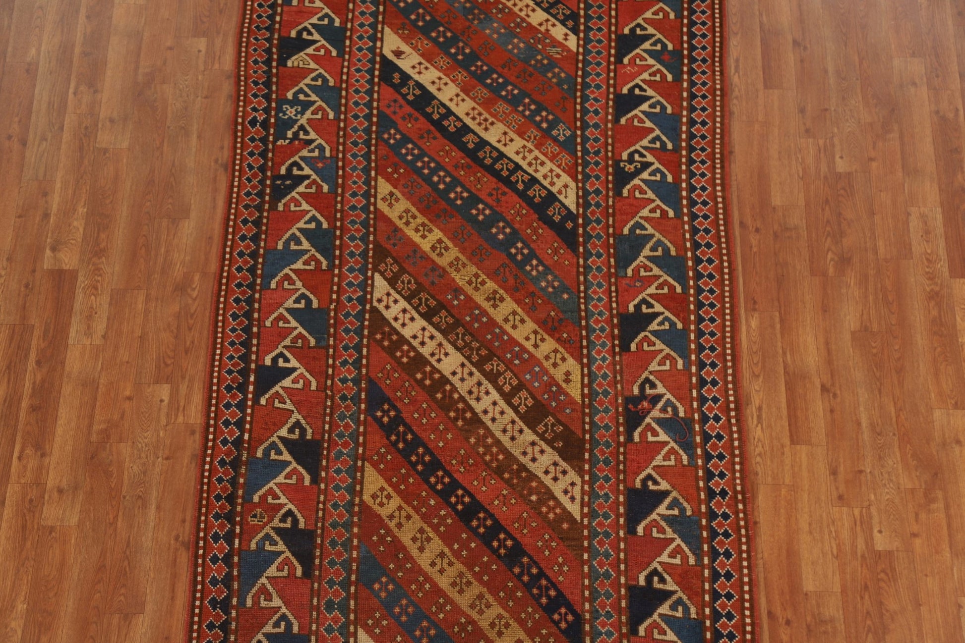 Pre-1900 Antique Vegetable Dye Kazak Oriental Runner Rug 4x10