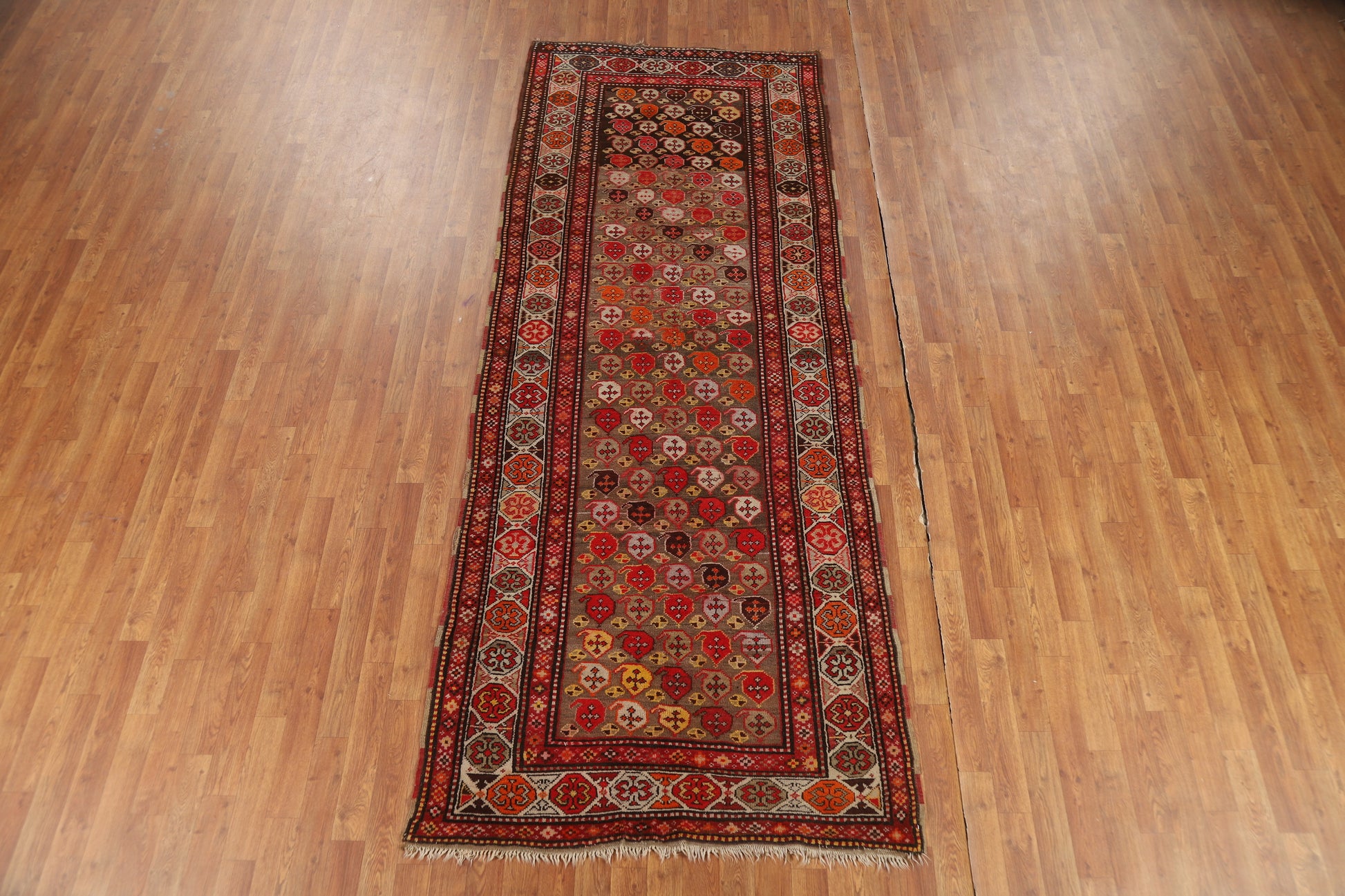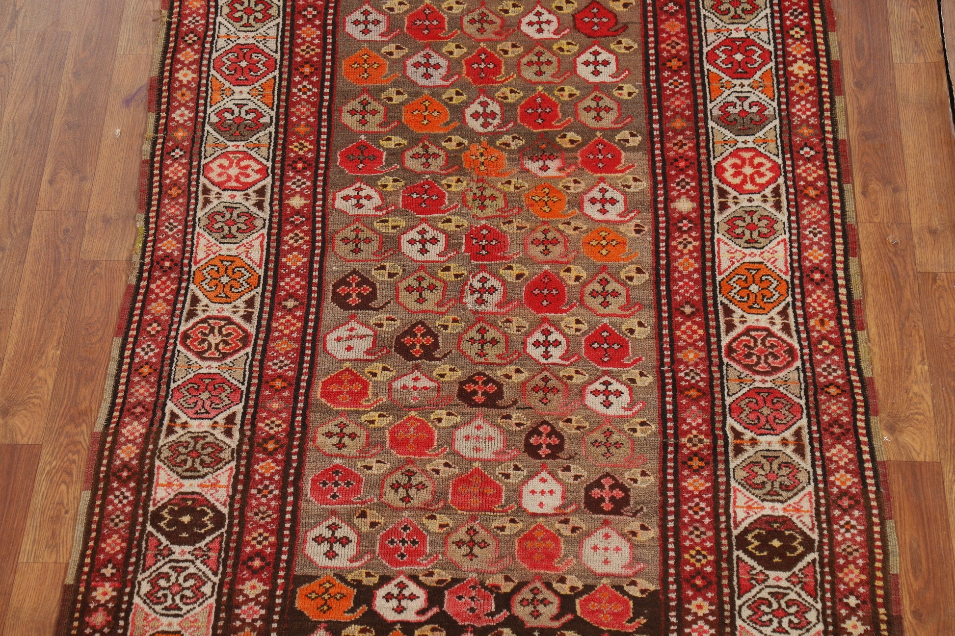 Pre-1900 Antique Vegetable Dye Kazak Oriental Runner Rug 4x10