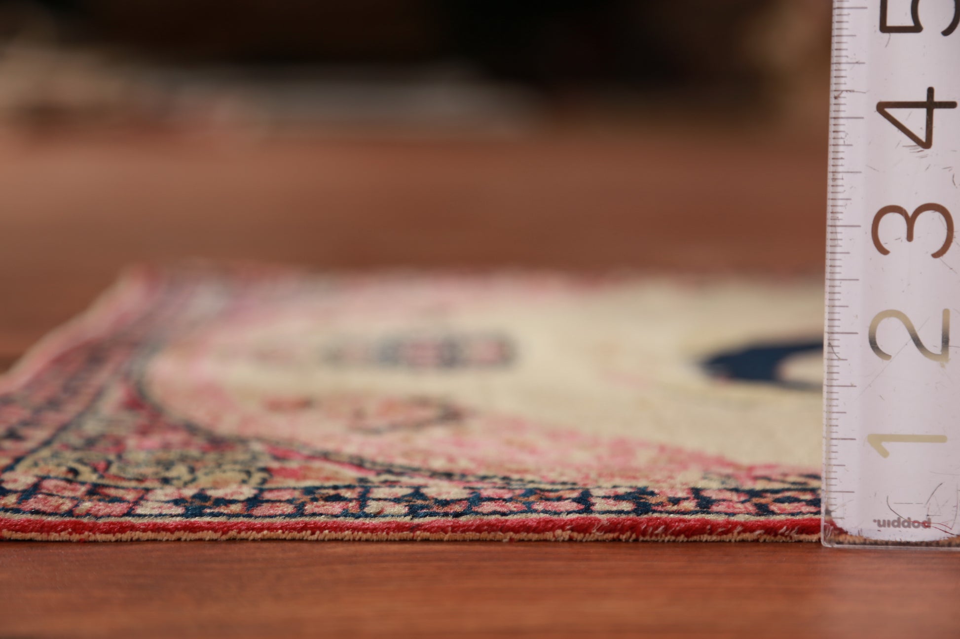 A Beautiful Genuine Persia ( Persia ) Kerman (Ravar) rug is Hand Knotted by skillful weavers in Persia ( Persia ) with 100% Wool Material. This rug is in Very Good ( Low Pile ) condition. dimensions are 2' 6'' X 1' 11'' in foot and 76 X 58 in centimeter. the primary color is Beige & Ivories.